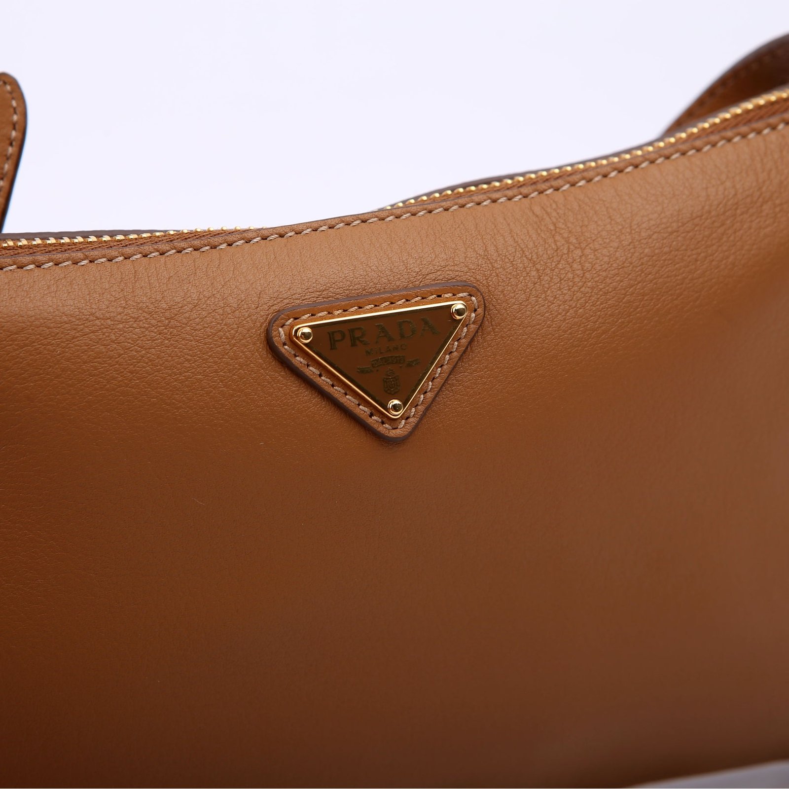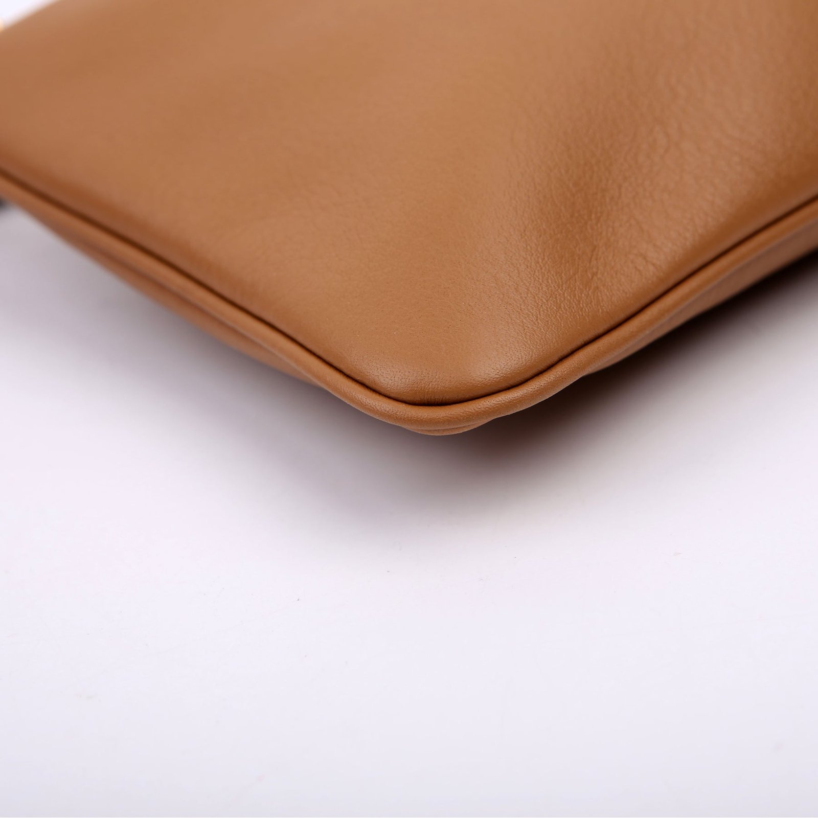 This pre-owned Prada Triangle Logo Pouch is guaranteed 100% authentic. The exterior is in the classic Prada Calfskin leather.