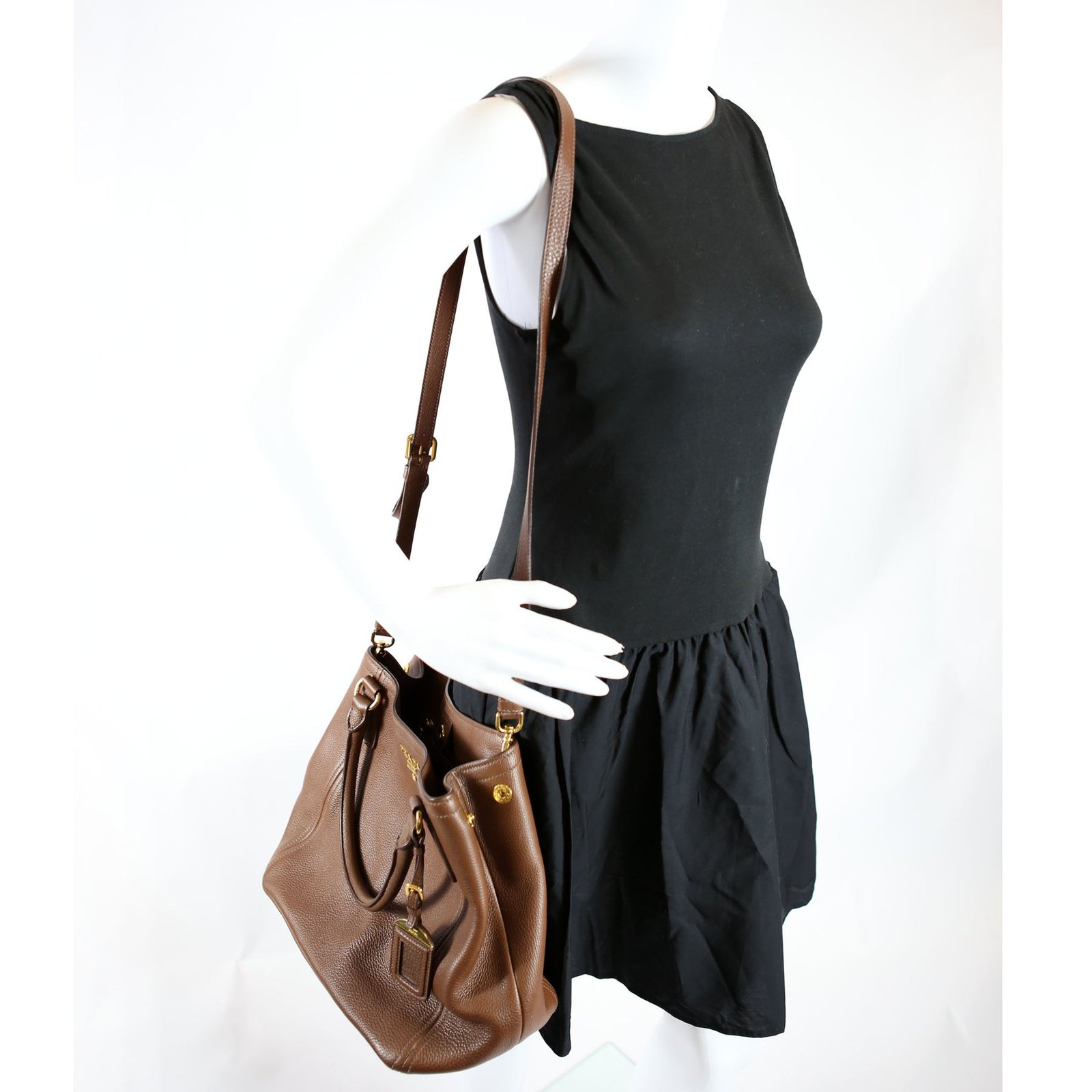 This pre-owned Prada Vitello Phenix Shoulder Bag is guaranteed 100% authentic. The exterior is in the classic Prada Phenix Pebbled Calfskin Leather.