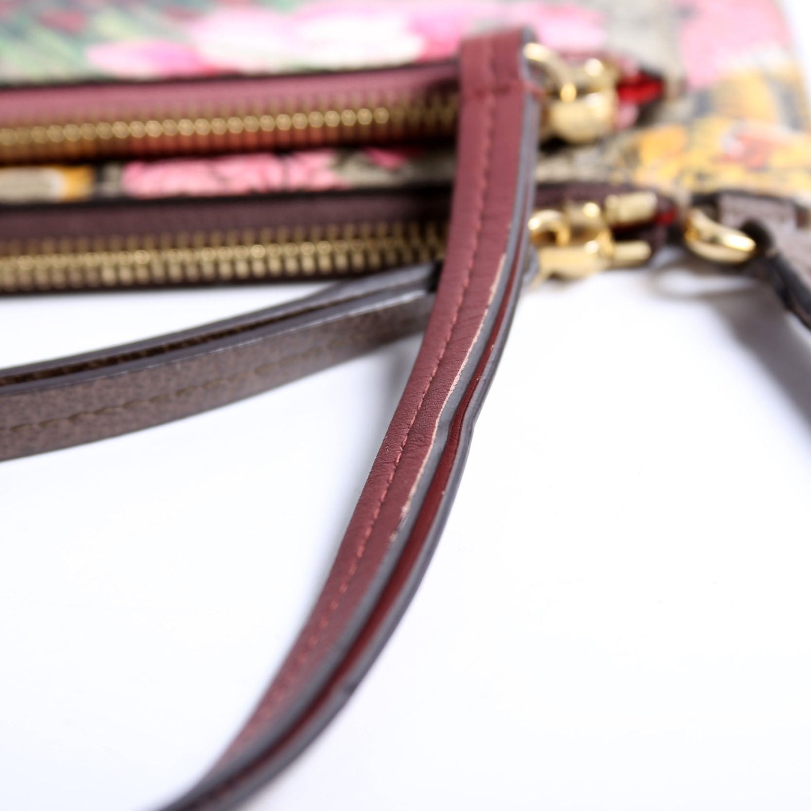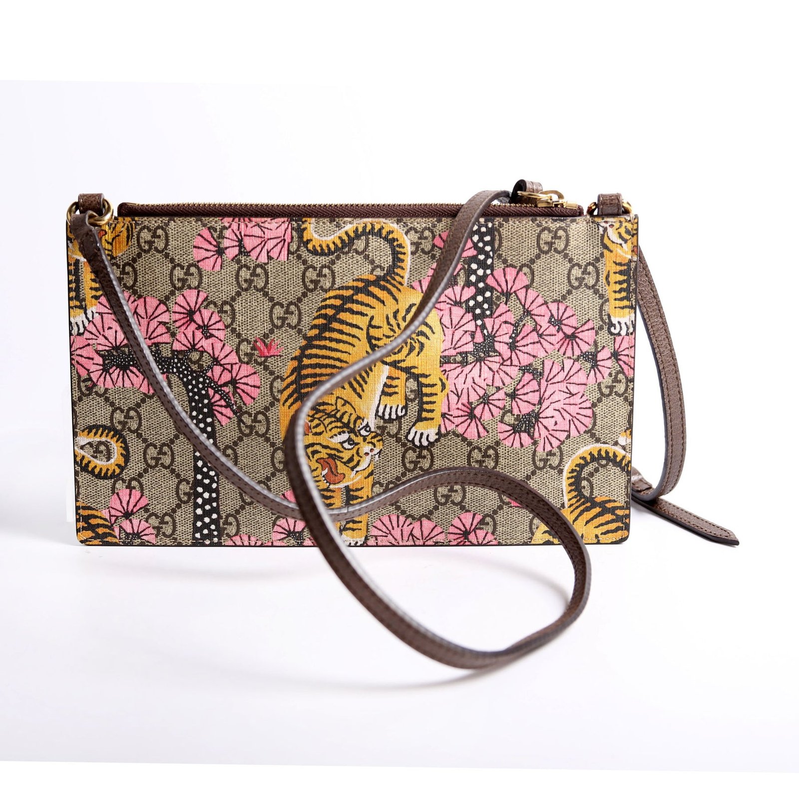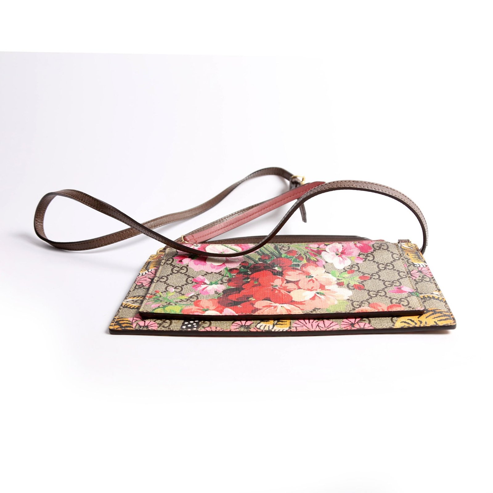 This pre-owned Gucci GG Supreme Blooms/Bengals Double Zip Shoulder Bag is guaranteed 100% authentic. The exterior is in the classic Gucci GG Supreme coated canvas.