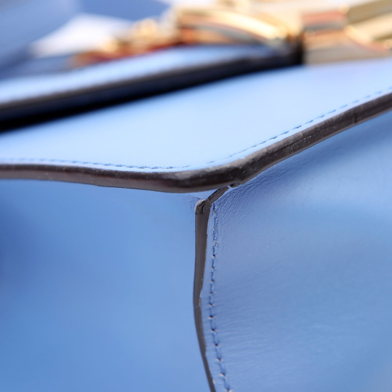 Handle: The leather handle shows no major signs of wear. The leather piping shows minor signs of wear throughout.