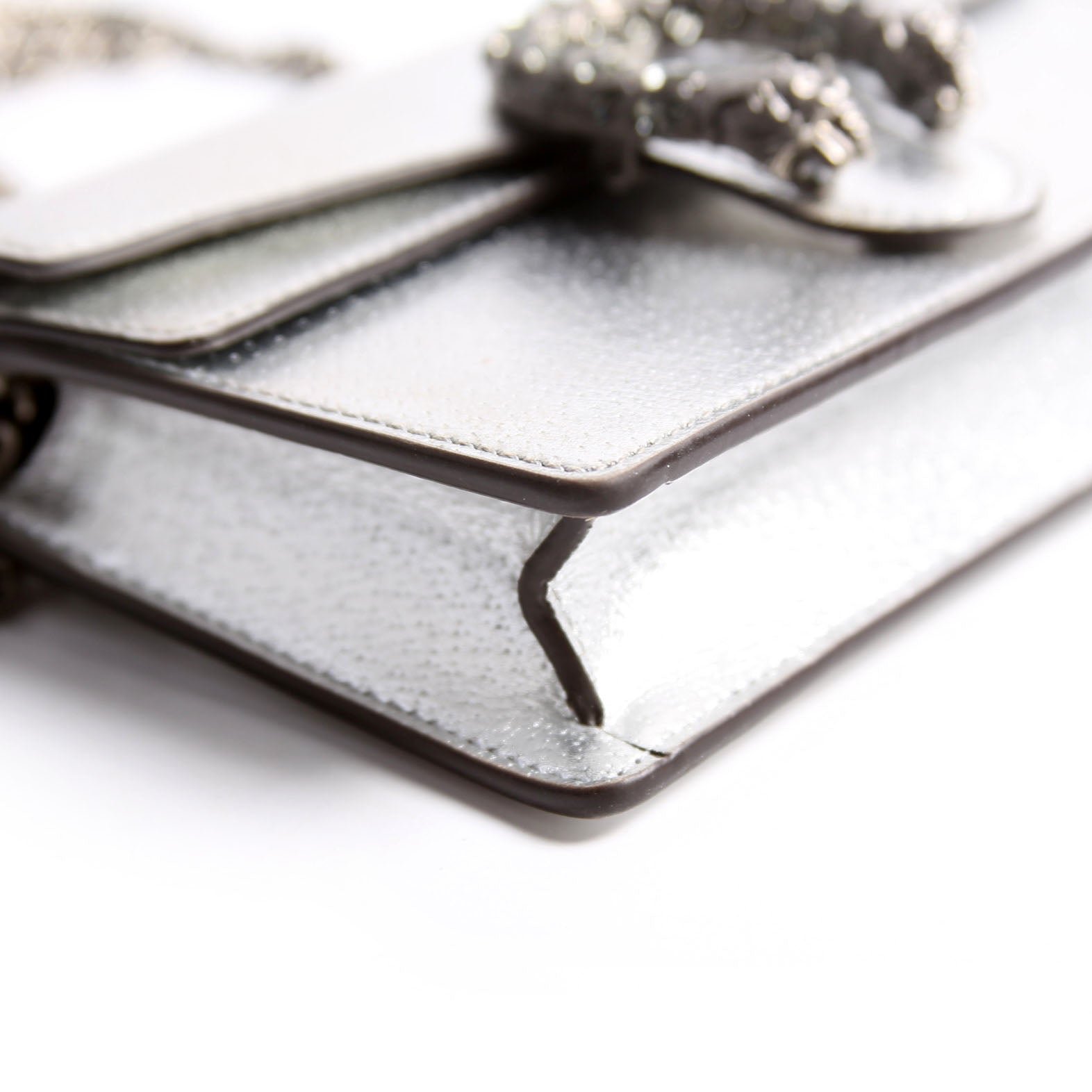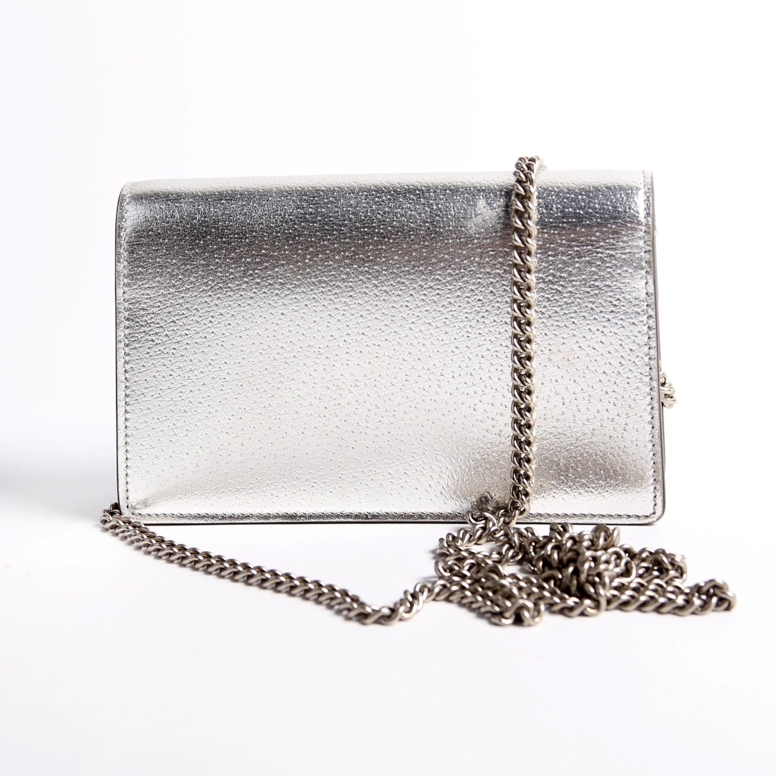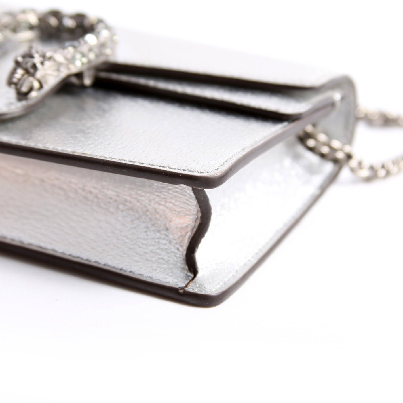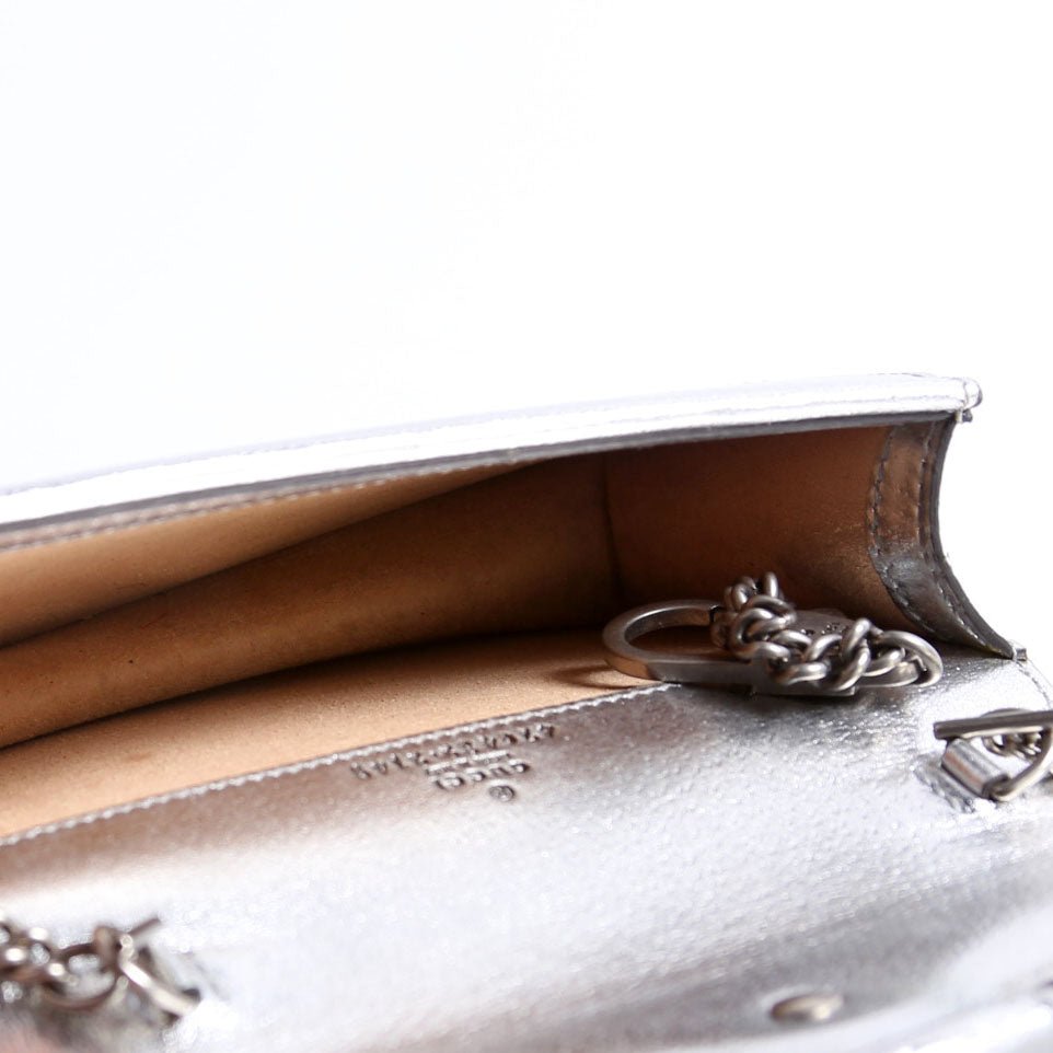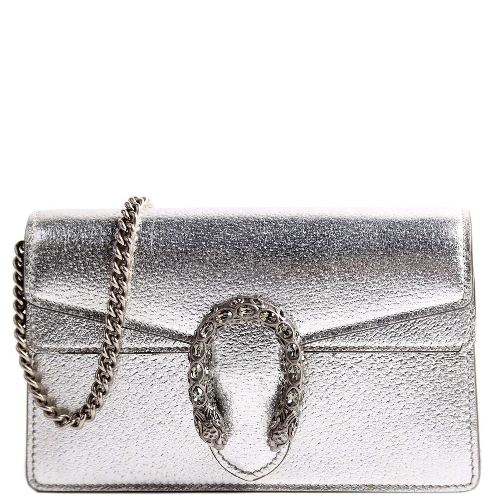 This pre-owned Gucci Dionysus Metallic Leather Super Mini is guaranteed 100% authentic.