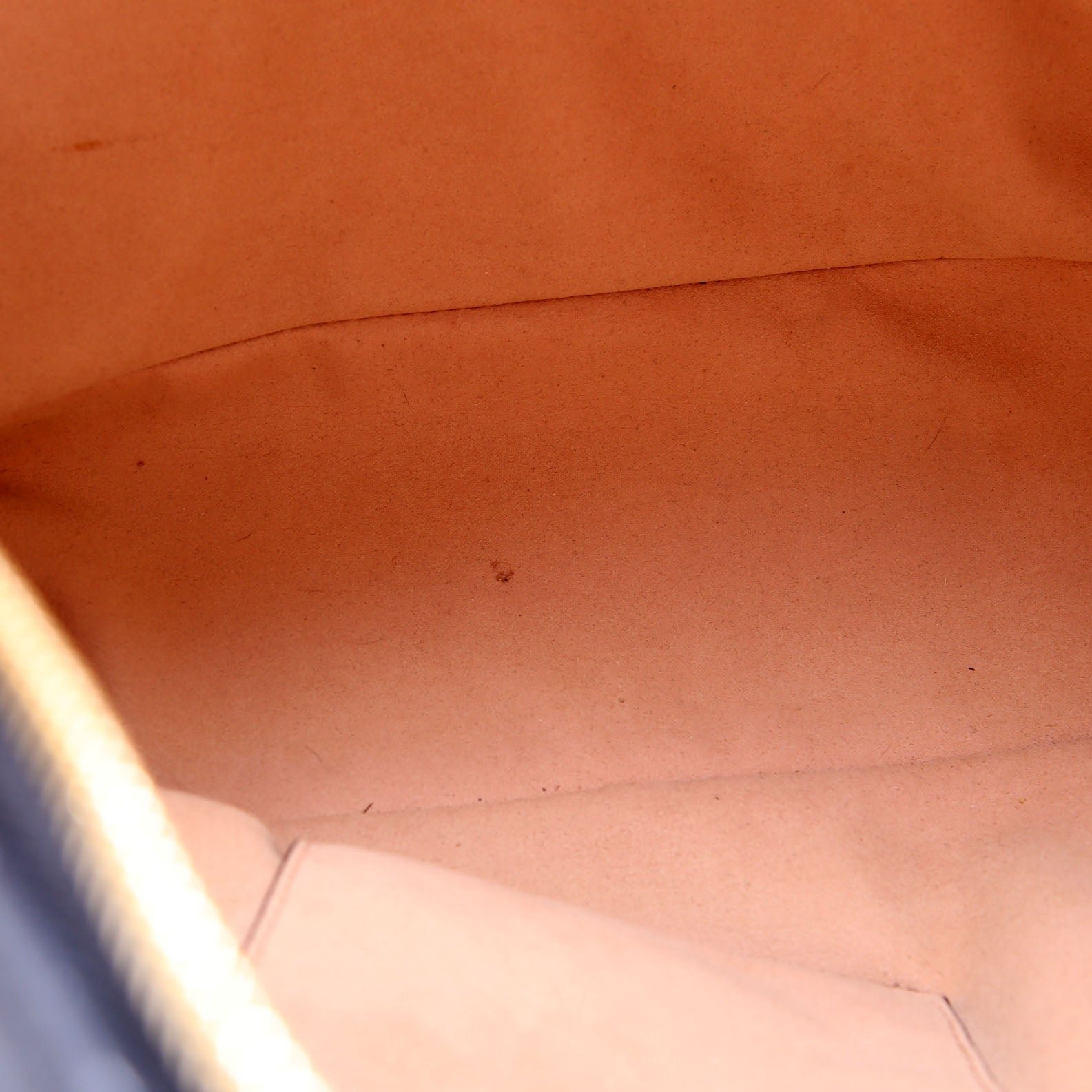Interior: The interior shows light wear throughout. It features two open pockets, and one zip closure pocket.