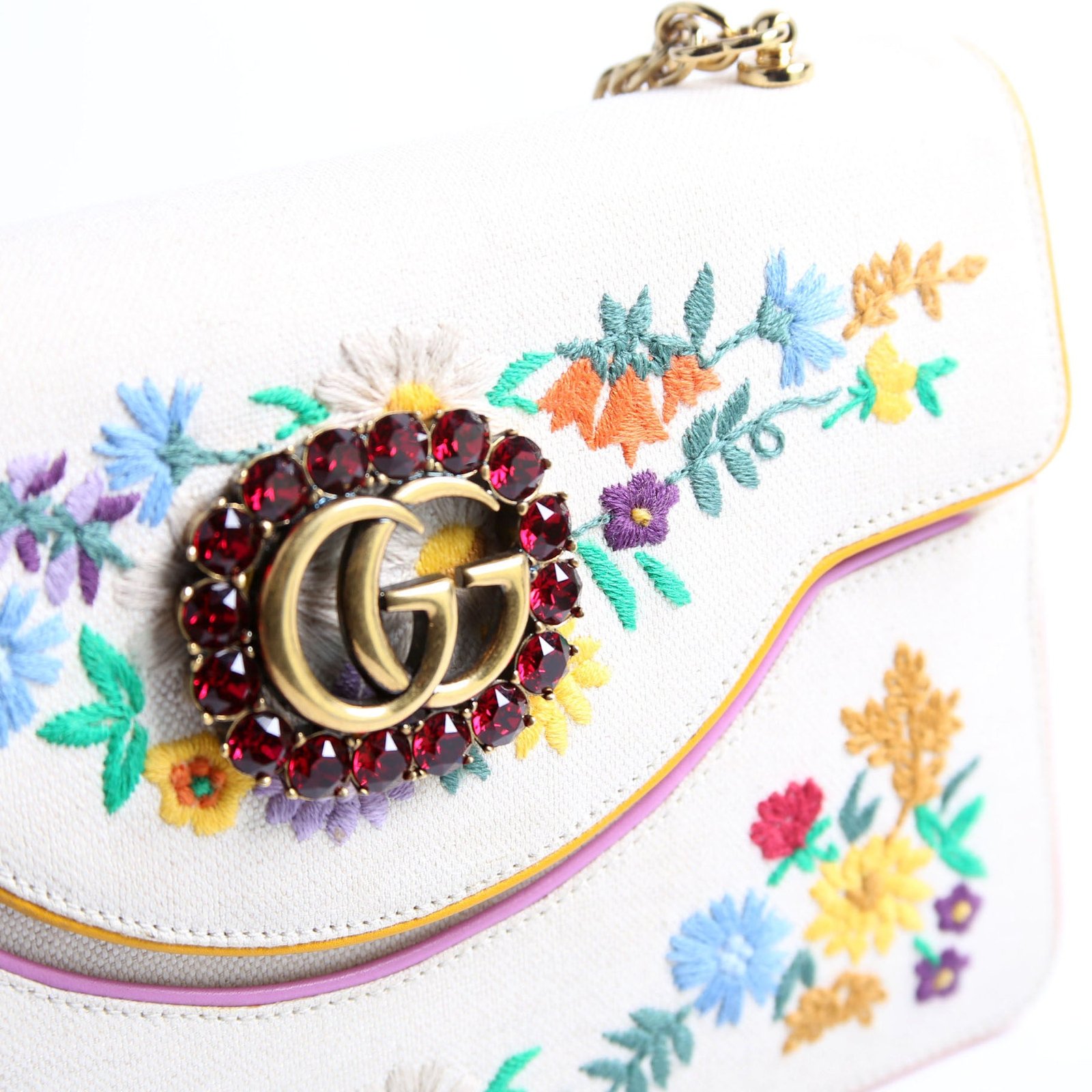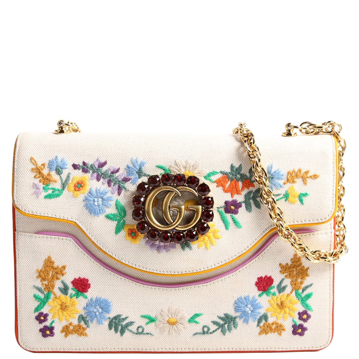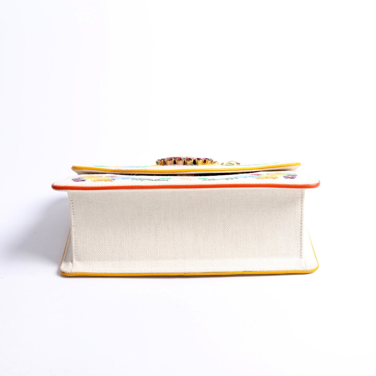 This pre-owned Gucci Linen Ricami Floral Embellished Shoulder Bag is guaranteed 100% authentic.