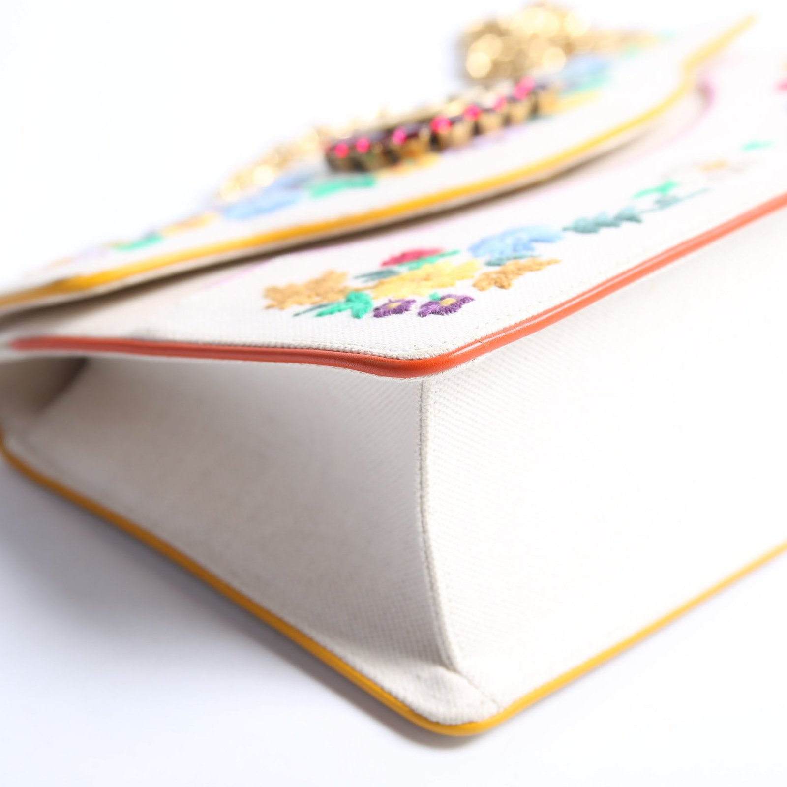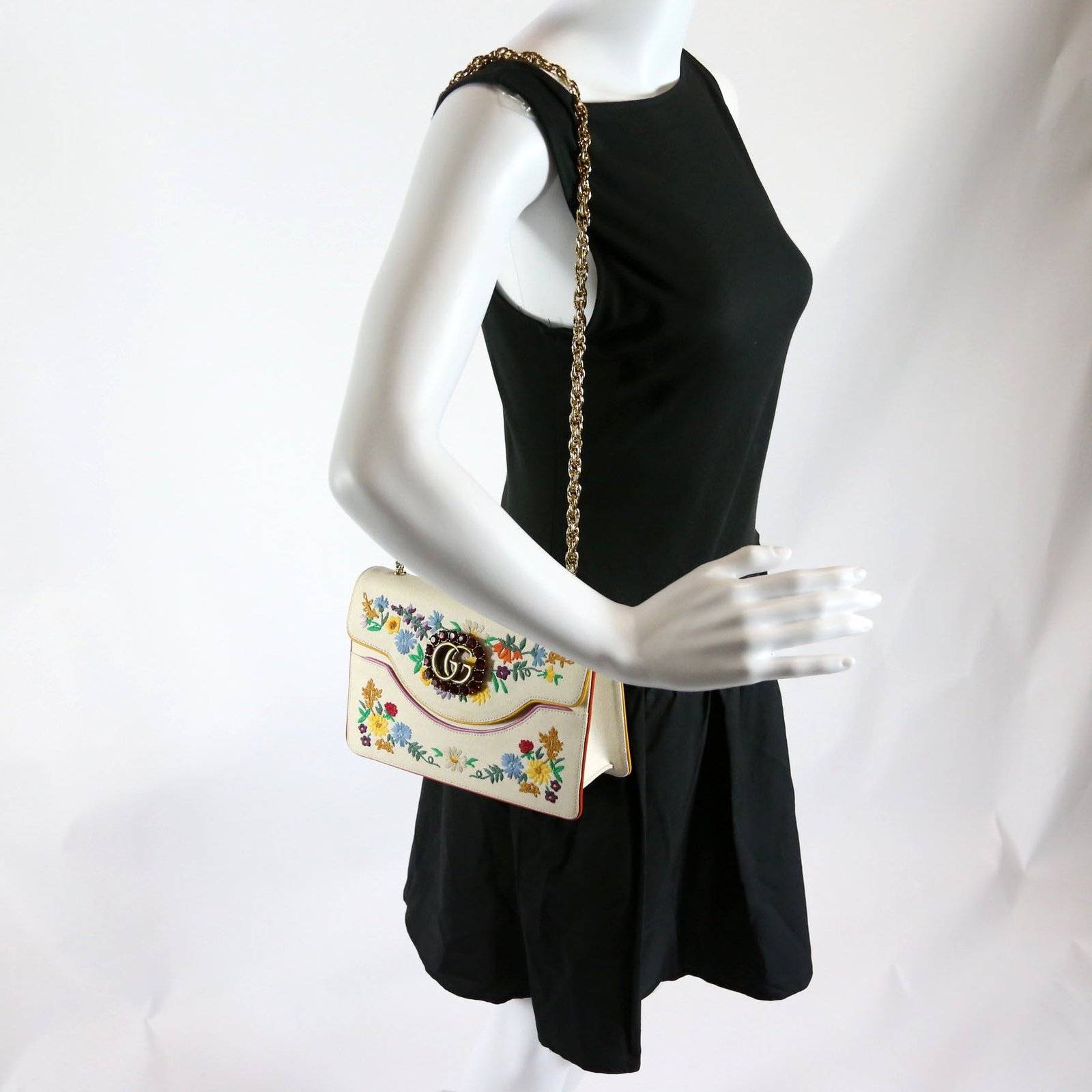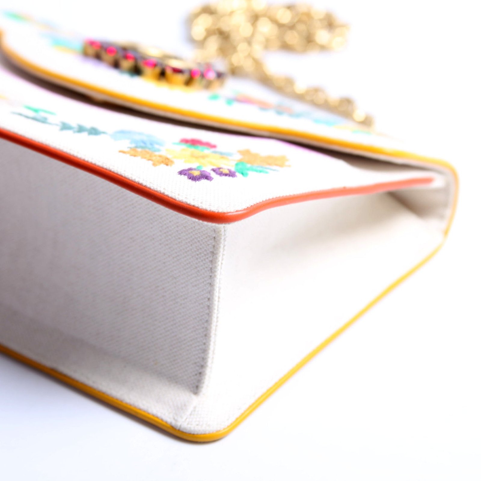 This pre-owned Gucci Linen Ricami Floral Embellished Shoulder Bag is guaranteed 100% authentic.