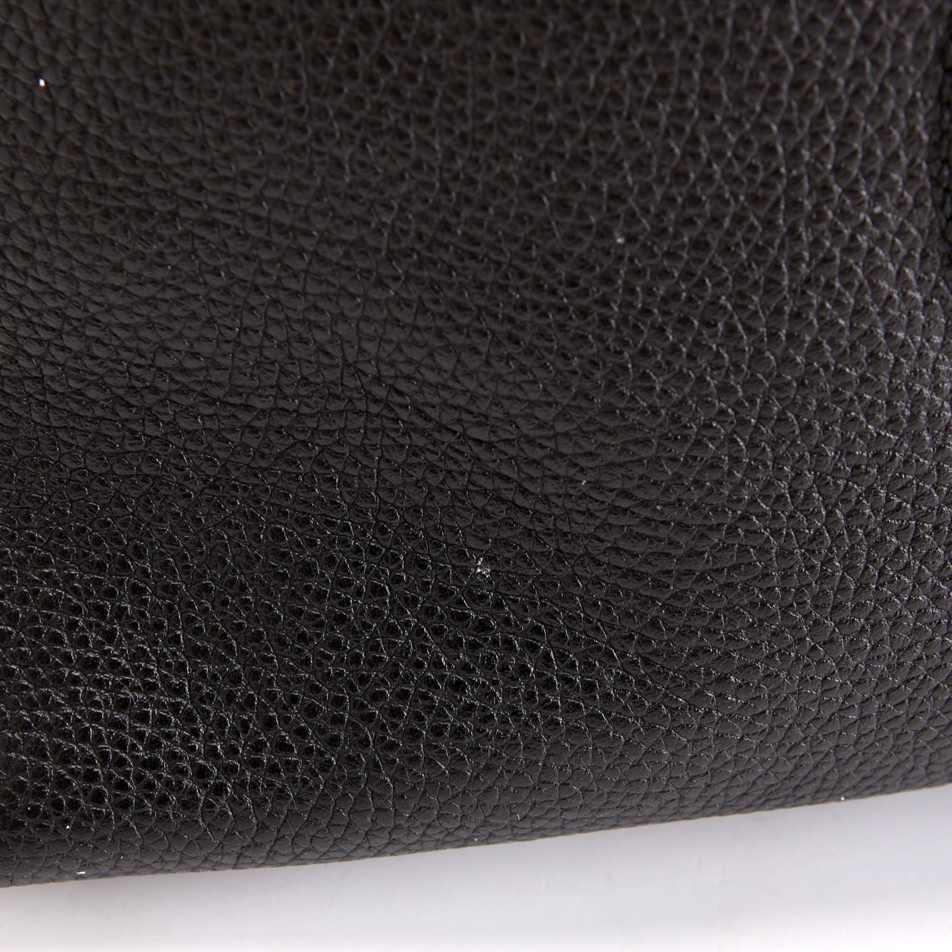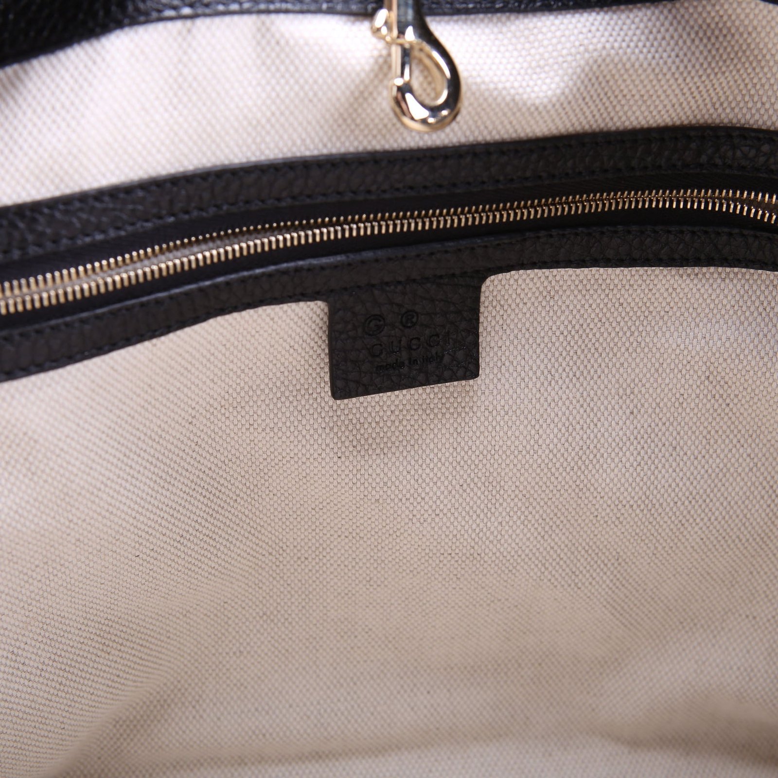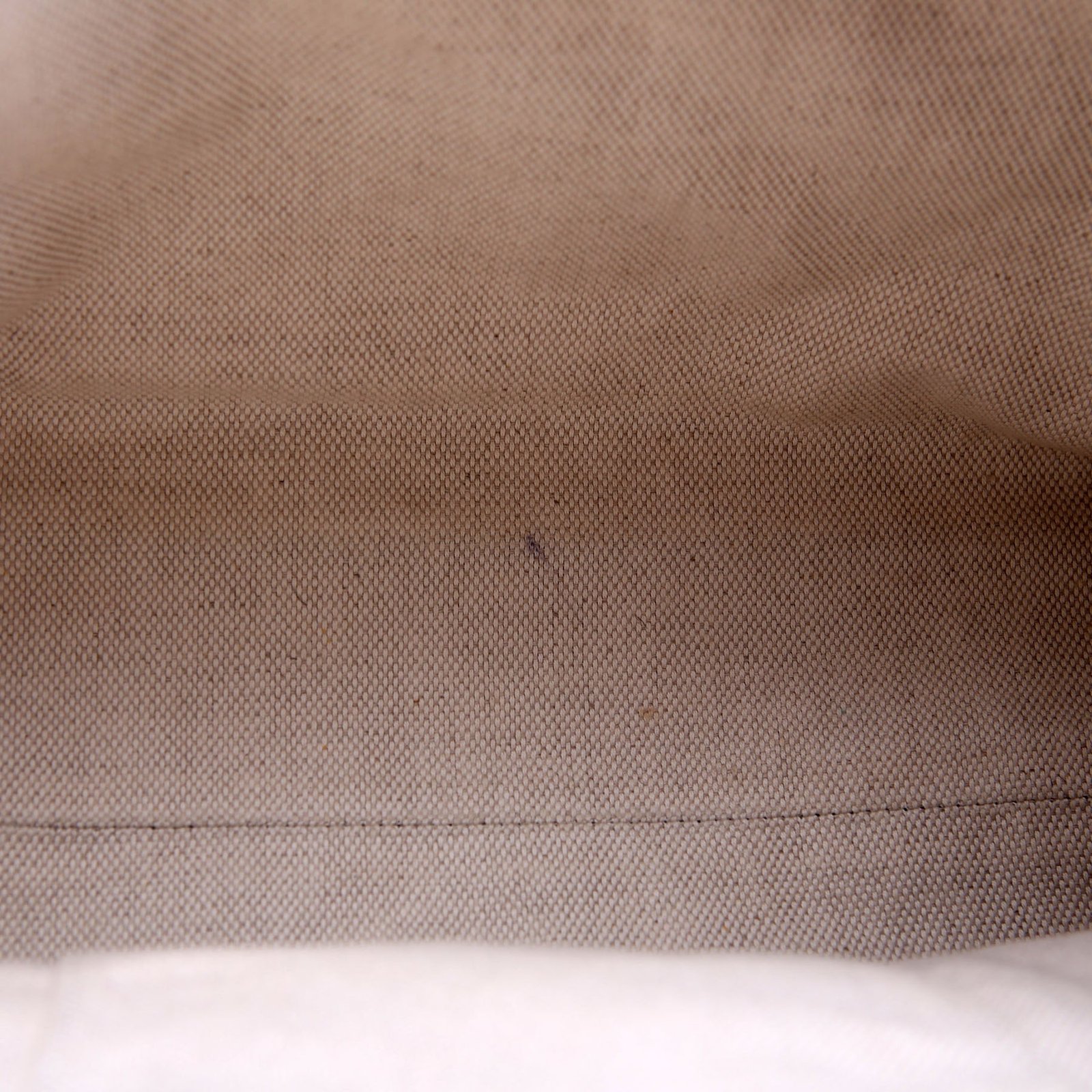 Interior: The interior has a pen stain. It features two open pockets and one zipper pocket.