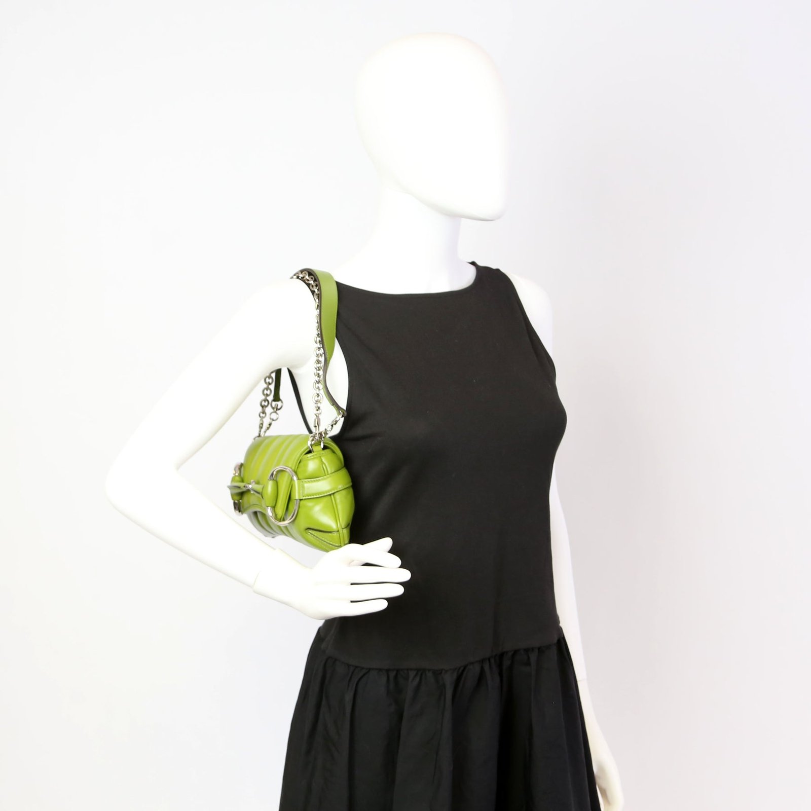 764339 Vertical Quilted Maxi Horsebit Chain Medium Shoulder Bag Green