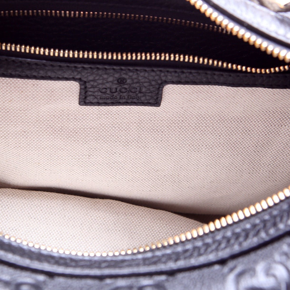 Interior: The interior is free from wear. It features one zip closure pocket.
