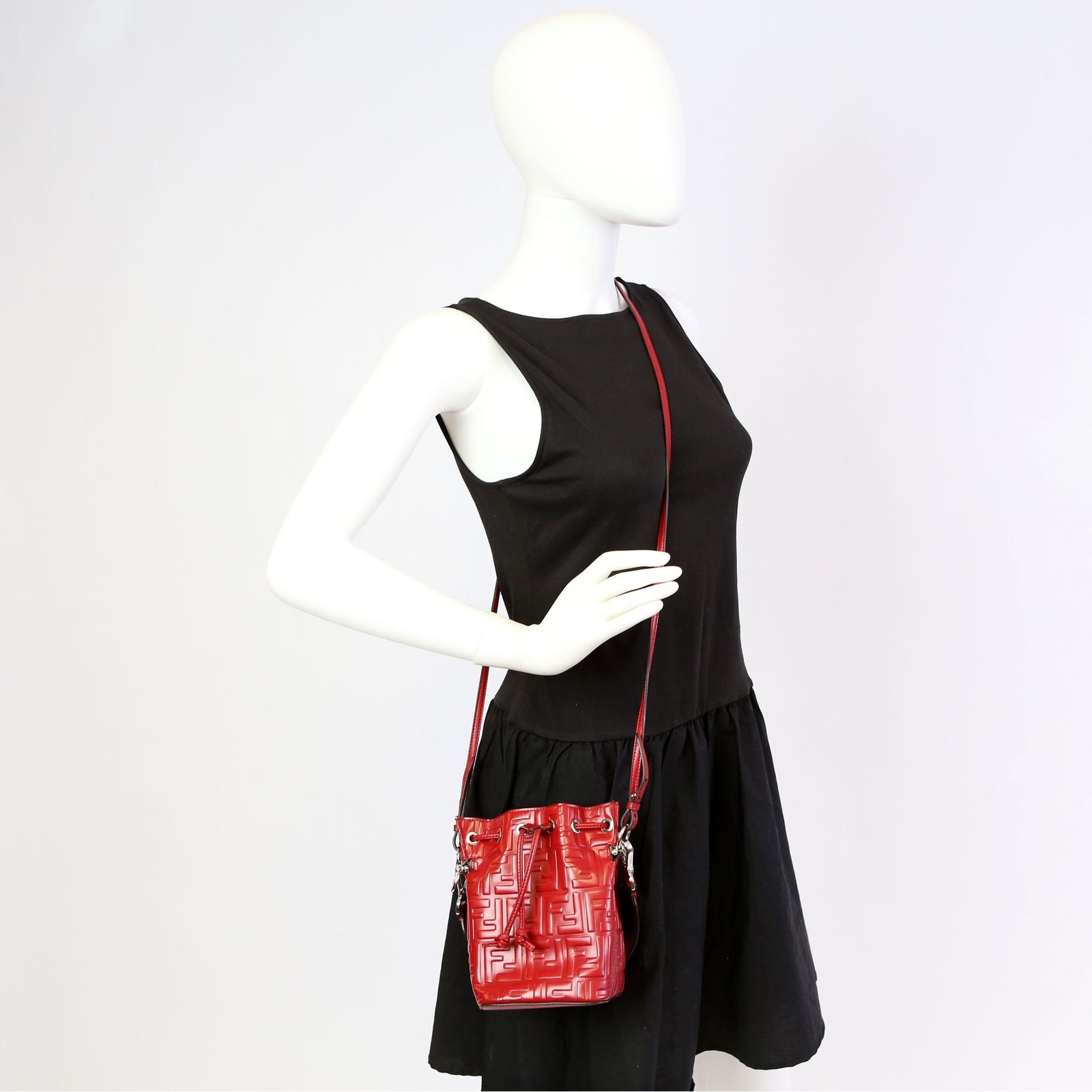 8BS010 Mon Tresor Mini Bucket Leather FF Red