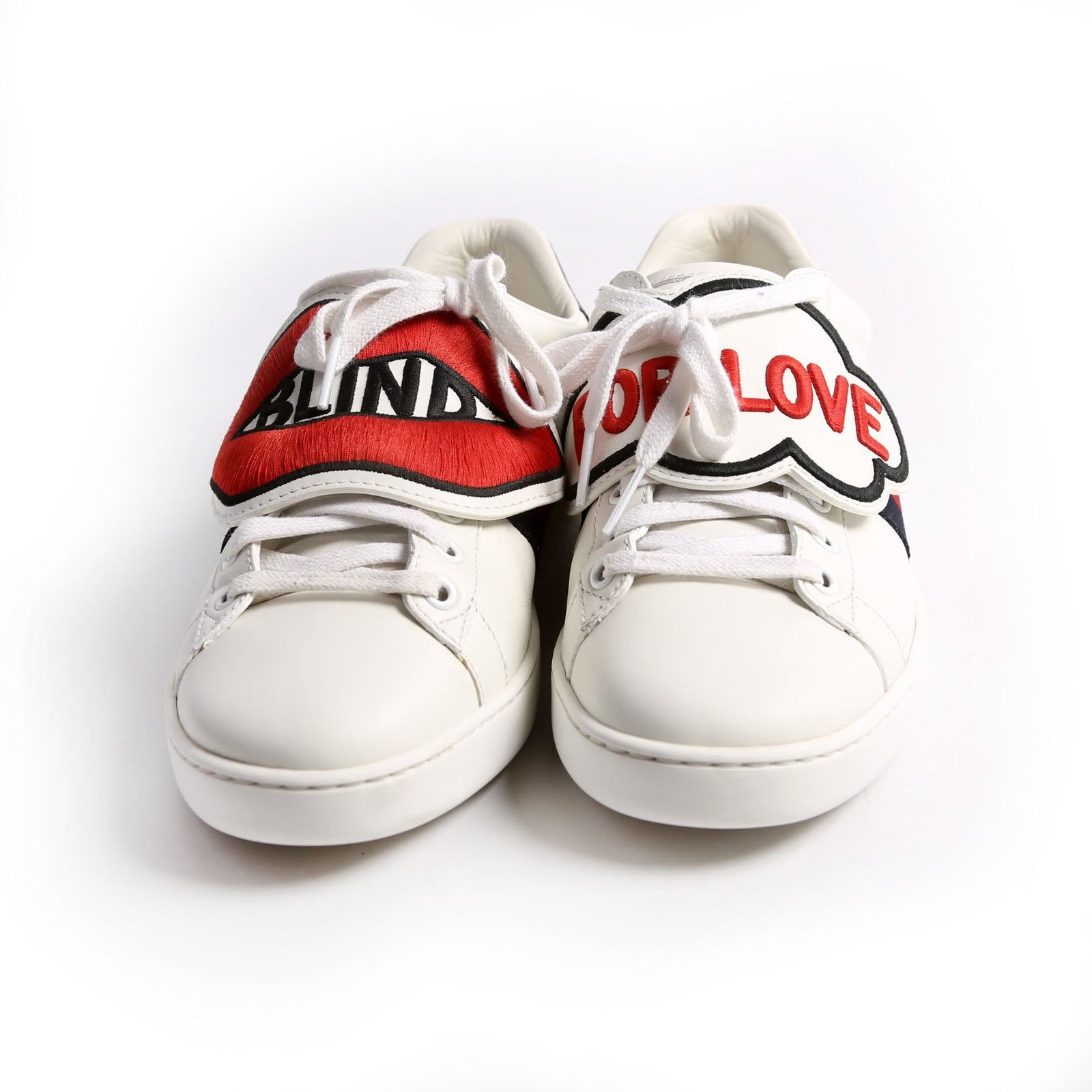 These pre-owned Gucci Ace Web Blind For Love Sneakers are guaranteed 100% authentic.