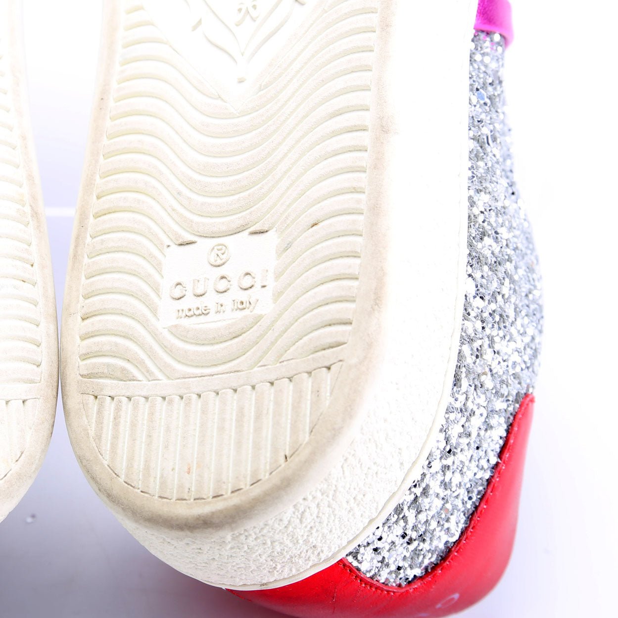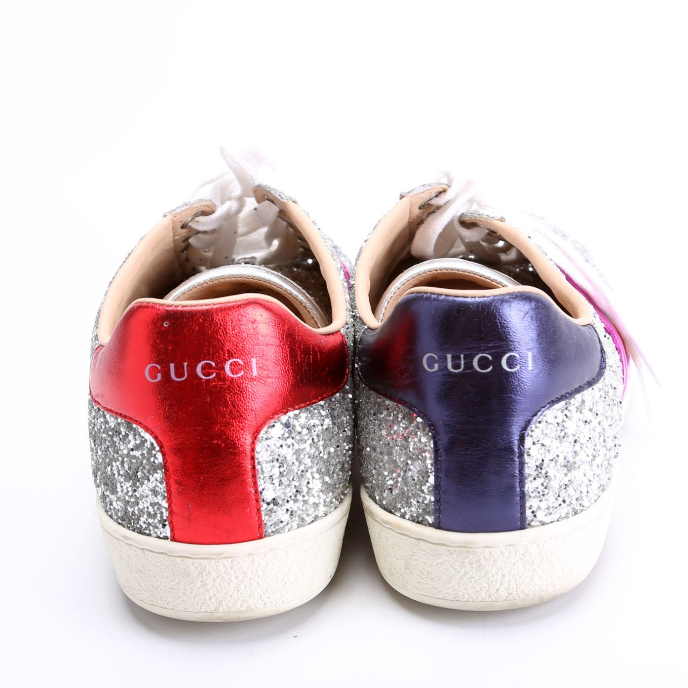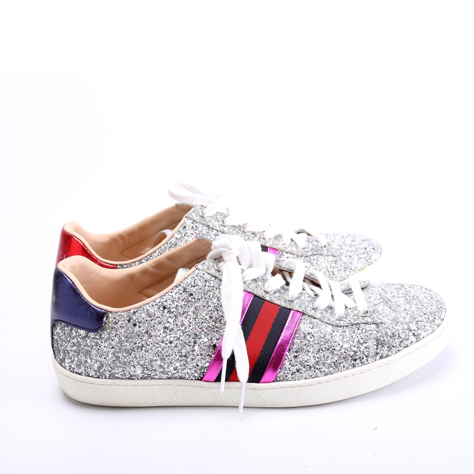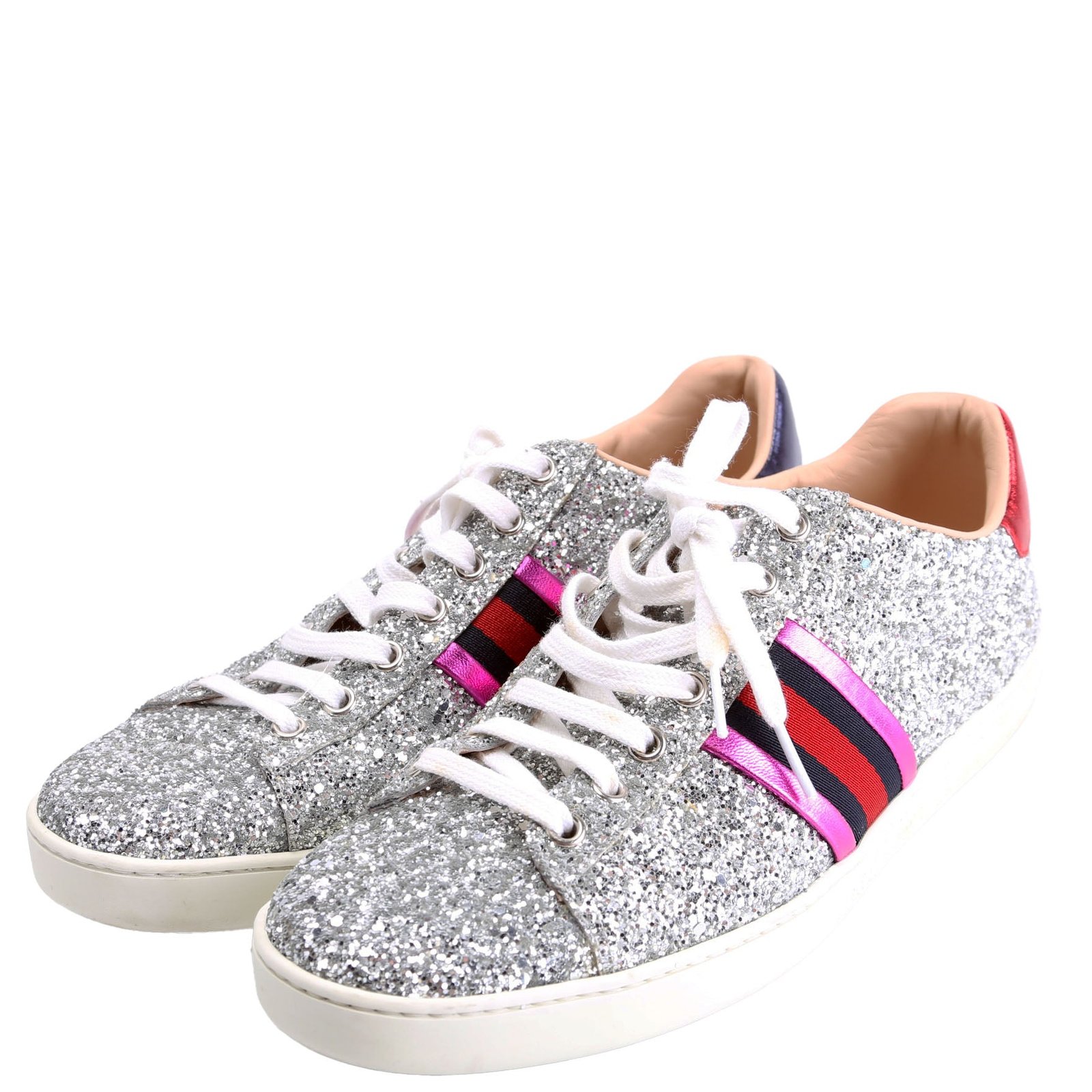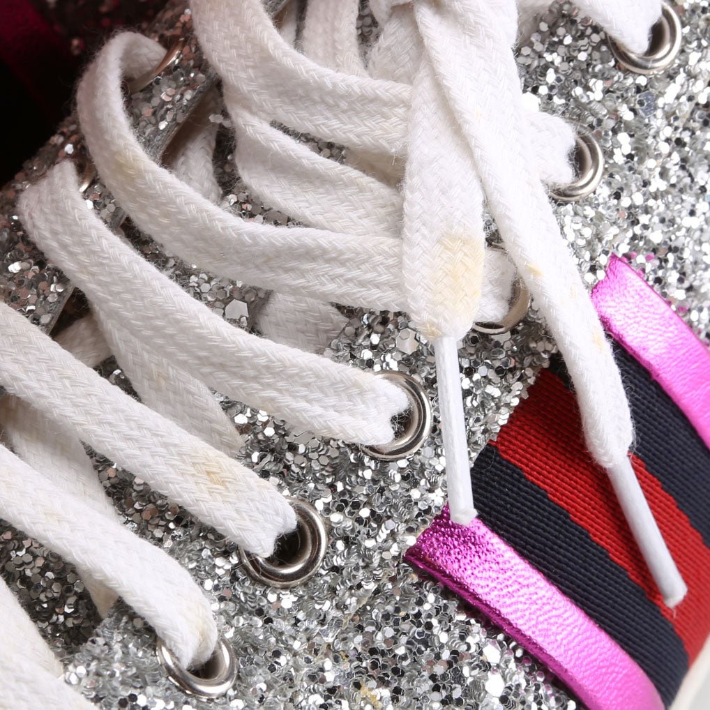 These pre-owned Gucci Ace Web Glitter Sneakers are guaranteed 100% authentic.
