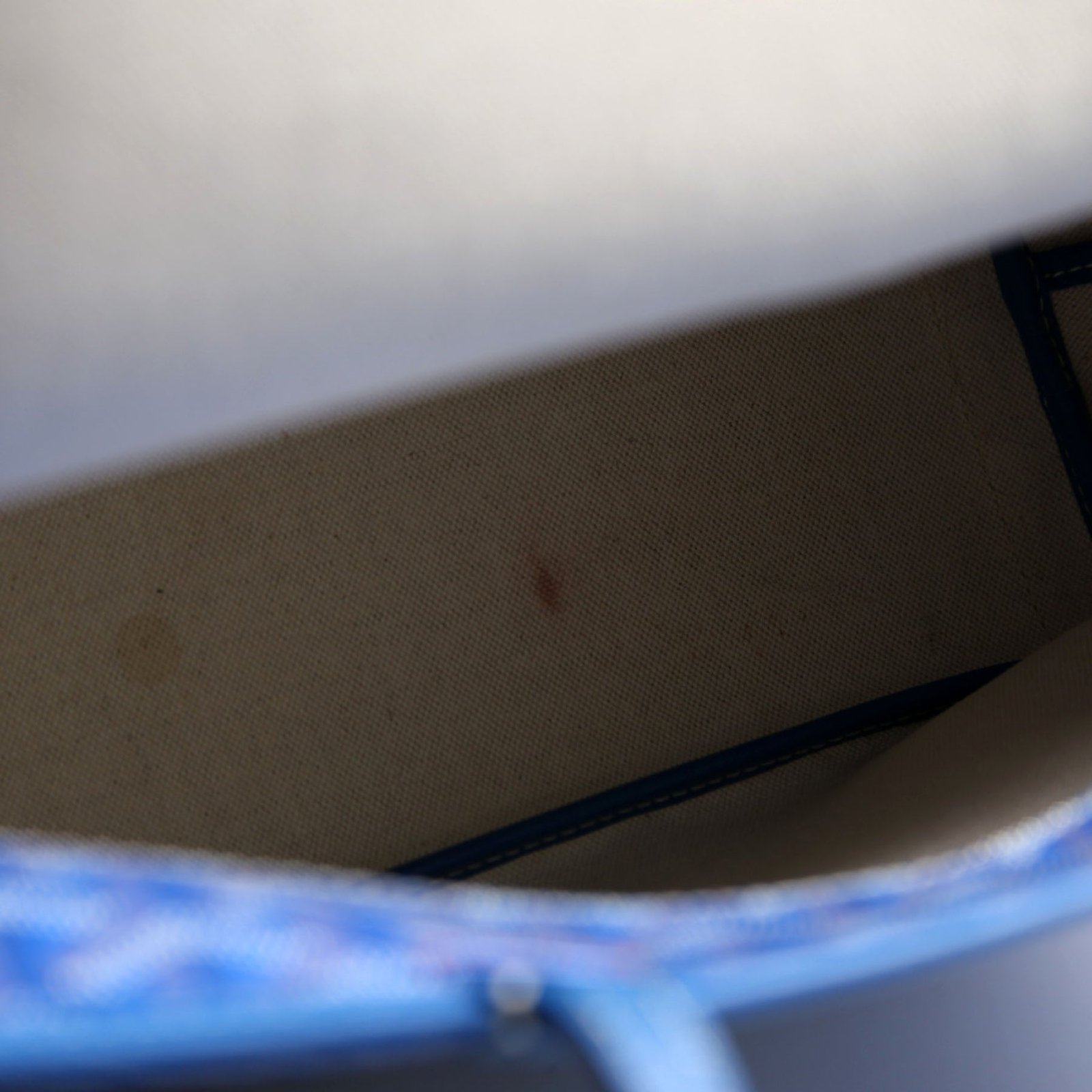 Interior: The interior has light stains at the base. It features one pocket.