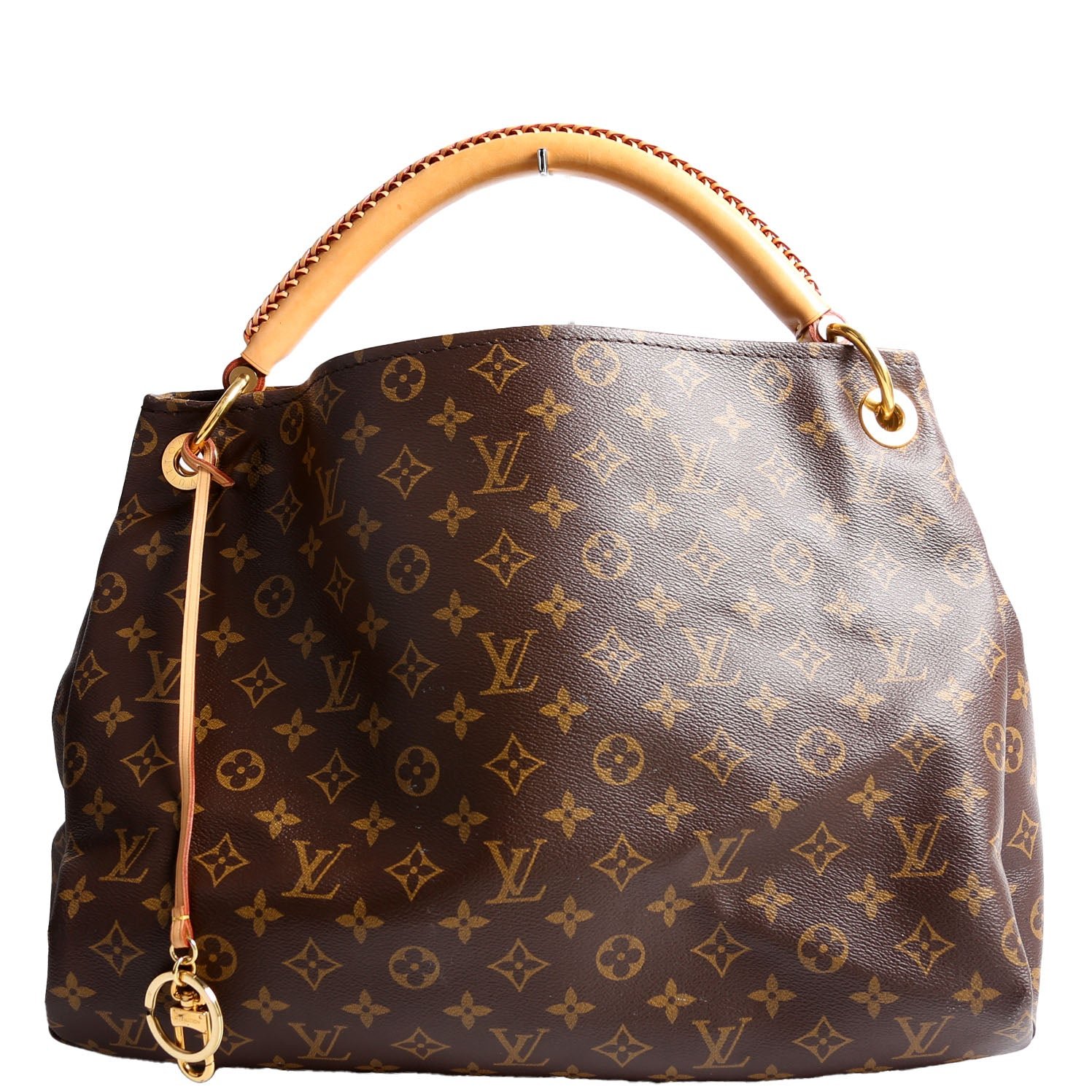 This pre-owned Louis Vuitton Artsy MM is guaranteed 100% authentic. The exterior is in the classic Louis Vuitton Monogram coated canvas.