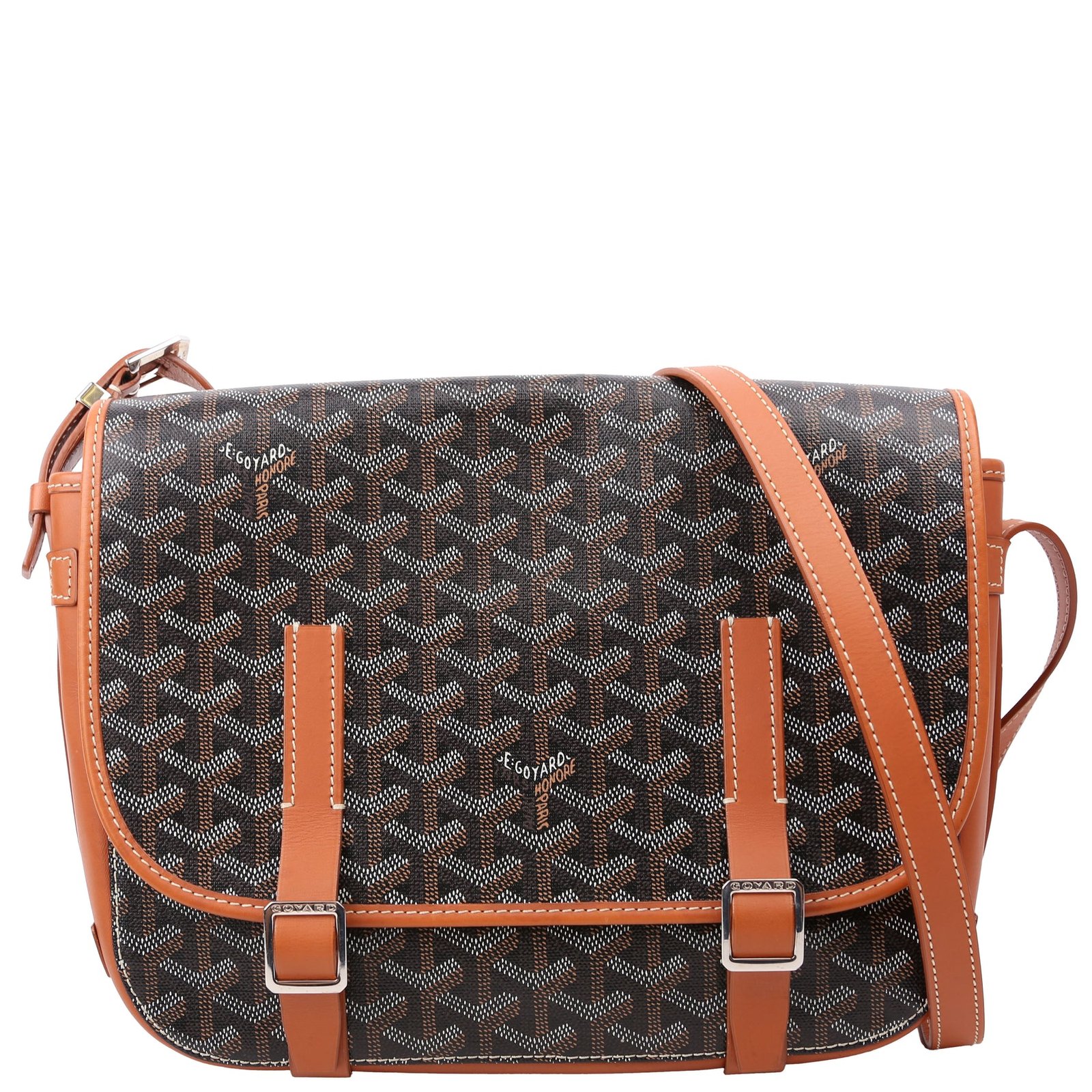 This pre-owned Goyard Belvedere MM is guaranteed 100% authentic. The exterior is in the classic Goyard Goyardine coated canvas.
