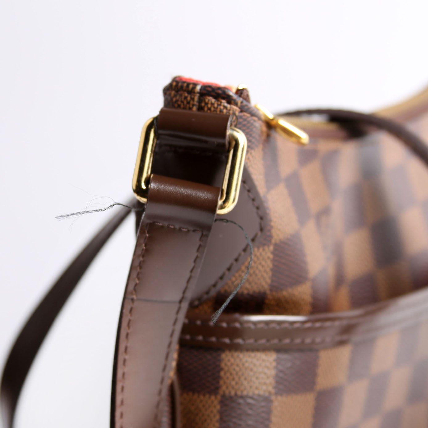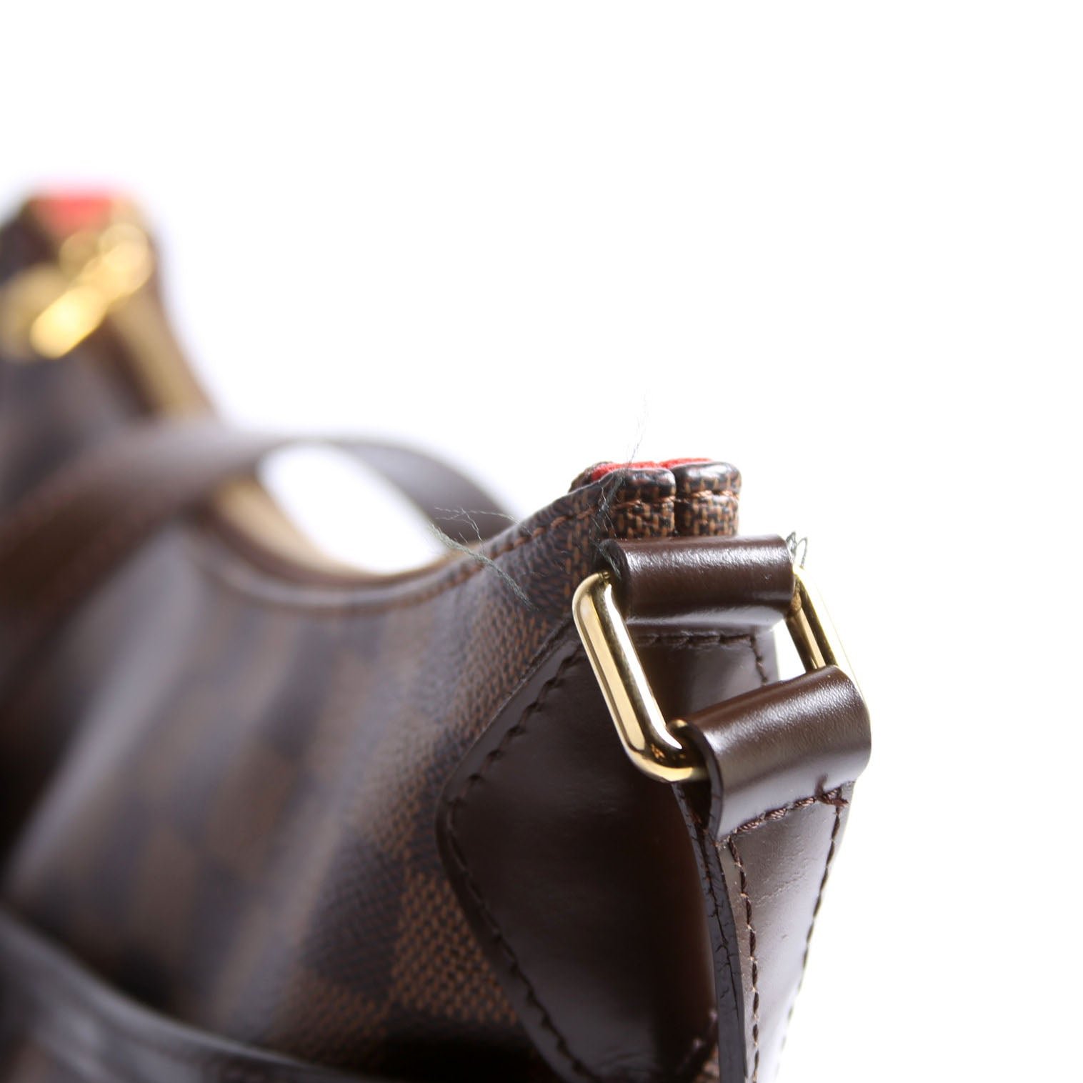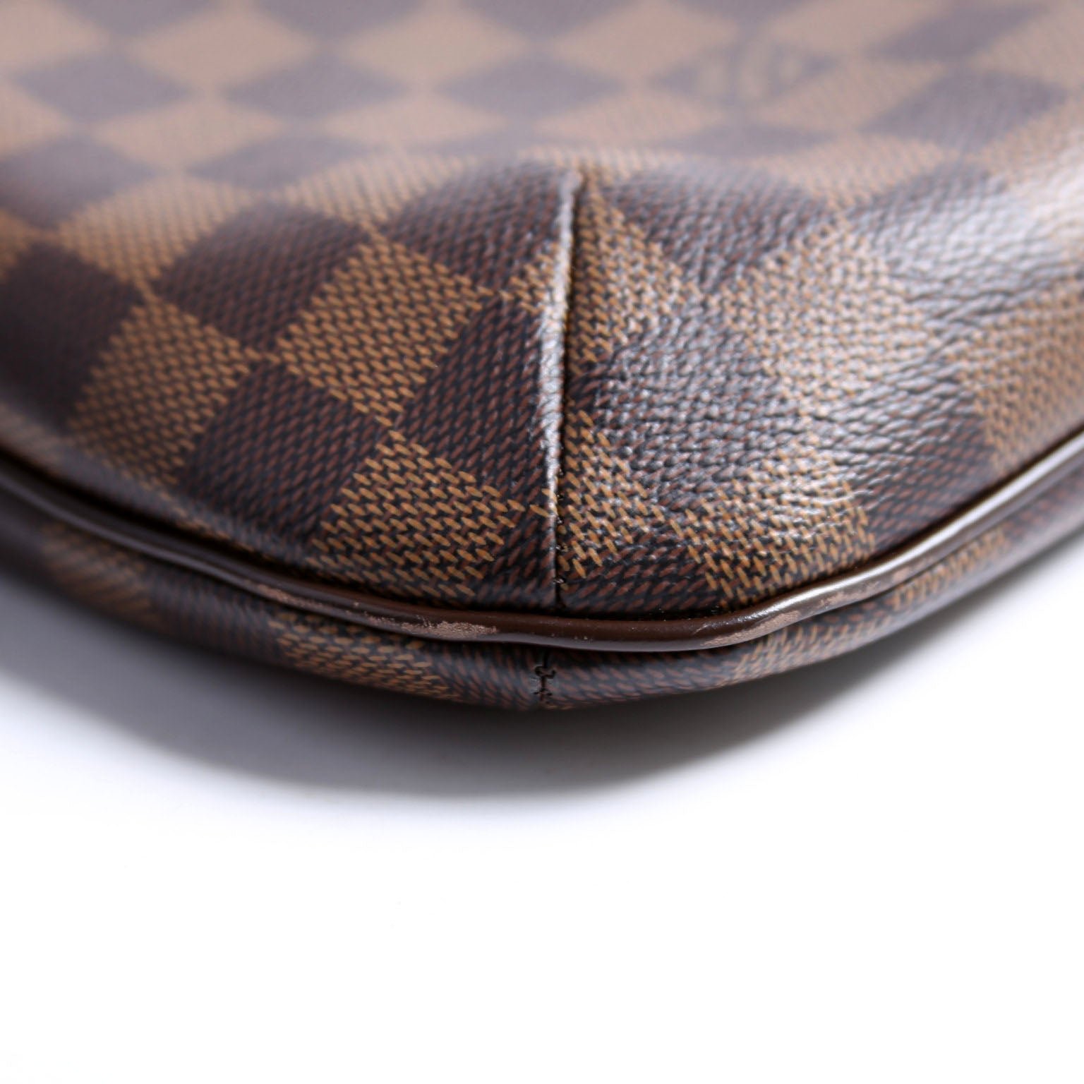 This pre-owned Louis Vuitton Bloomsbury PM guaranteed 100% authentic. The exterior is in the classic Louis Vuitton Damier Ebene Coated Canvas