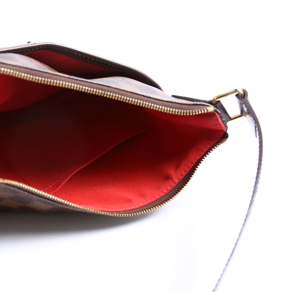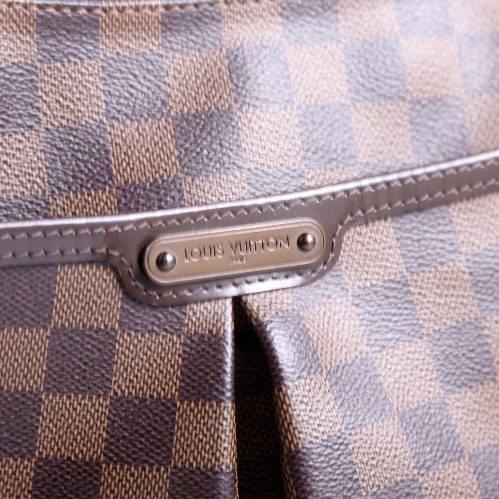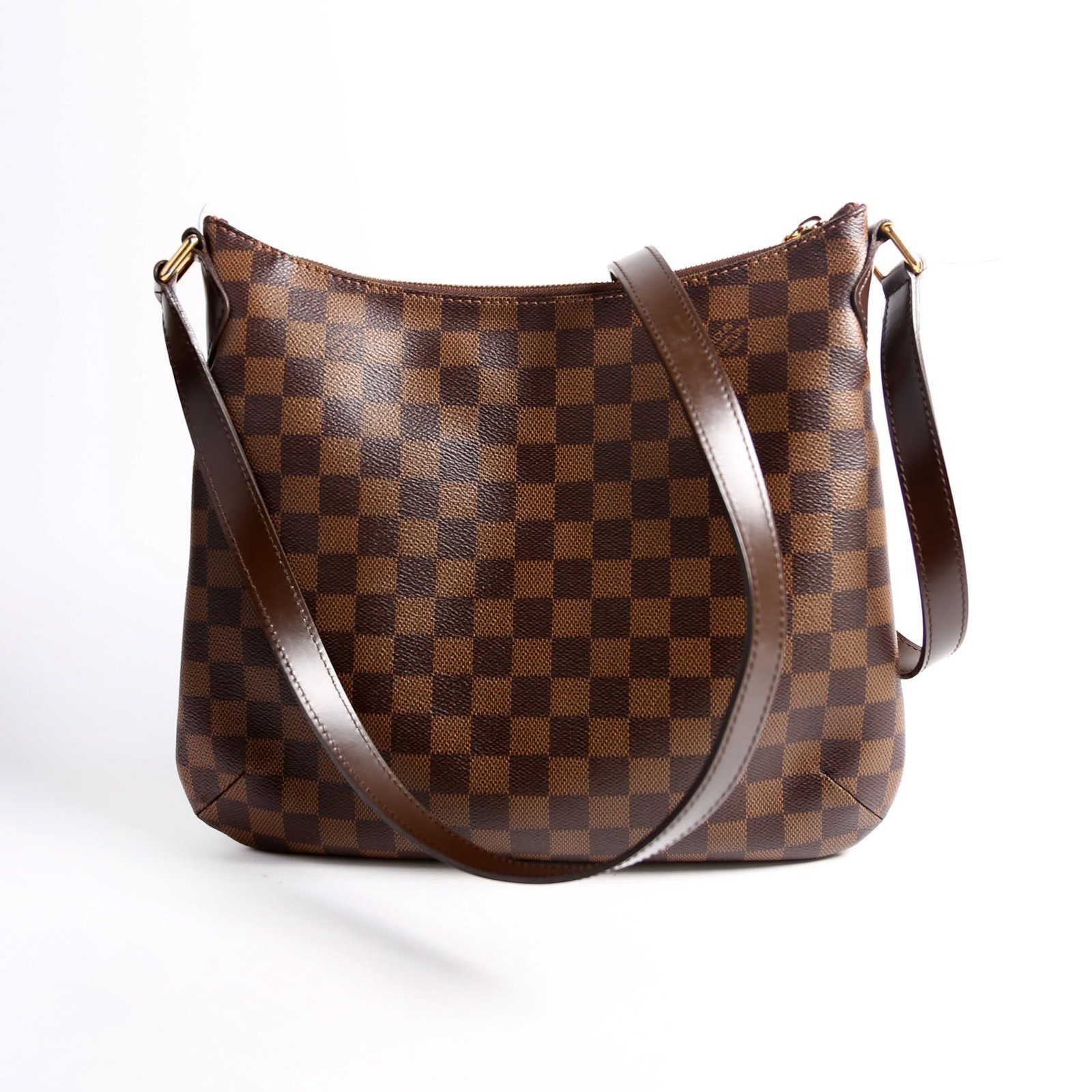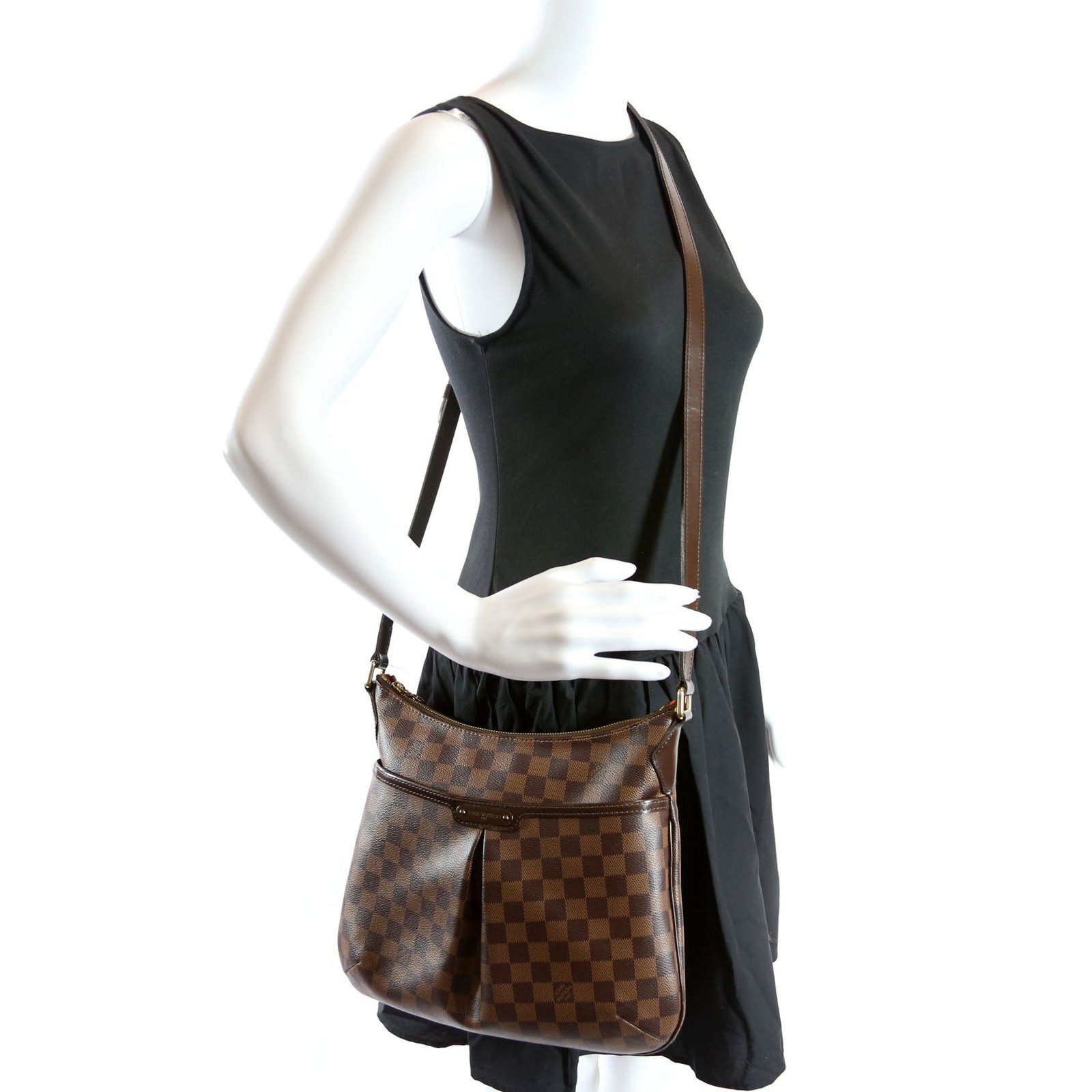 This pre-owned Louis Vuitton Bloomsbury PM guaranteed 100% authentic. The exterior is in the classic Louis Vuitton Damier Ebene Coated Canvas
