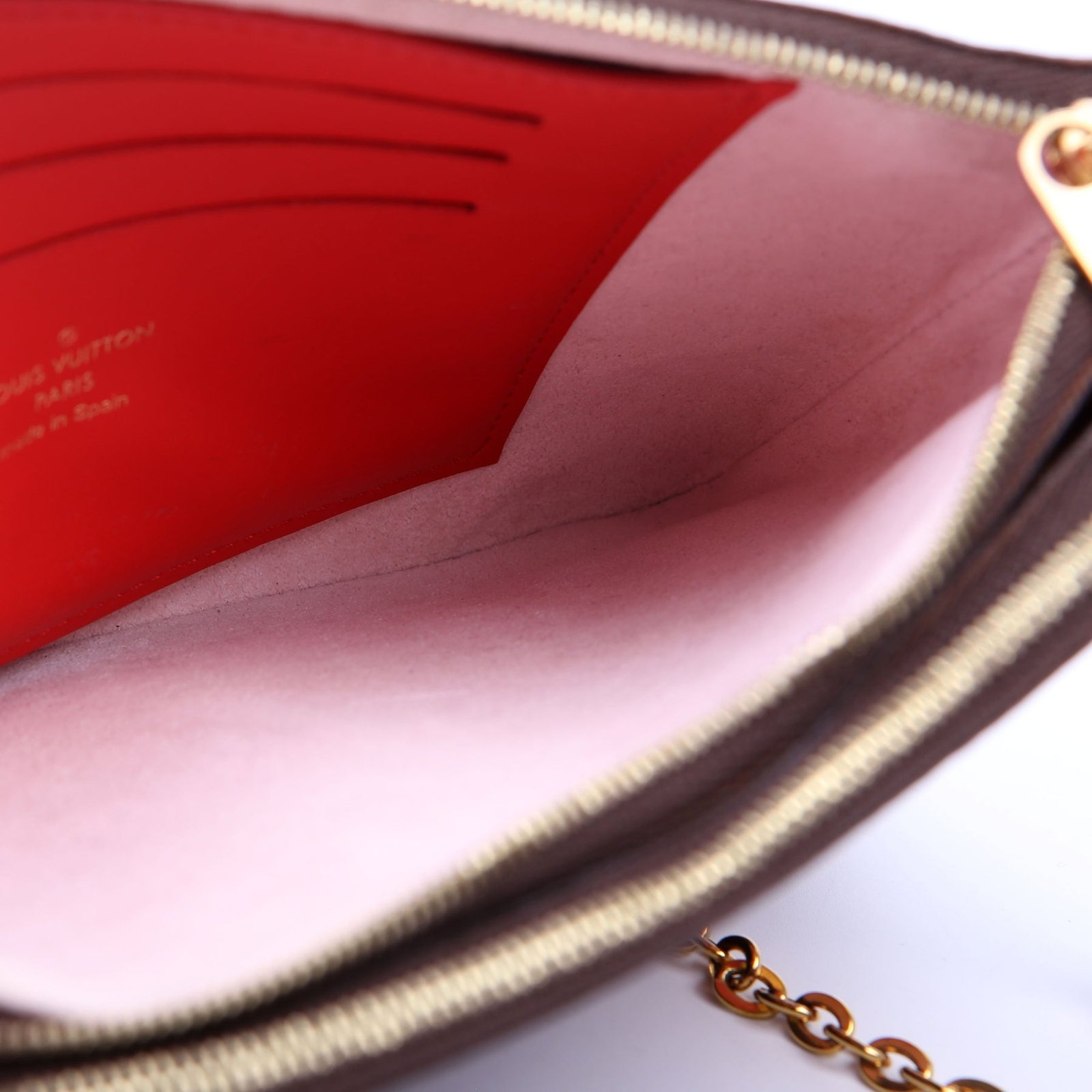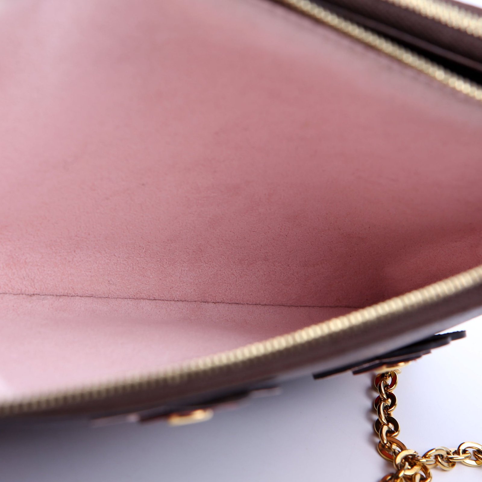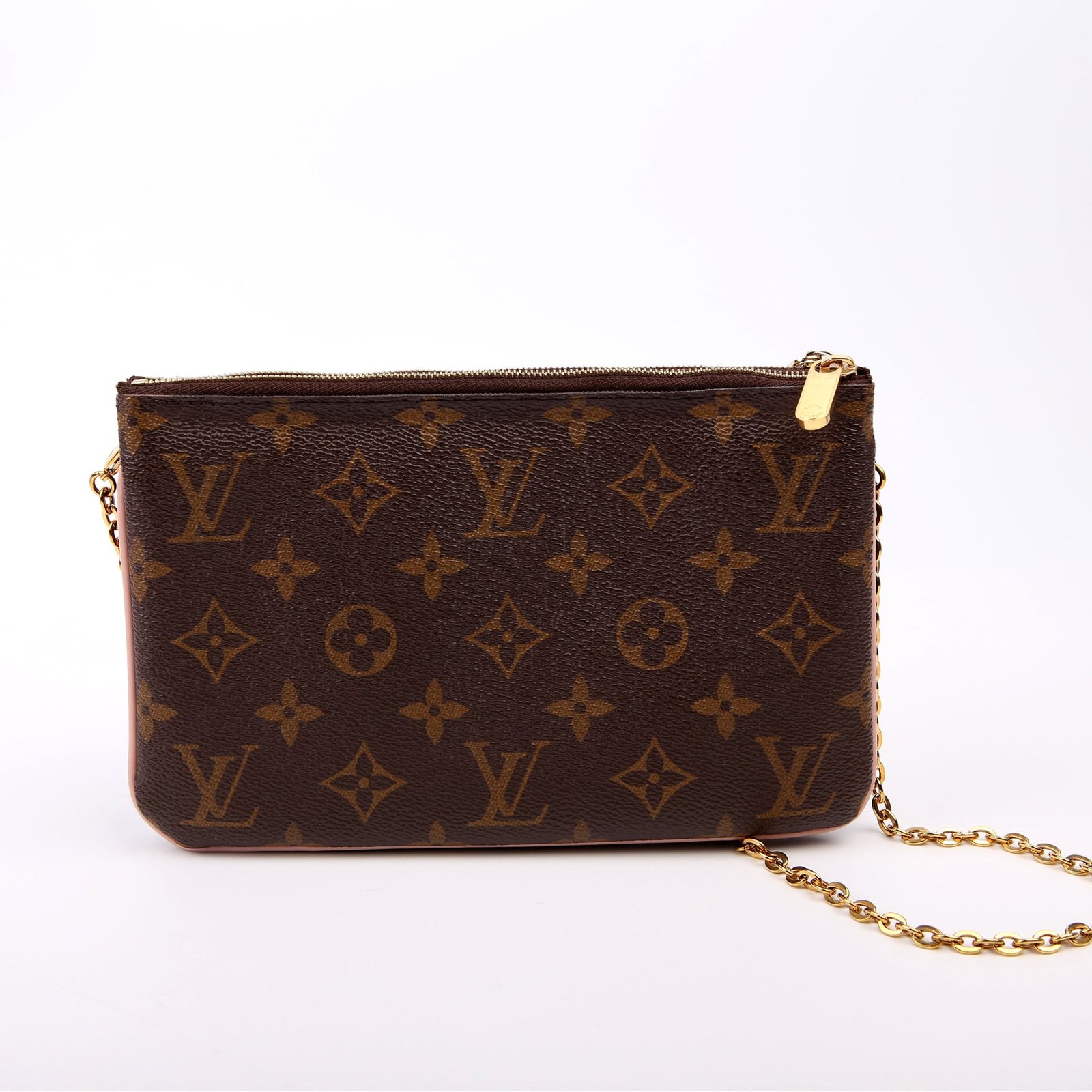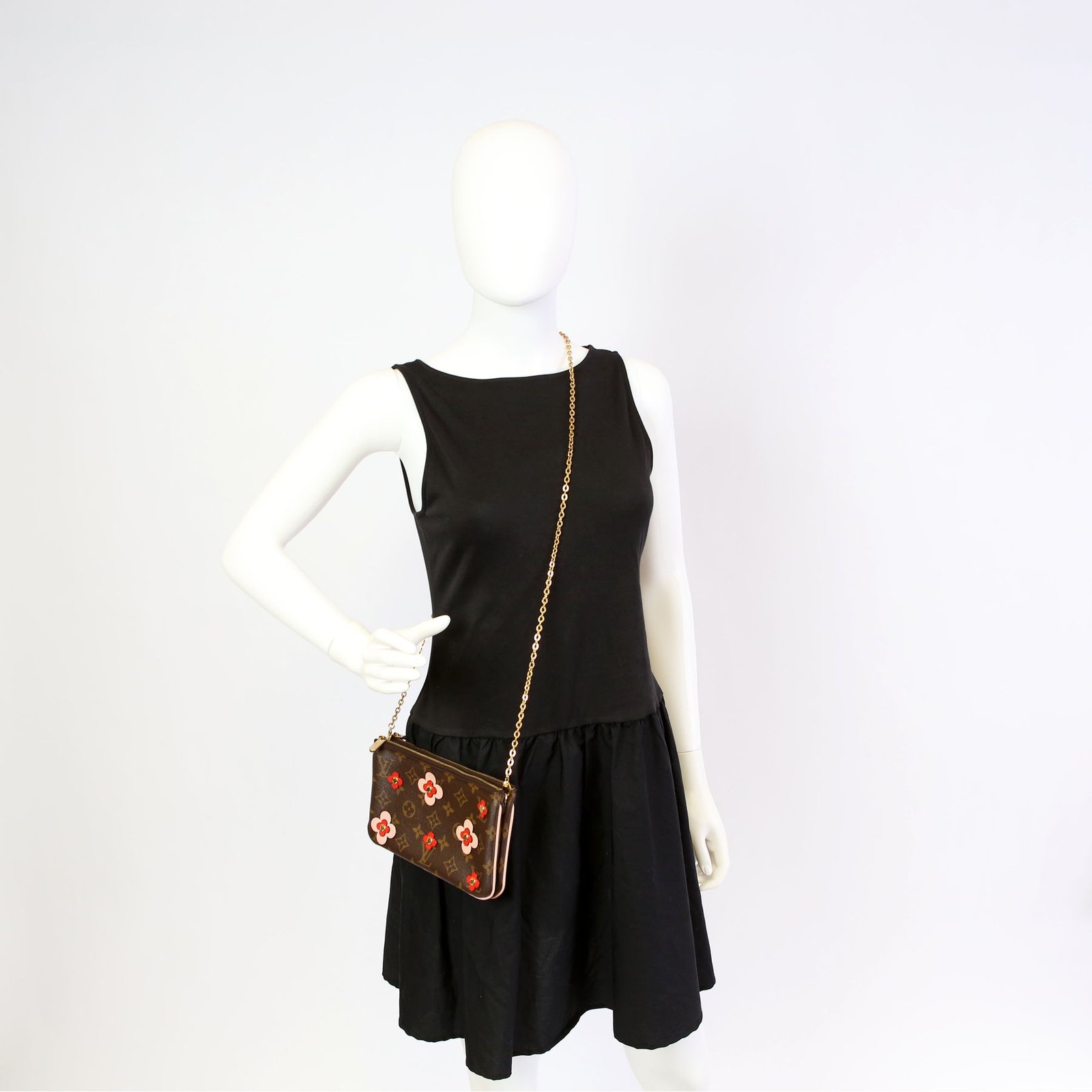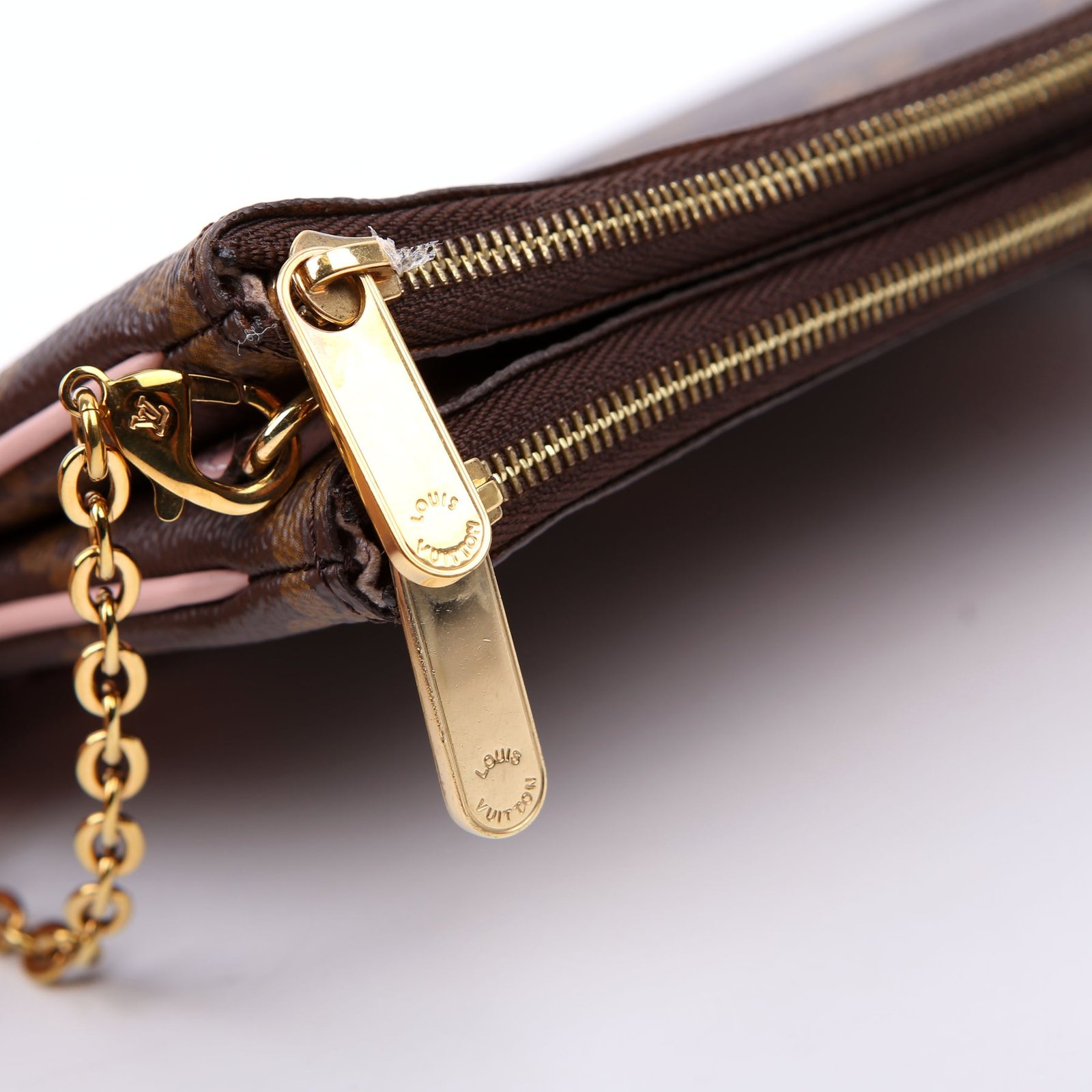 This pre-owned Louis Vuitton Double Zip Pochette Blooming Flowers is guaranteed 100% authentic. The exterior is in the classic Louis Vuitton Monogram coated canvas.