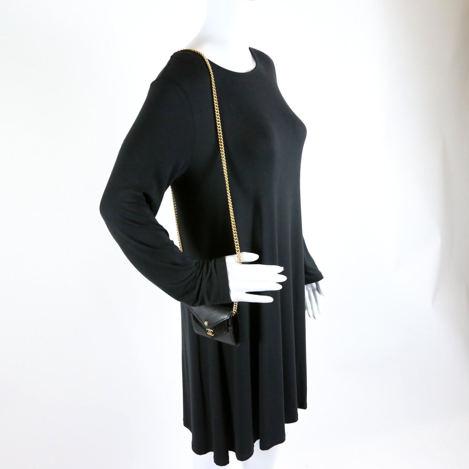This pre-owned Chanel Envelope Flap Card Case On Chain is guaranteed 100% authentic.  The exterior is in the classic Chanel lambskin leather.