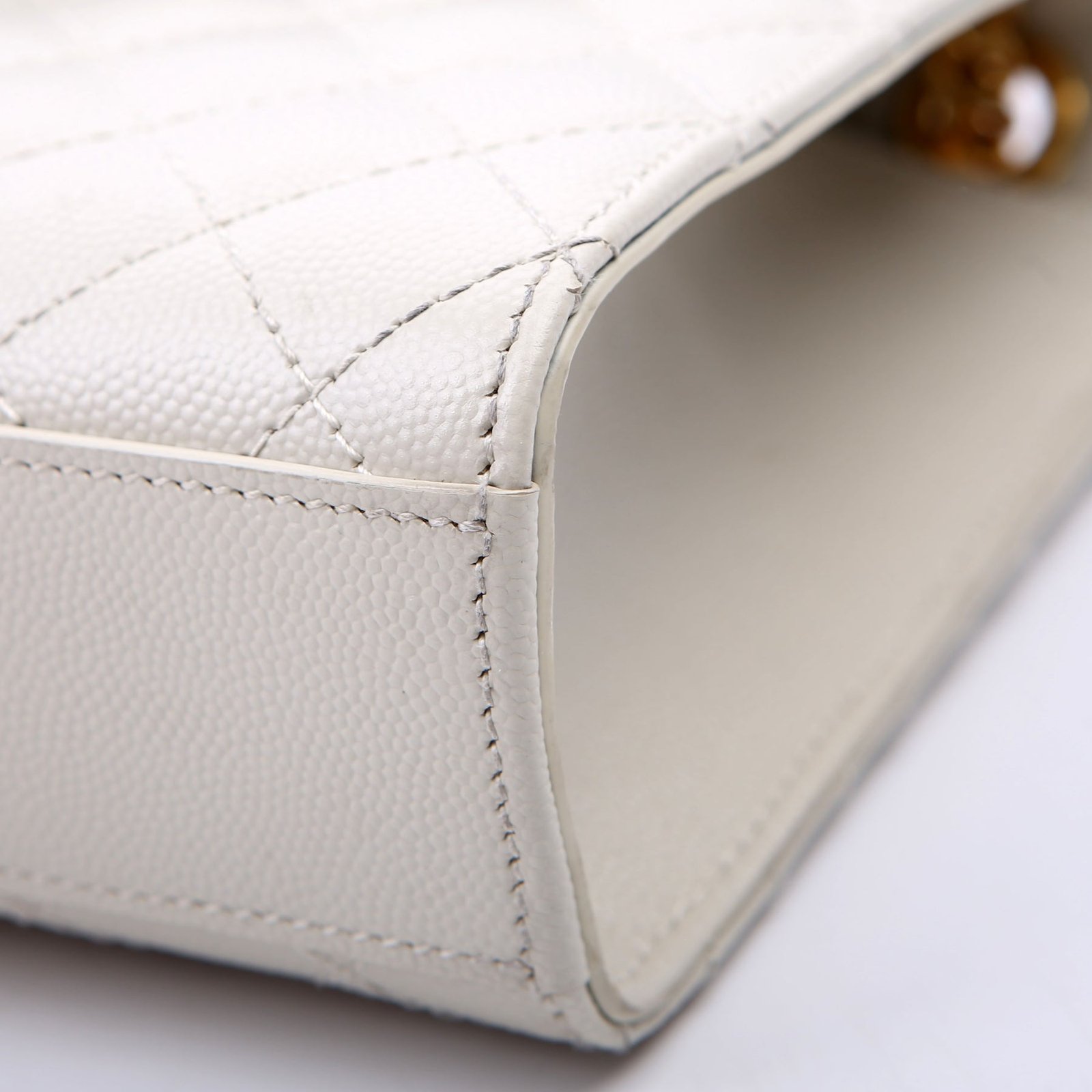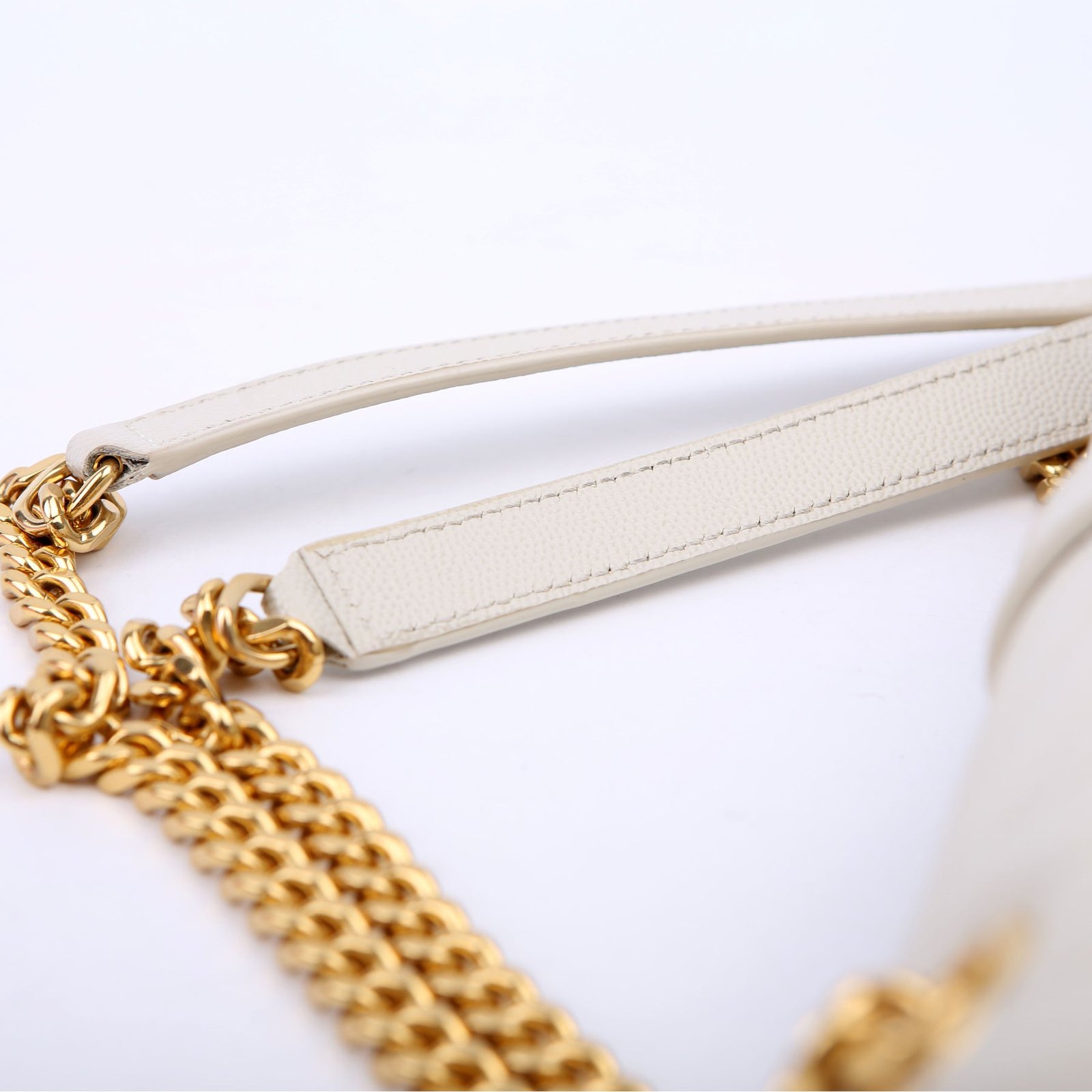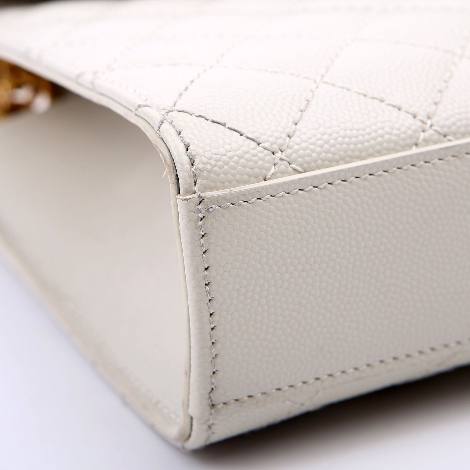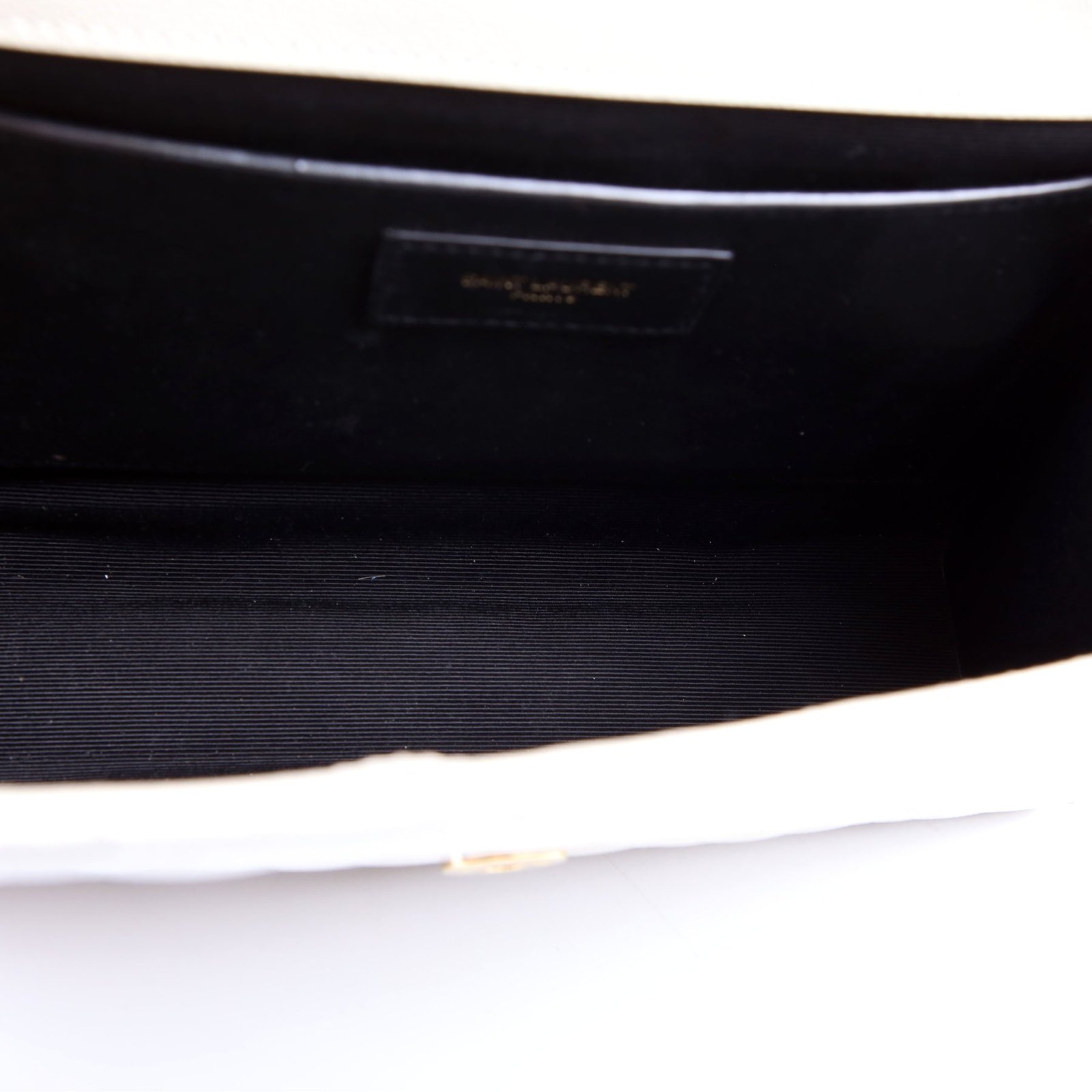 This pre-owned Saint Laurent Envelope Medium Triquilt is guaranteed 100% authentic. The exterior is in the classic Saint Laurent Grain De Poudre.