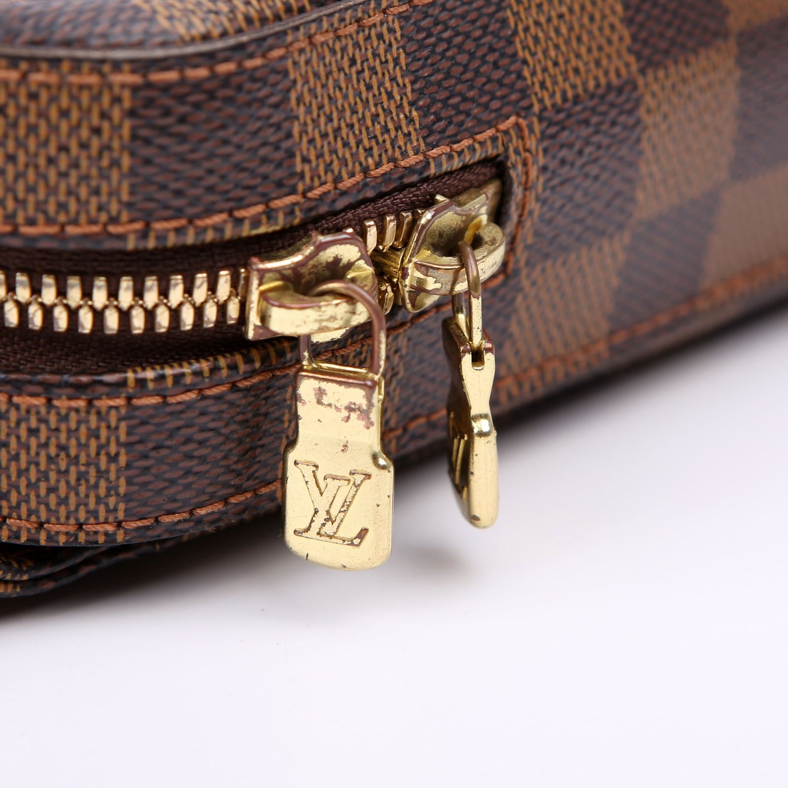 Hardware: The zipper operates properly and runs smoothly. The hardware shows minor wear and discoloration.