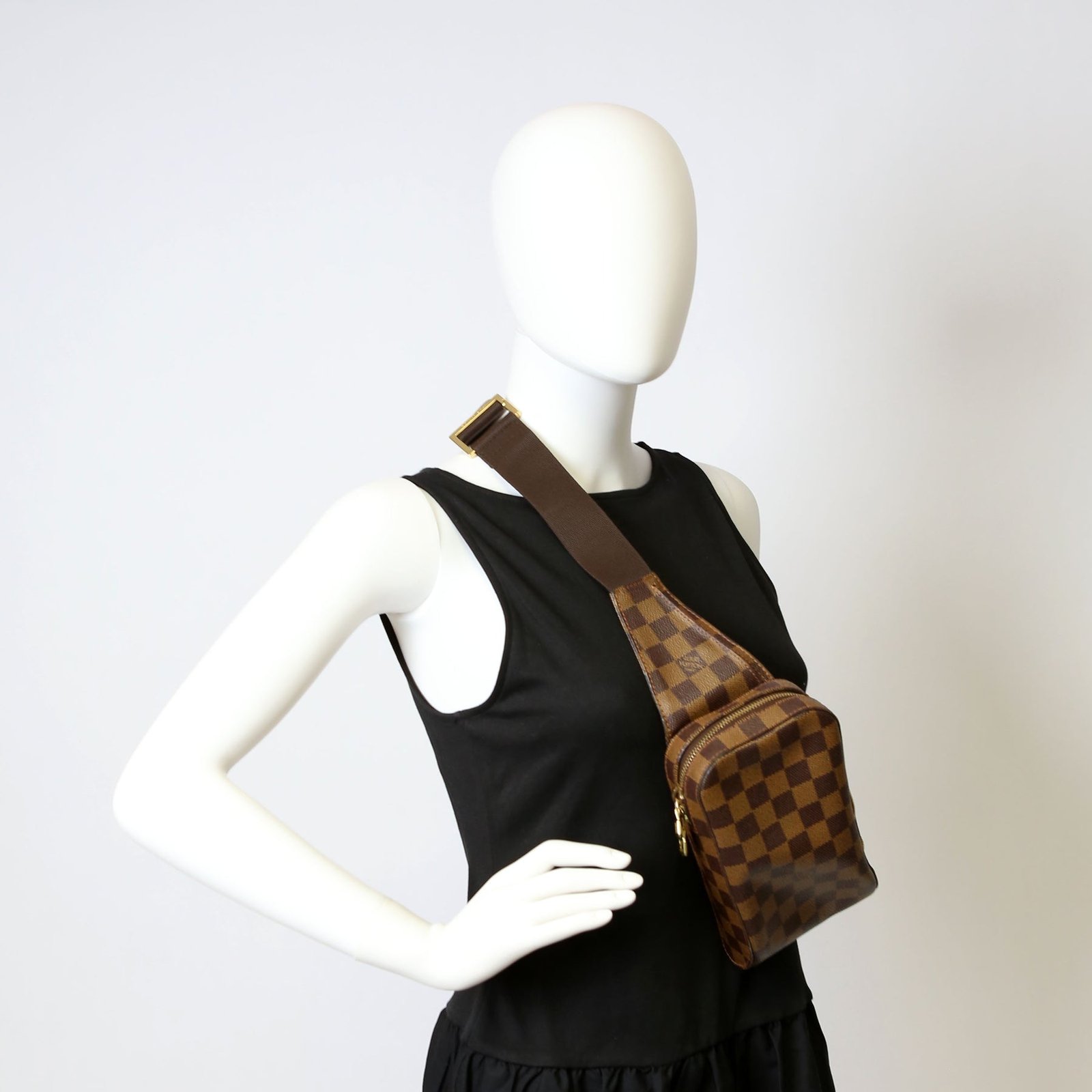 This pre-owned Louis Vuitton Geronimos is guaranteed 100% authentic. The exterior is in the classic Louis Vuitton Damier Ebene coated canvas.