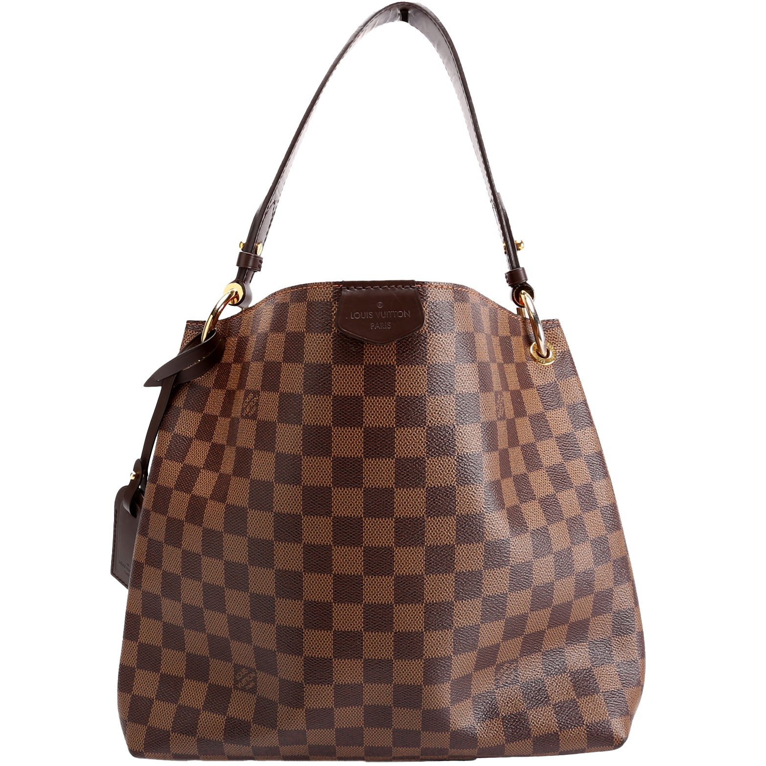This pre-owned Louis Vuitton Graceful PM is guaranteed 100% authentic. The exterior is in the classic Louis Vuitton Damier Ebene coated canvas.