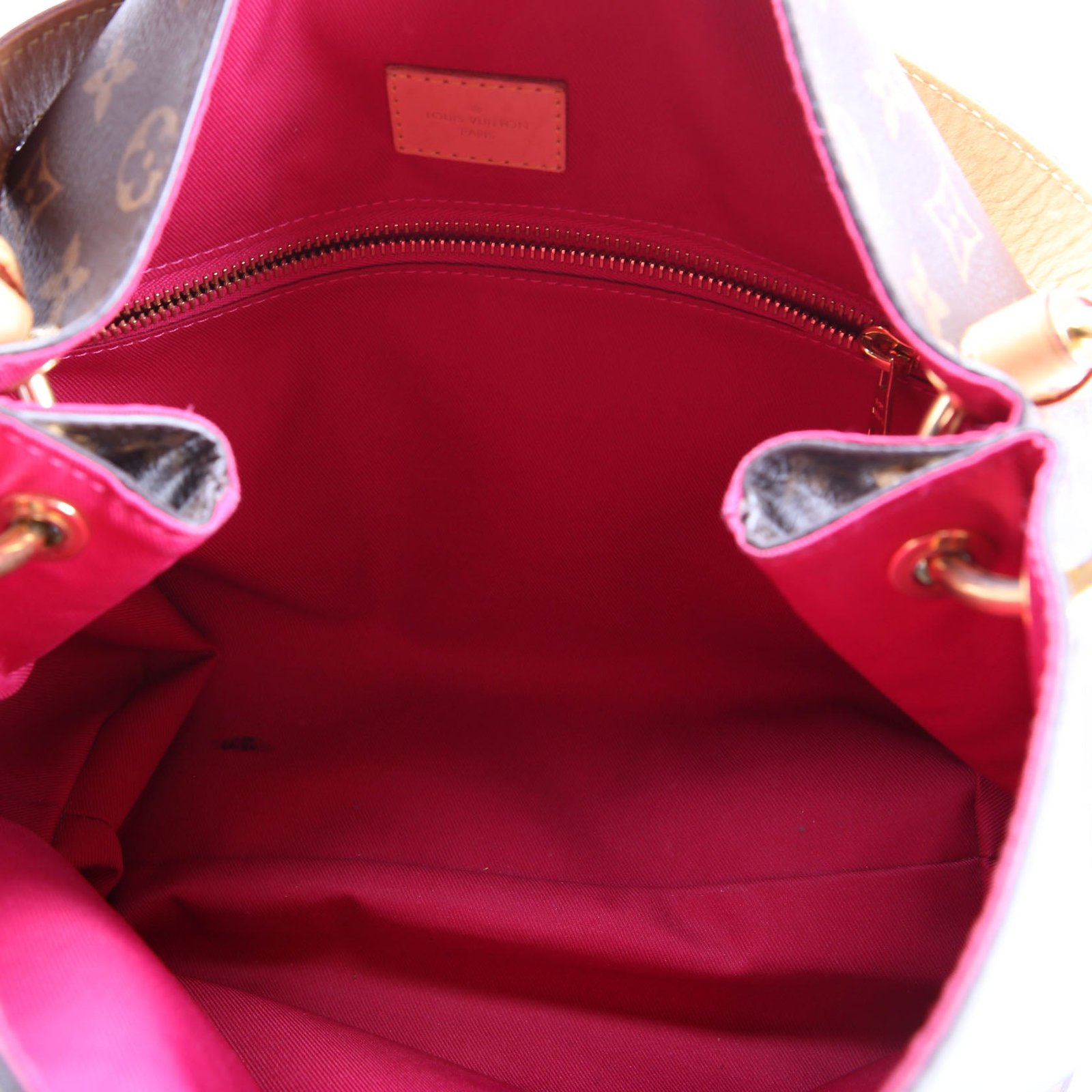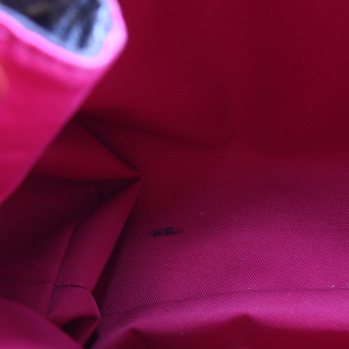 Interior: The interior shows staining at the base. It features one zip closure pocket.