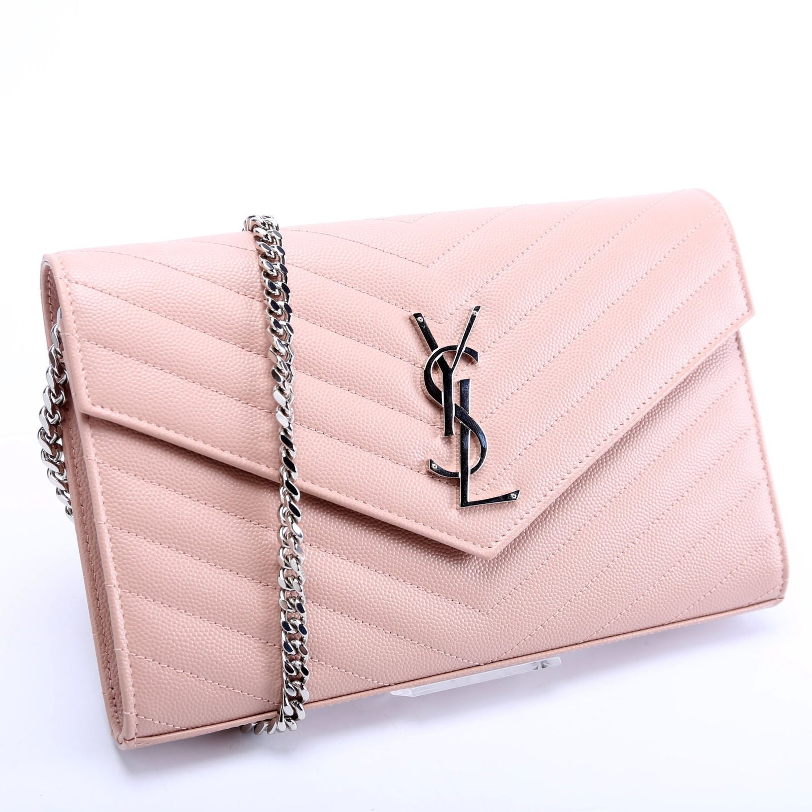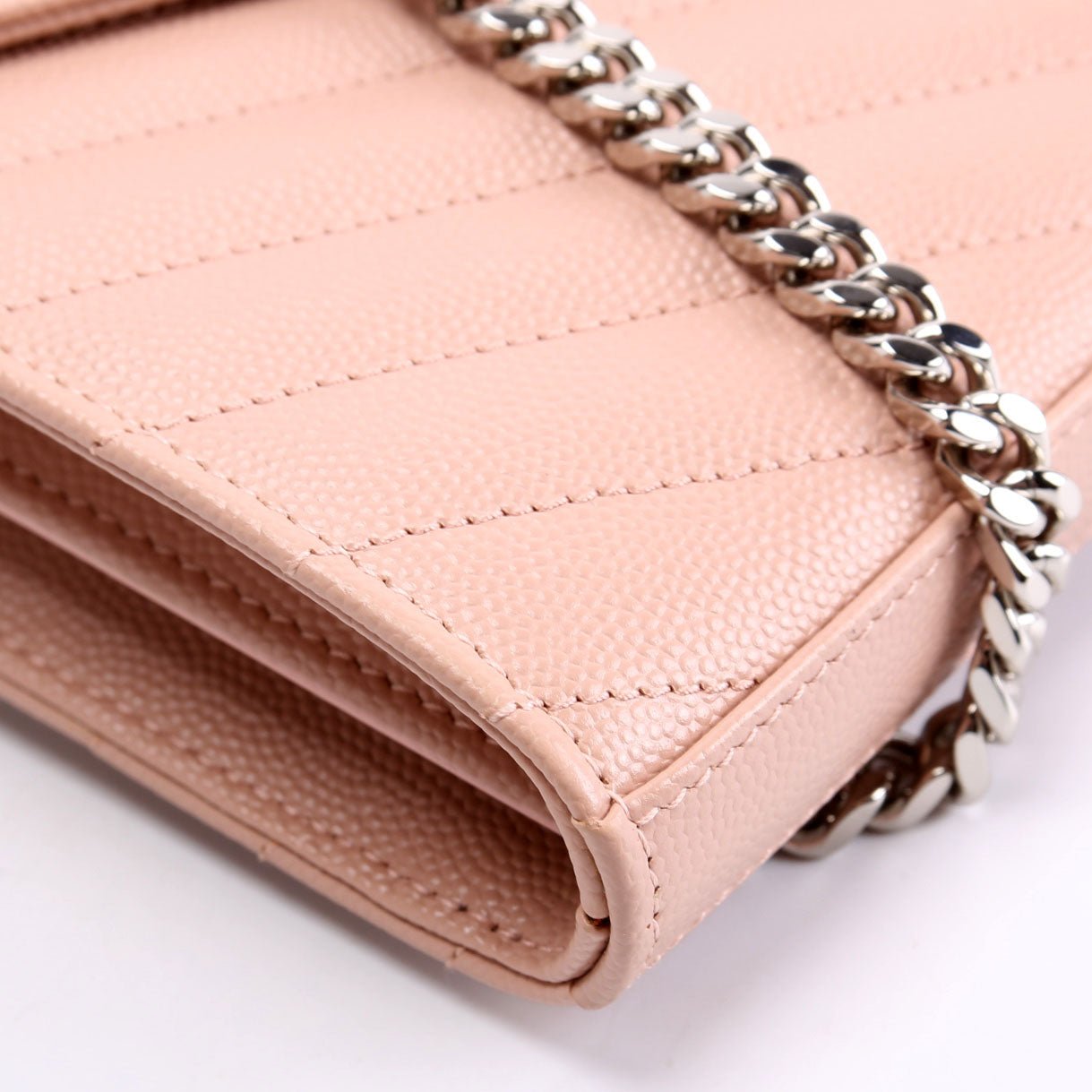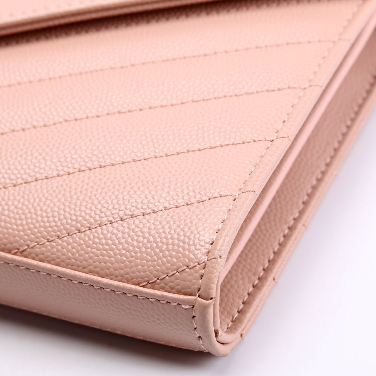 This pre-owned Saint Laurent Grain De Chain Wallet is guaranteed 100% authentic. The exterior is in the classic Saint Laurent grained calfskin leather.