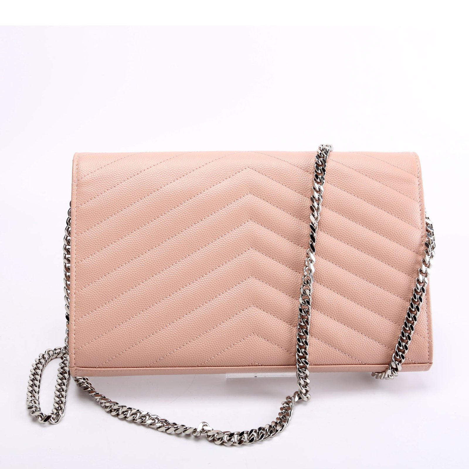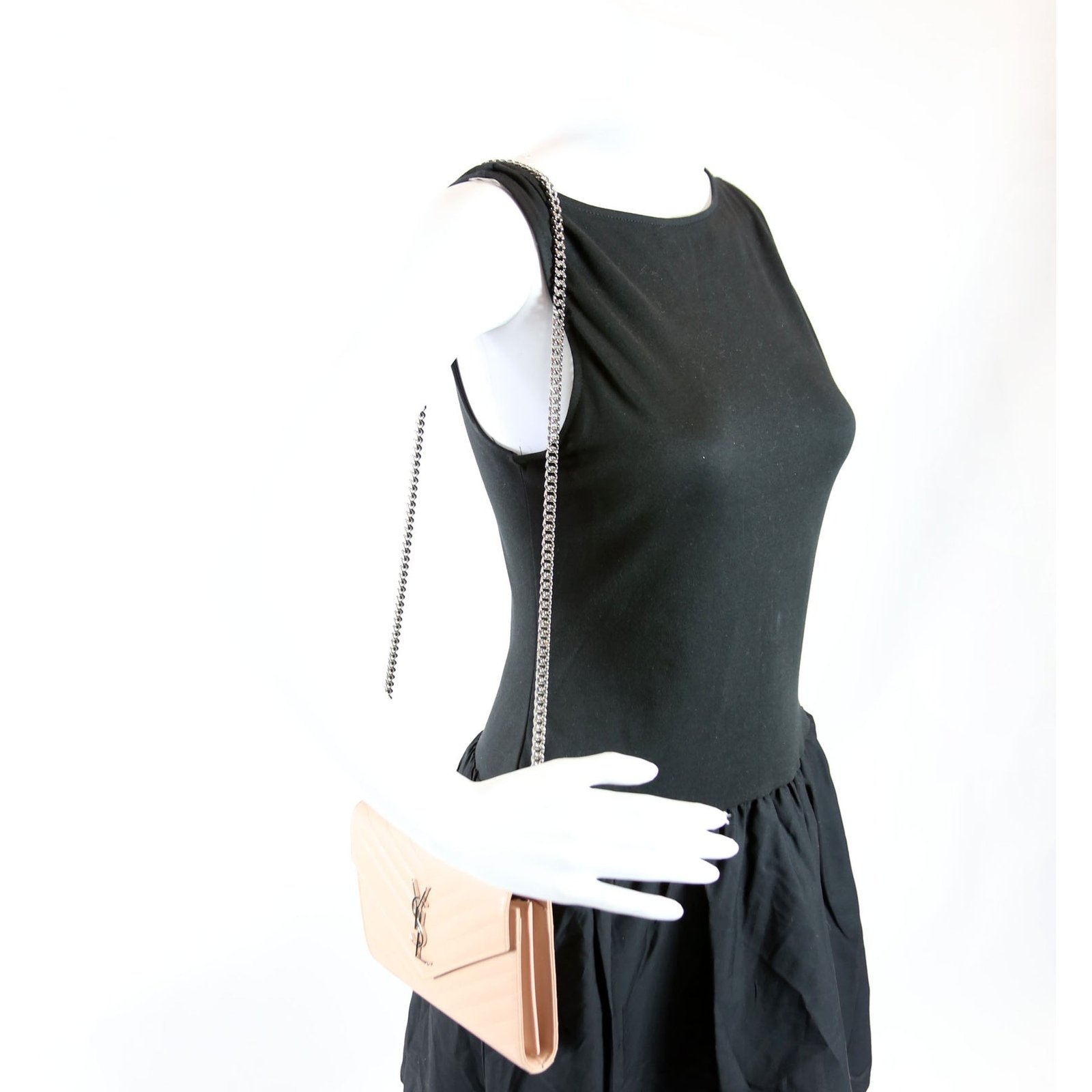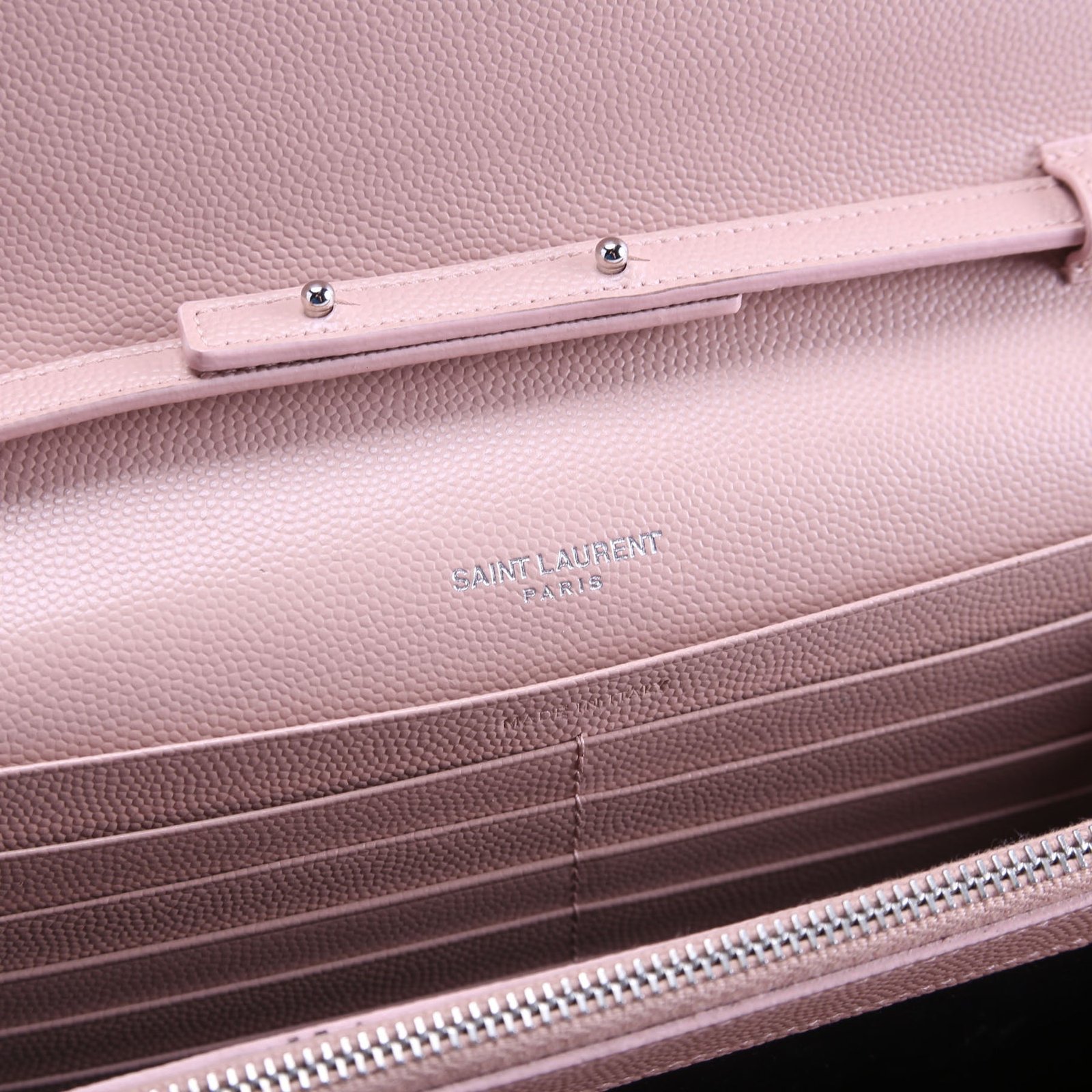 This pre-owned Saint Laurent Grain De Chain Wallet is guaranteed 100% authentic. The exterior is in the classic Saint Laurent grained calfskin leather.