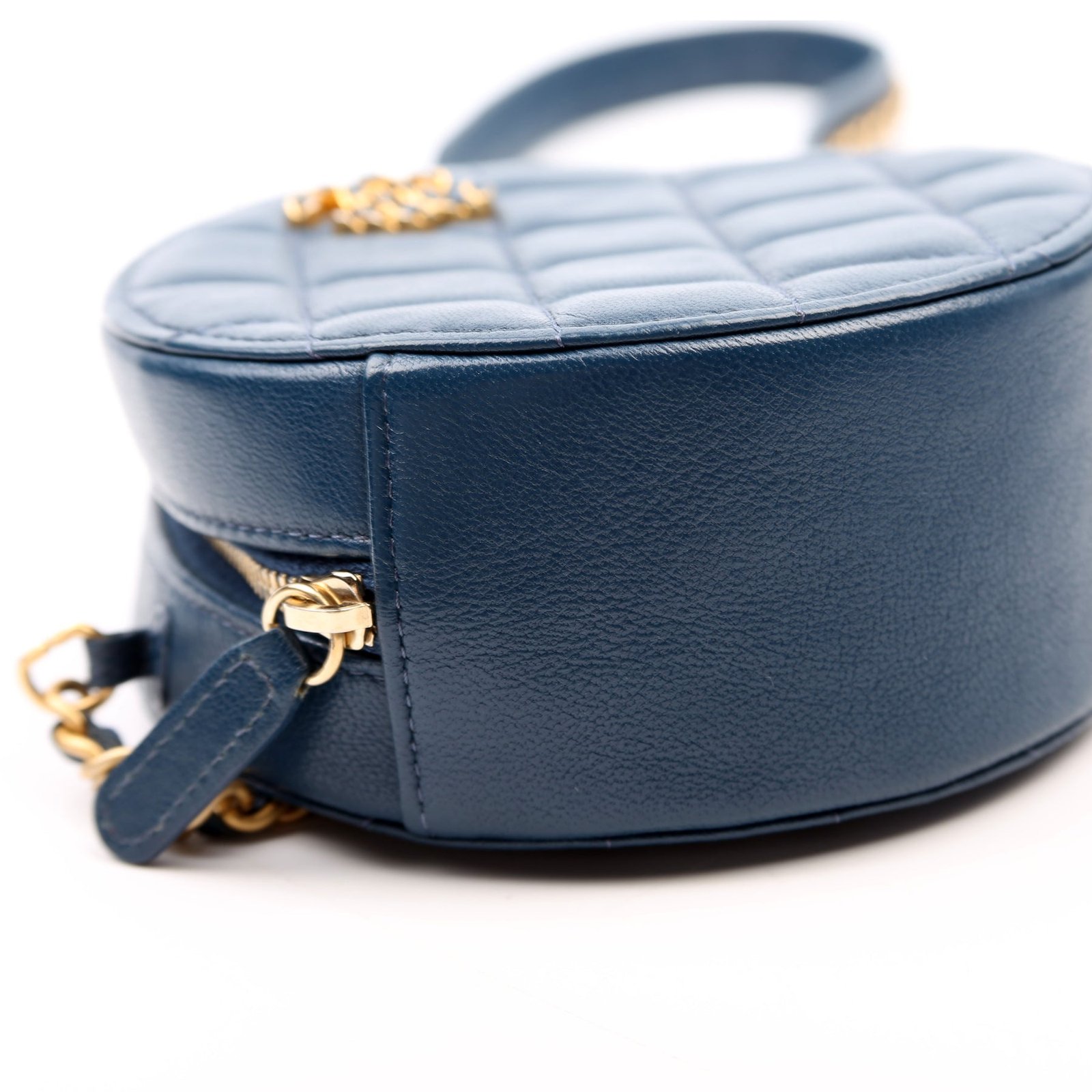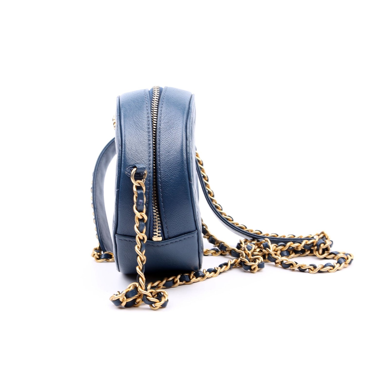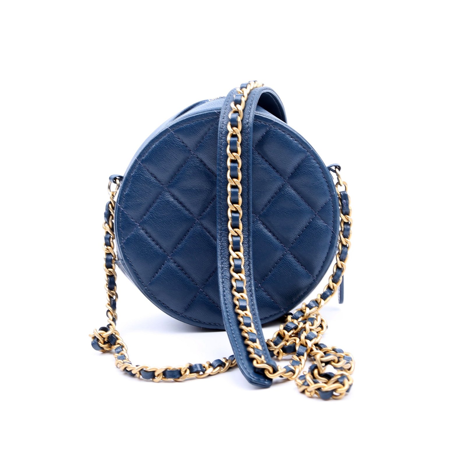This pre-owned Chanel Infinity Round Clutch With Chain Quilted Lambskin is guaranteed 100% authentic.