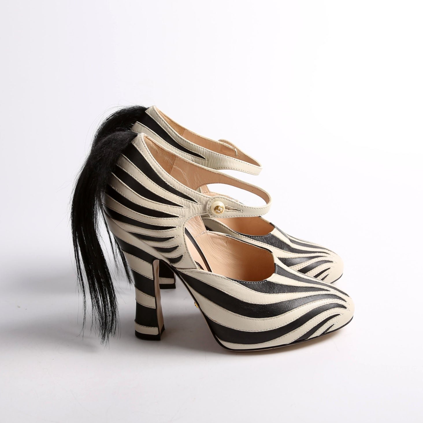 These pre-owned Gucci Mary-Jane Zebra Pumps are guaranteed 100% authentic.