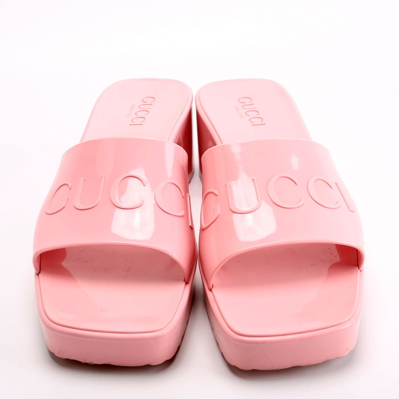 These pre-owned Gucci Logo Rubber Slides are guaranteed 100% authentic.
