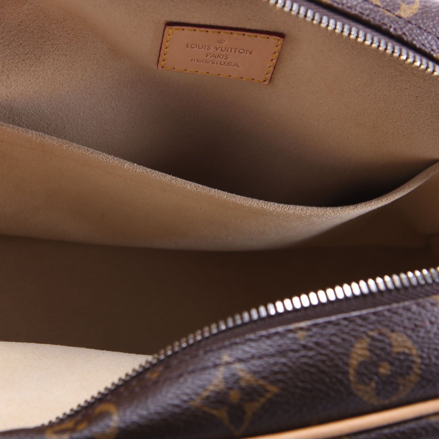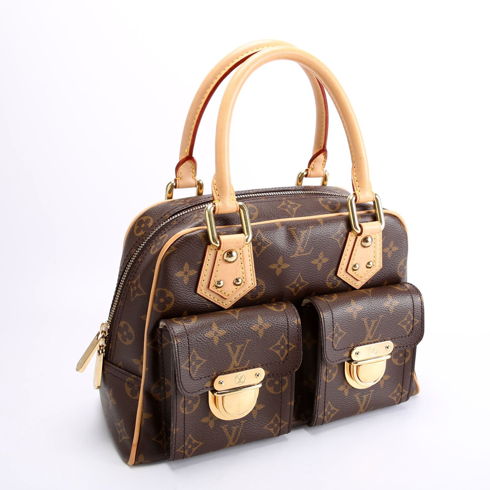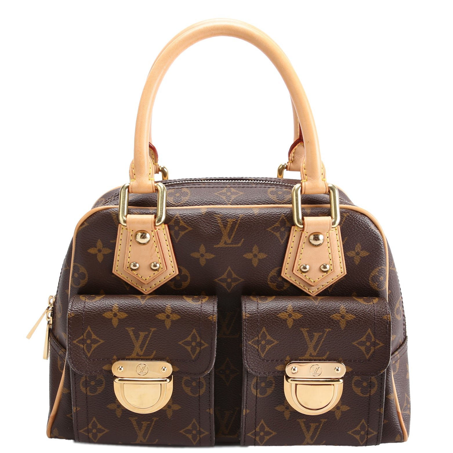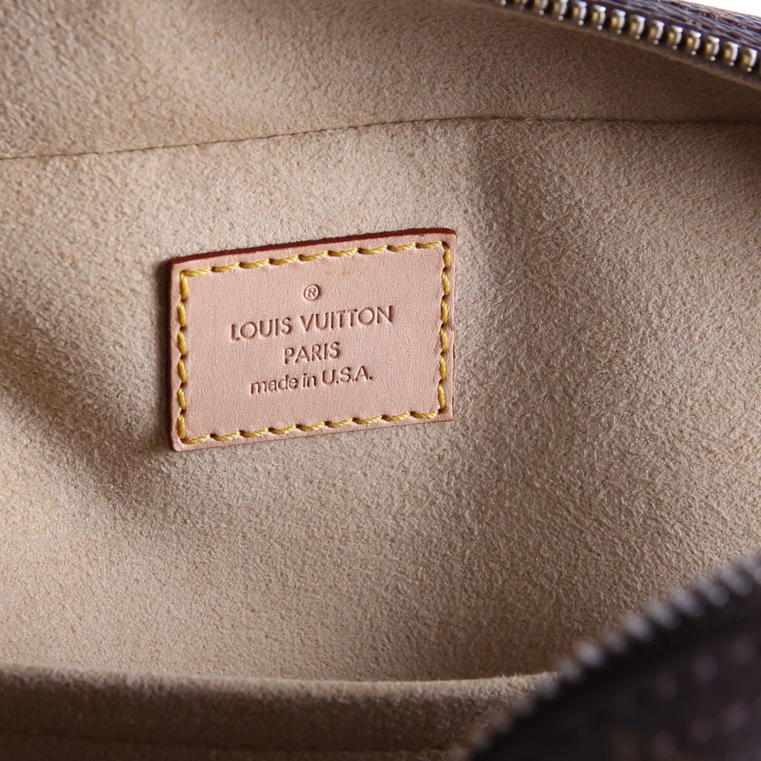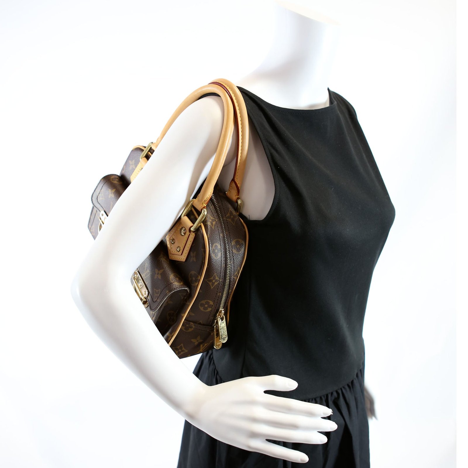 This pre-owned Louis Vuitton Manhattan PM is guaranteed 100% authentic. The exterior is in the classic Louis Vuitton Monogram coated canvas.