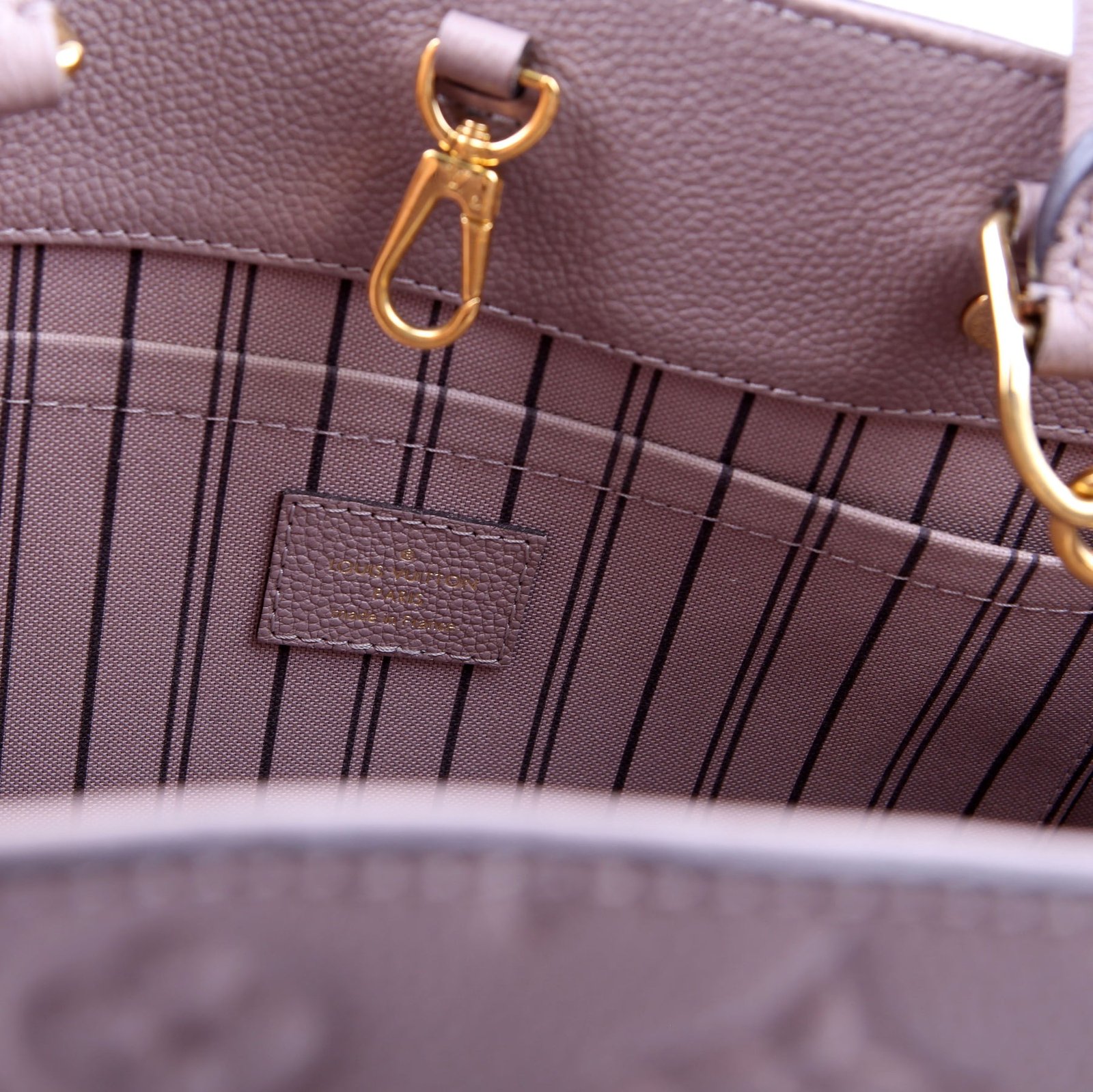 This pre-owned Louis Vuitton Montaigne MM is guaranteed 100% authentic. The exterior is in the classic Louis Vuitton Empreinte leather.