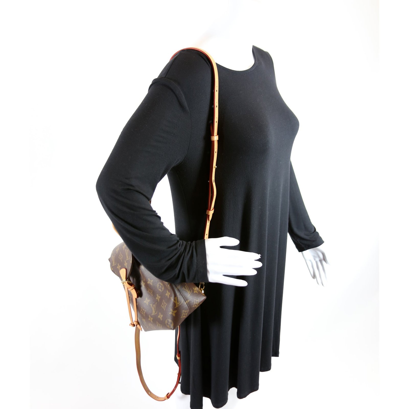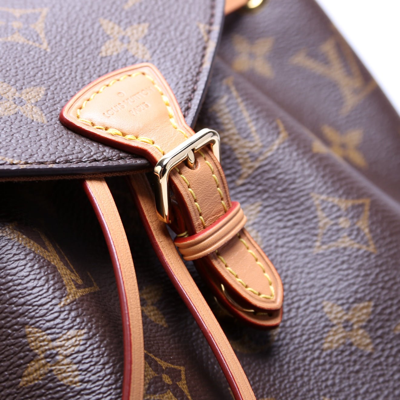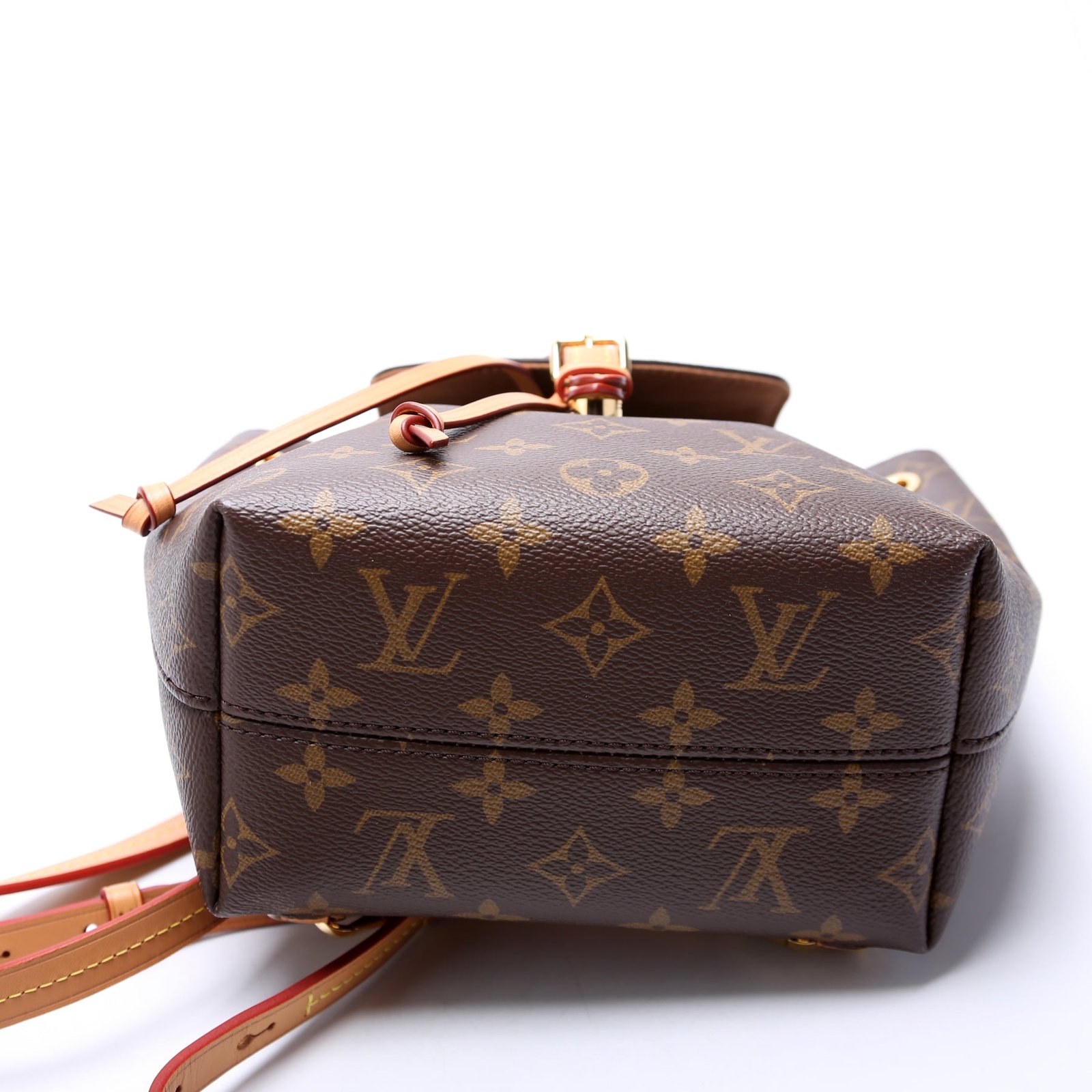 This pre-owned Louis Vuitton Montsouris BB is guaranteed 100% authentic. The exterior is in the classic Louis Vuitton Monogram coated canvas.