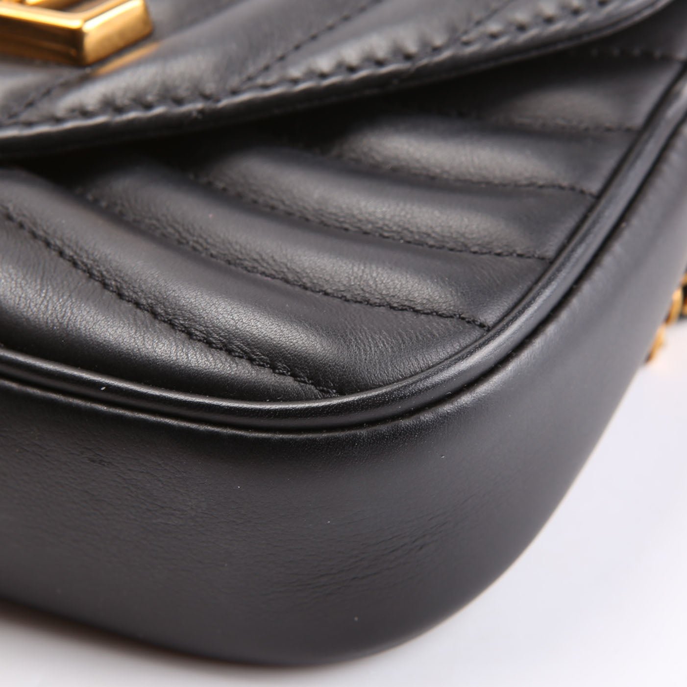Hardware: The magnetic closure operates properly. The hardware shows scratches and discoloration.