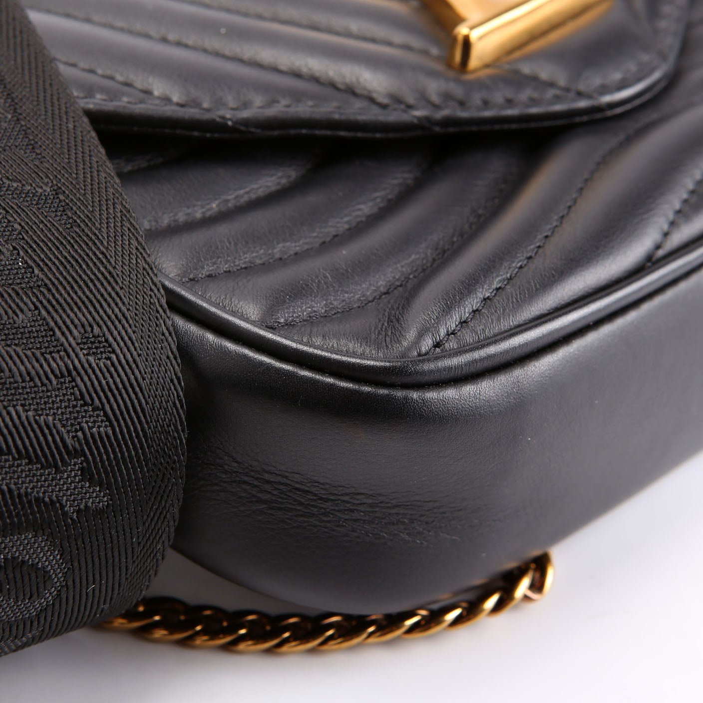 Strap: The strap is free from wear. The hardware shows discoloration.