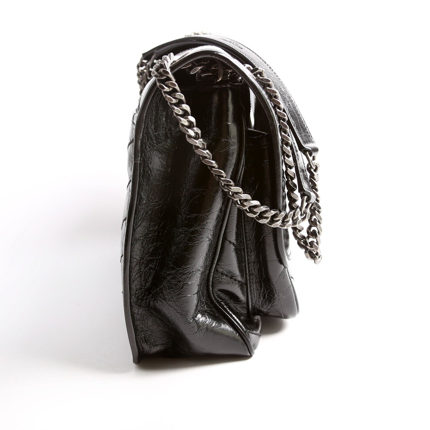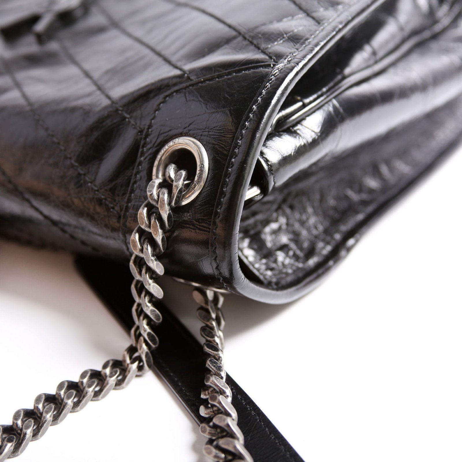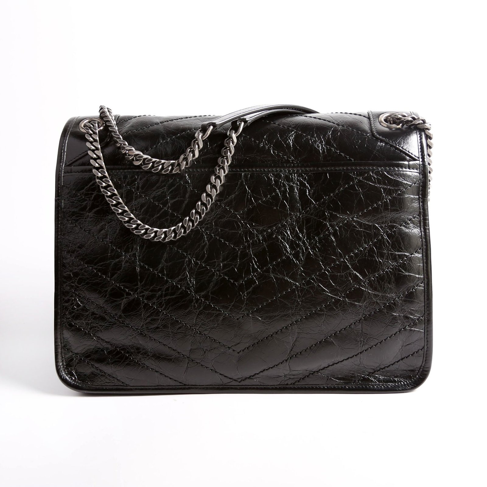 This pre-owned Saint Laurent Niki Large is guaranteed 100% authentic. The exterior is in the classic Saint Laurent Crinkled leather.