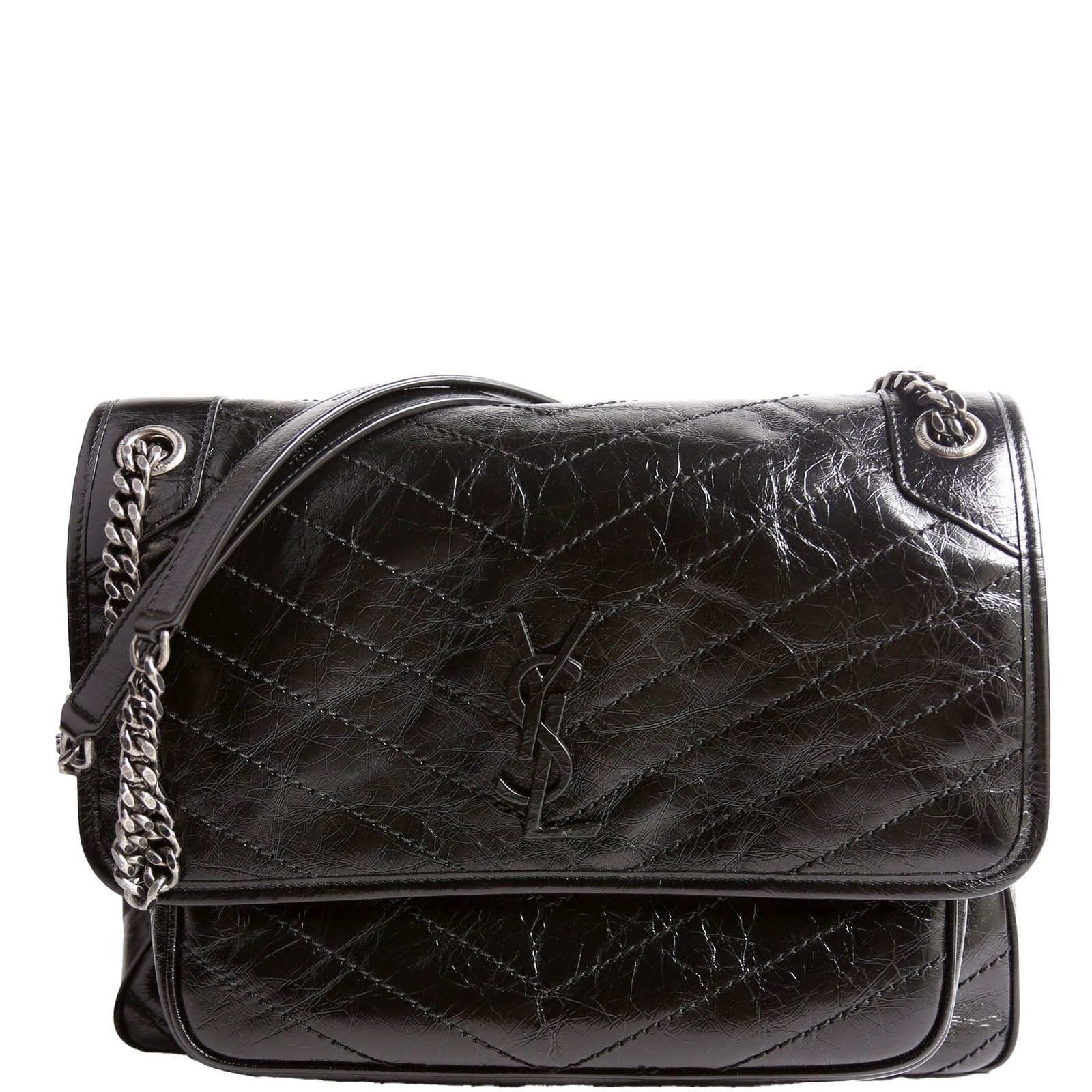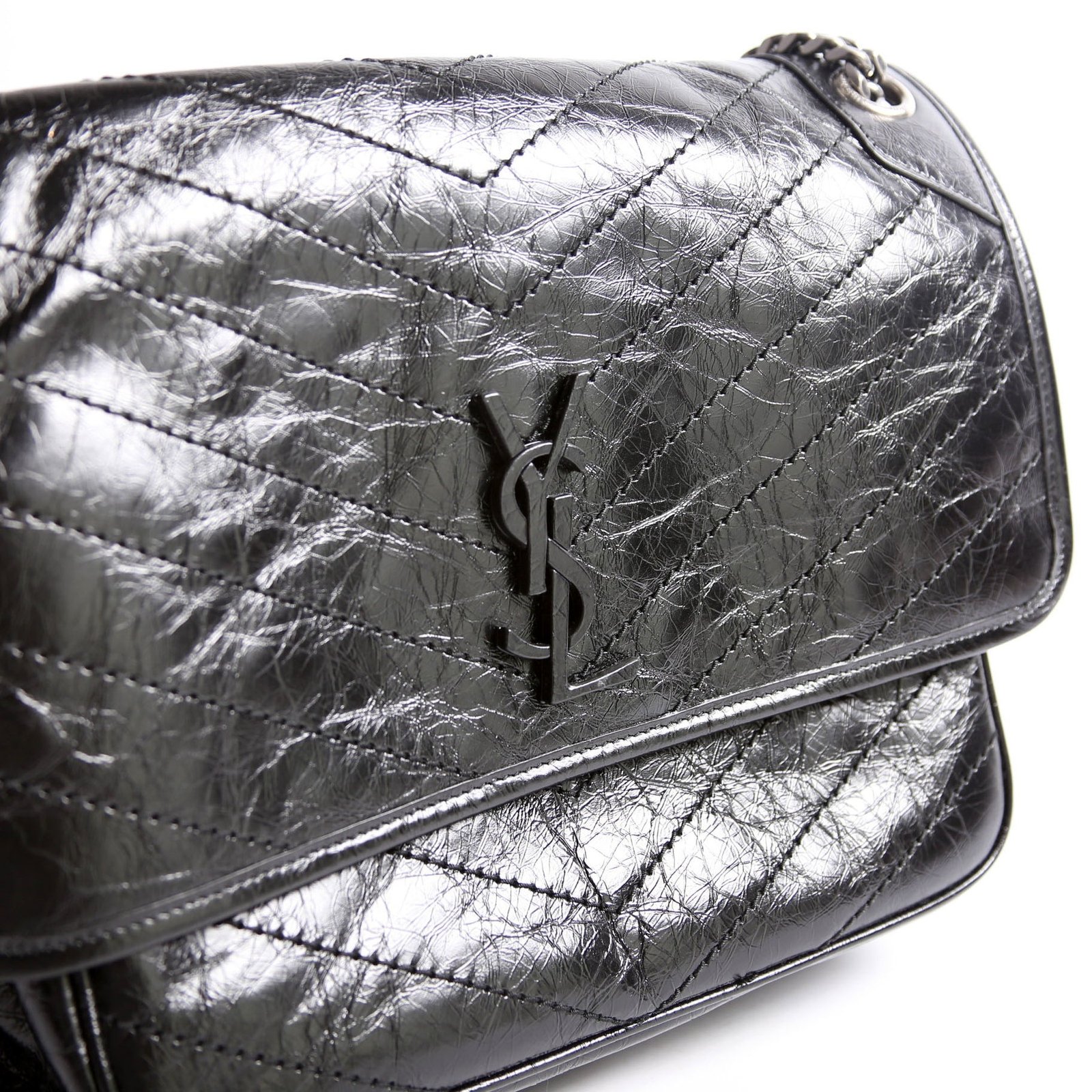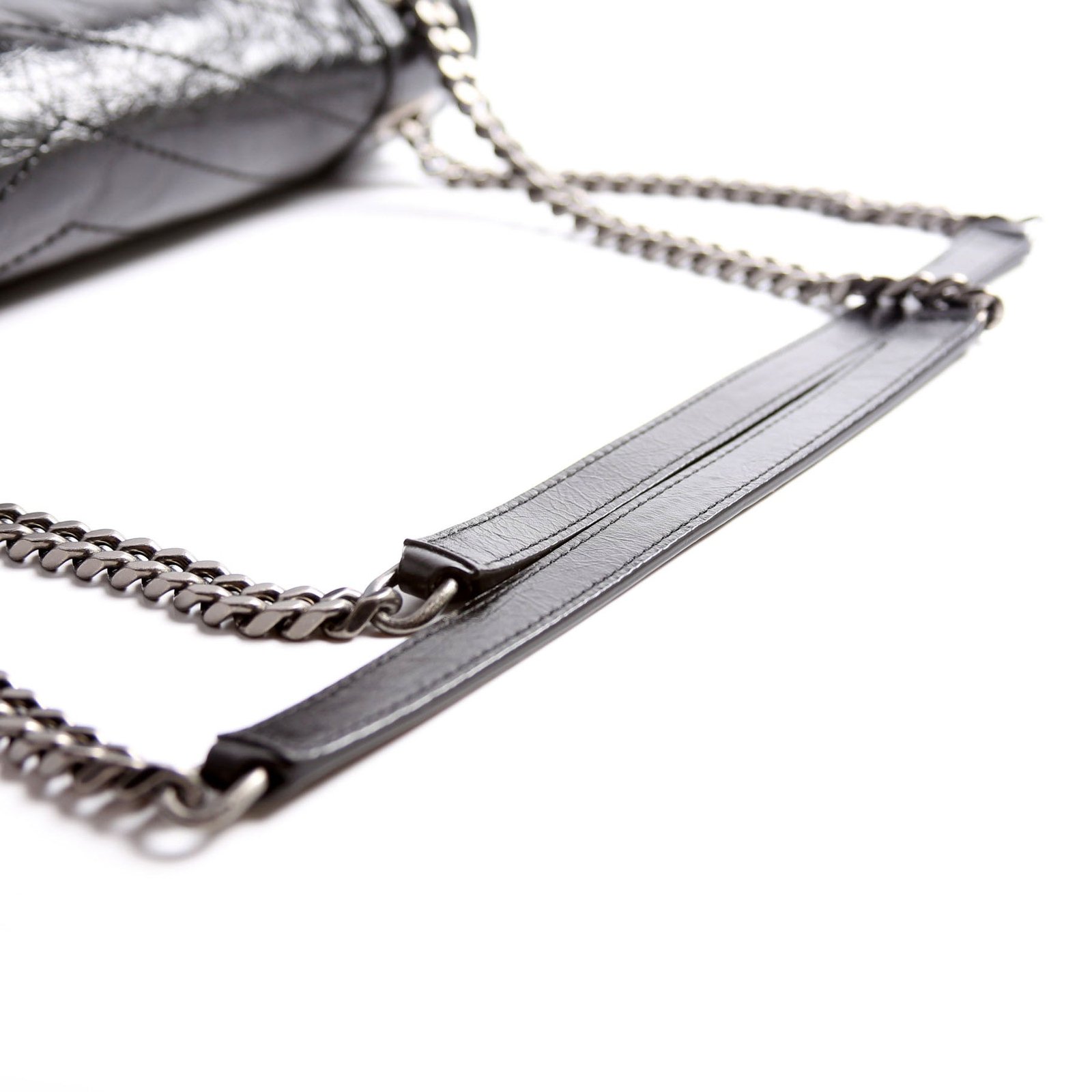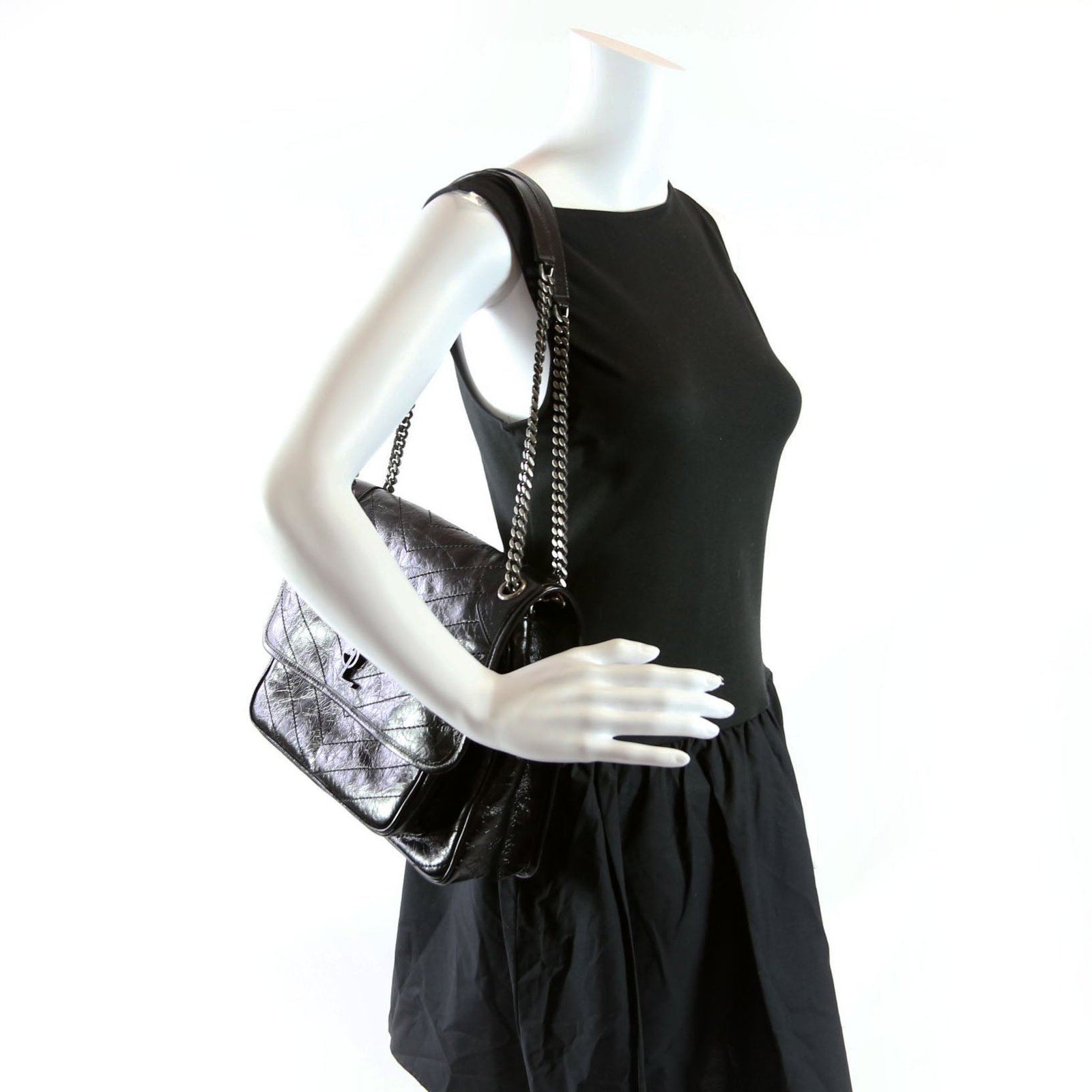 This pre-owned Saint Laurent Niki Large is guaranteed 100% authentic. The exterior is in the classic Saint Laurent Crinkled leather.