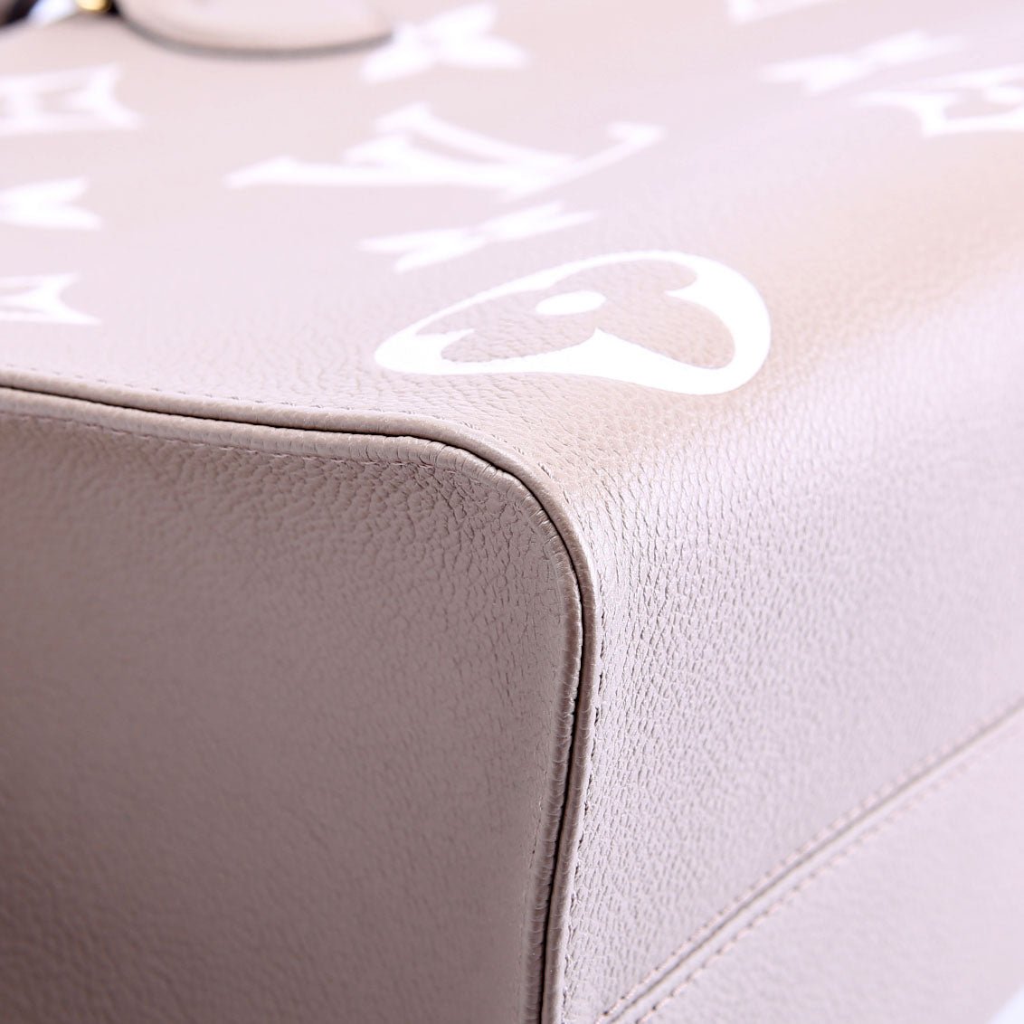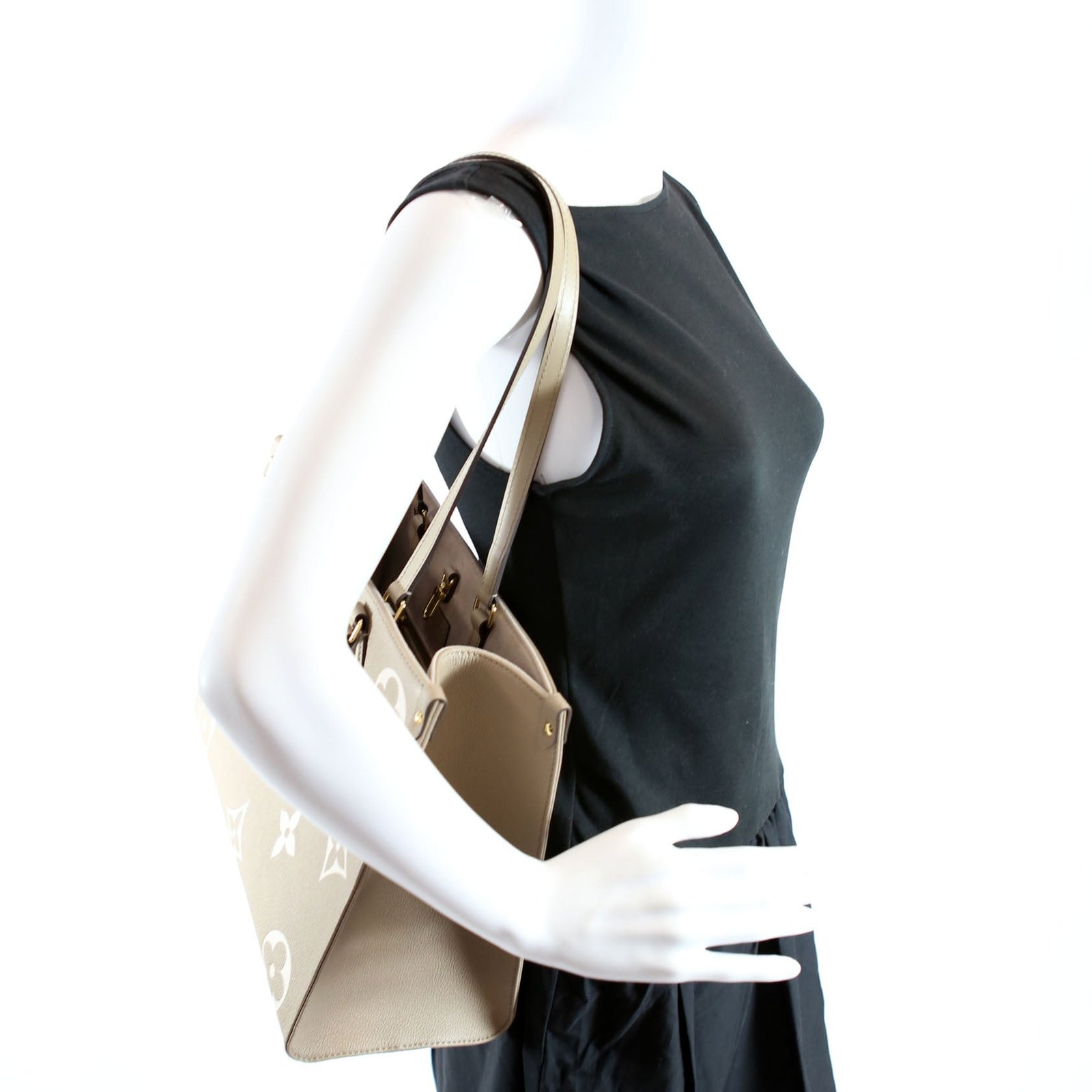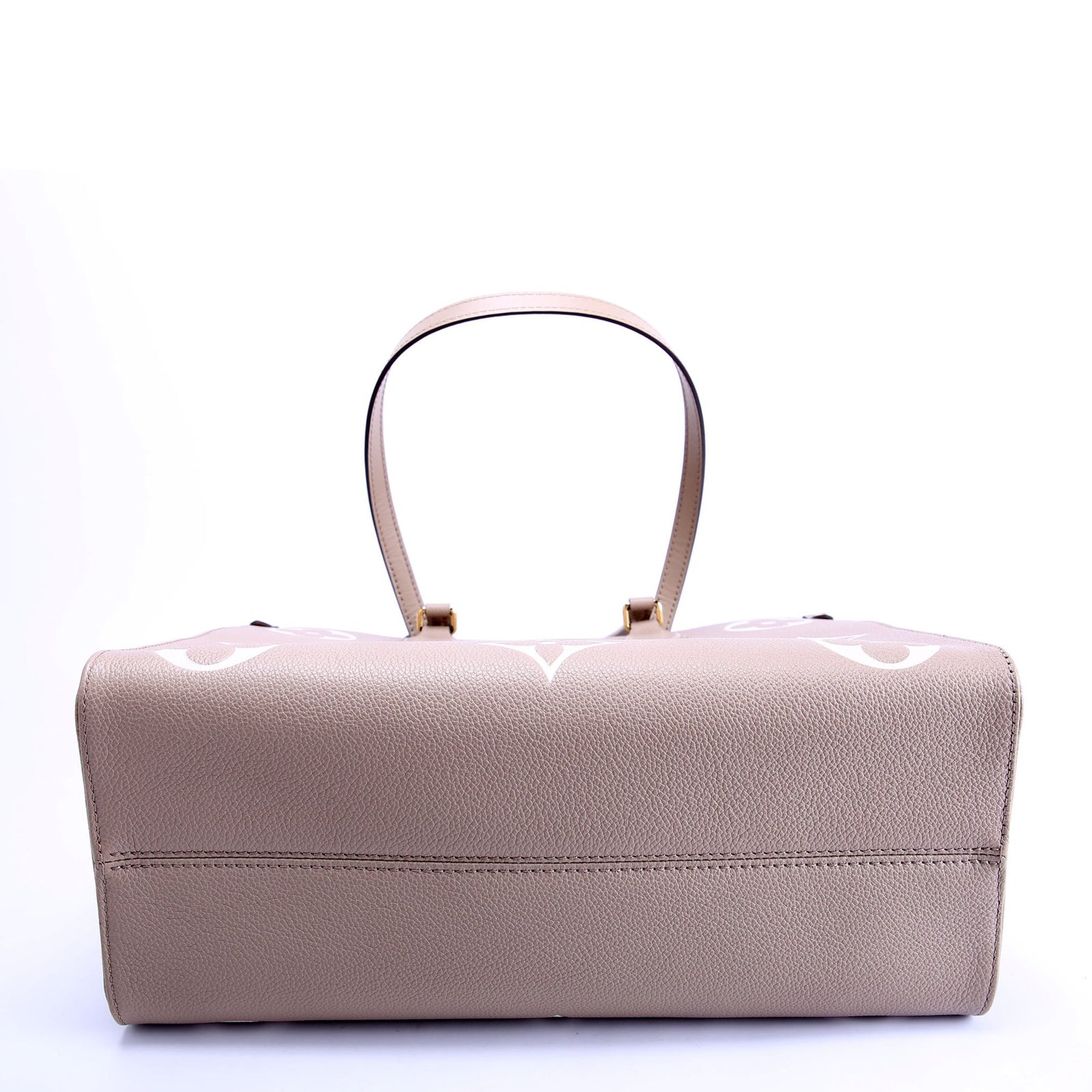This pre-owned Louis Vuitton ONTHEGO MM is guaranteed 100% authentic. The exterior is in the classic Louis Vuitton Bicolor Empreinte leather.