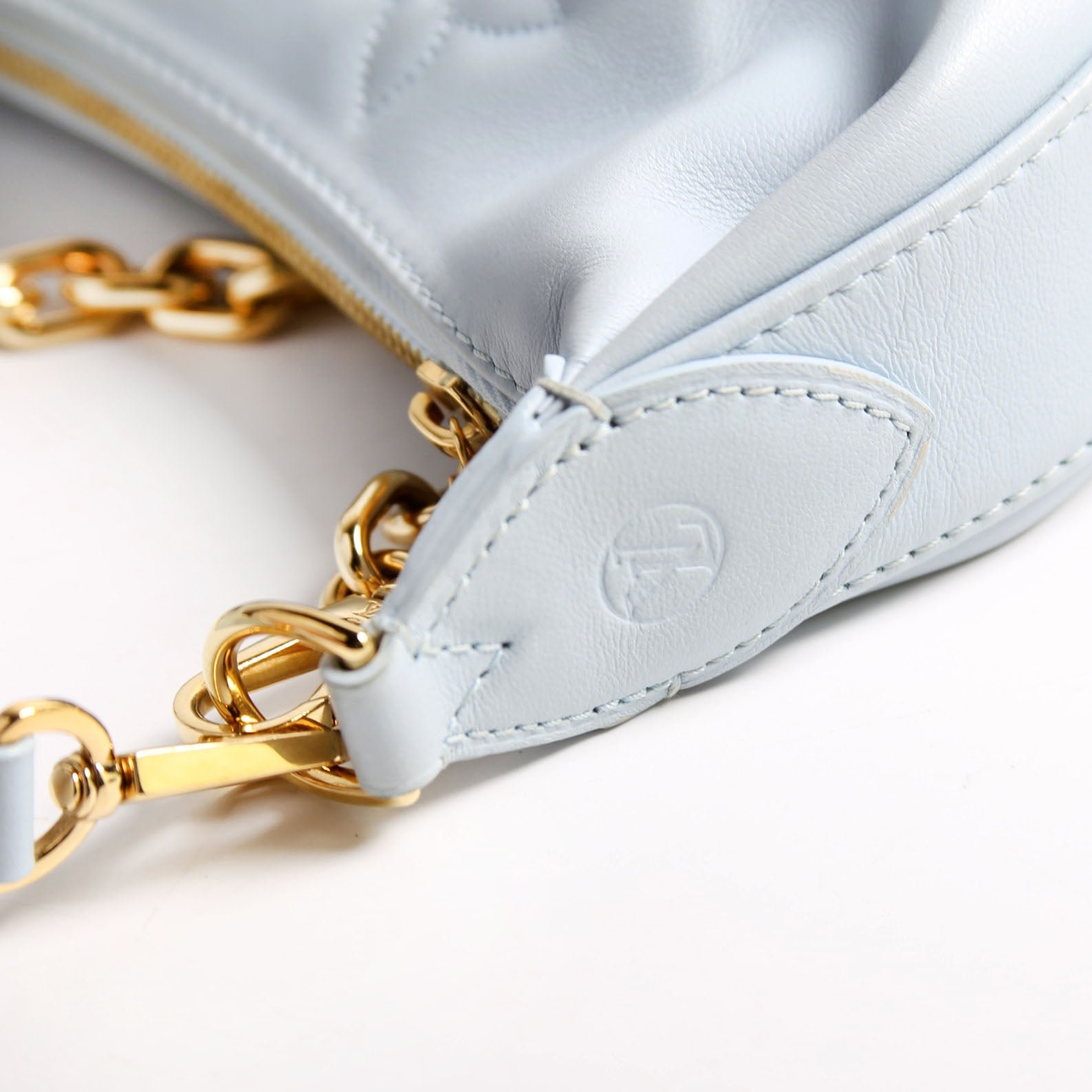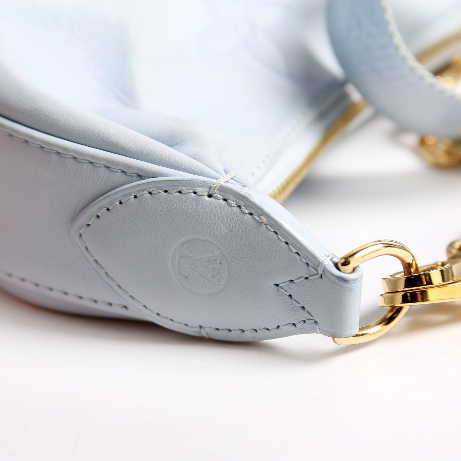 Hardware: The zipper operates properly and runs smoothly. The hardware shows scratches.