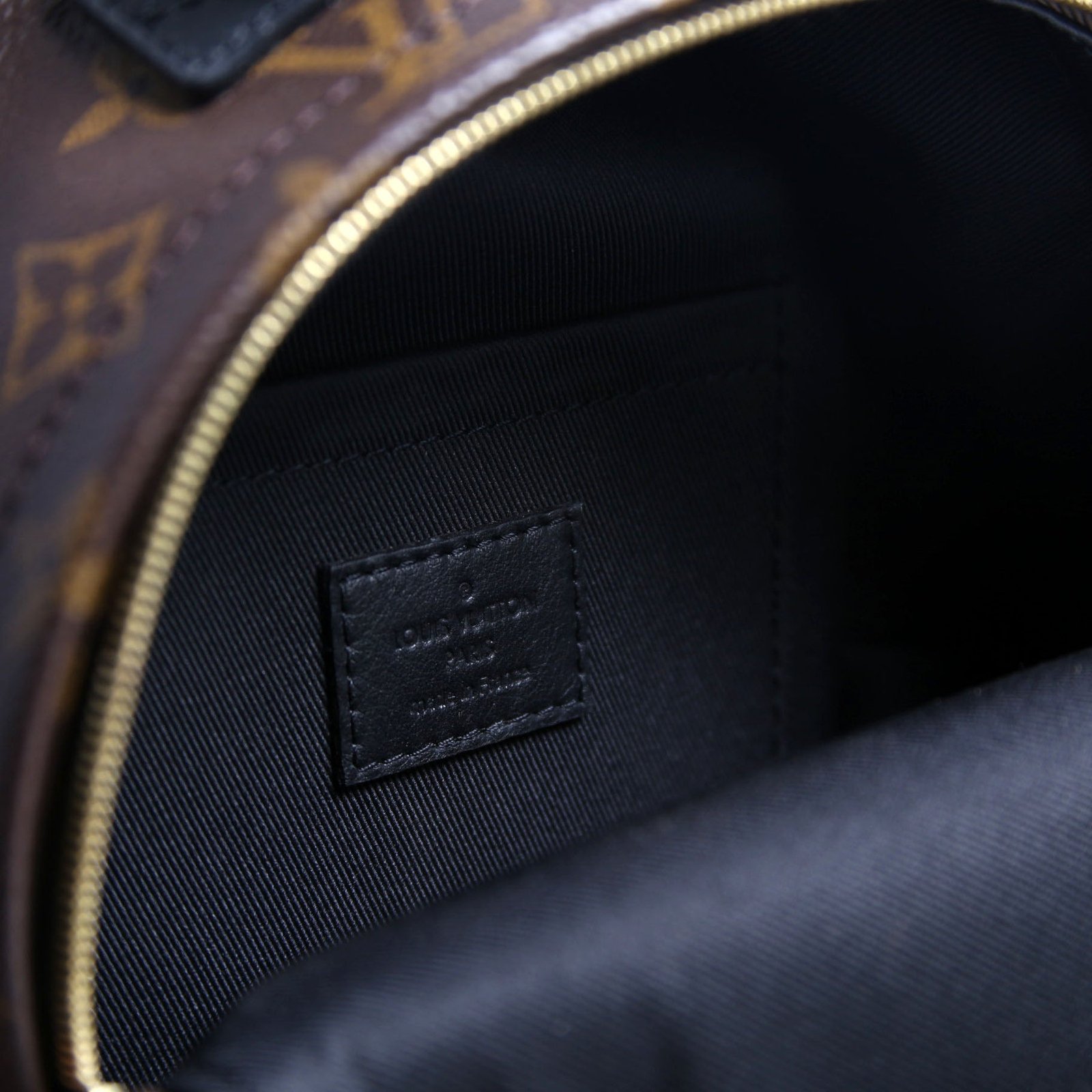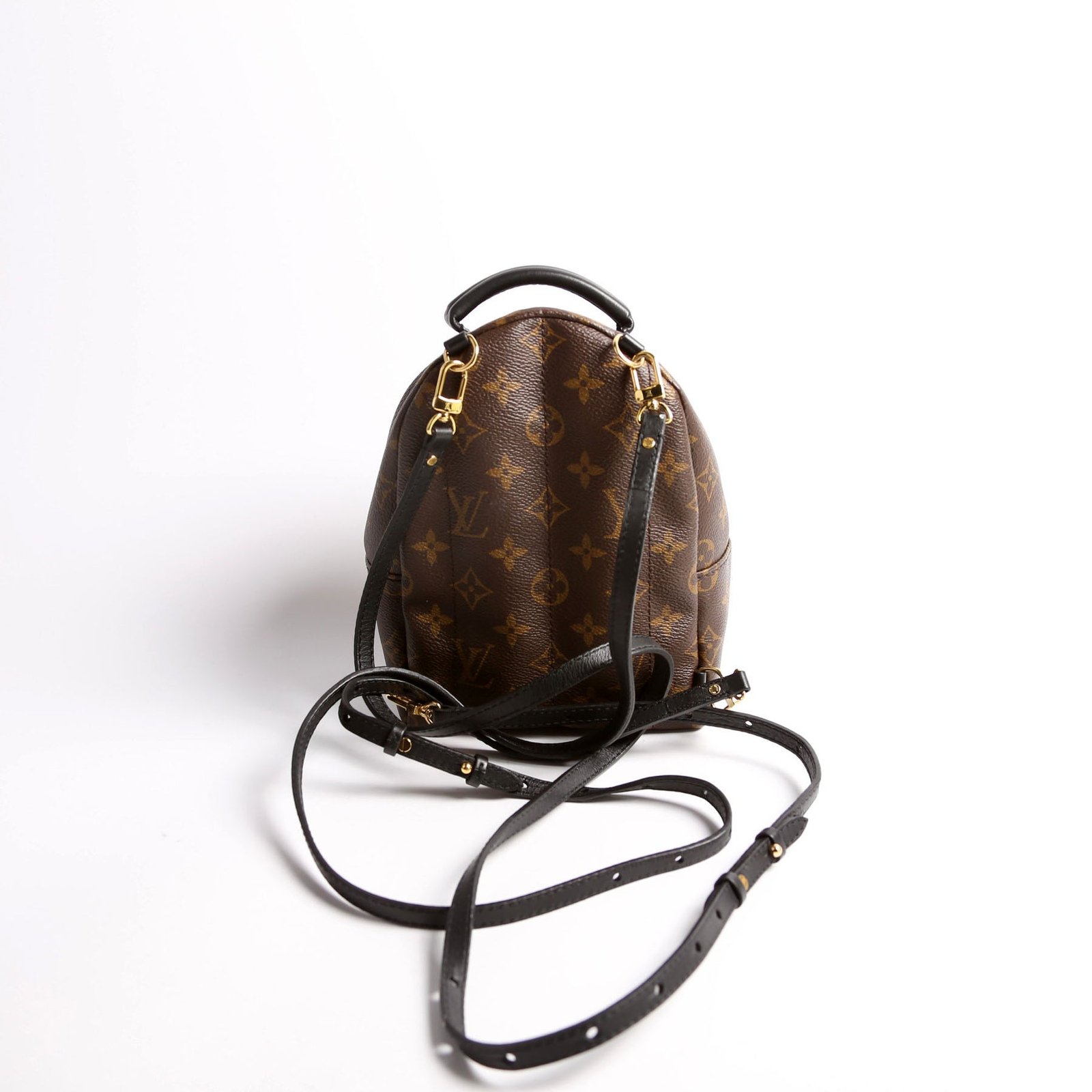 This pre-owned Louis Vuitton Palm Springs Mini Backpack is guaranteed 100% authentic. The exterior is in the classic Louis Vuitton Monogram coated canvas.