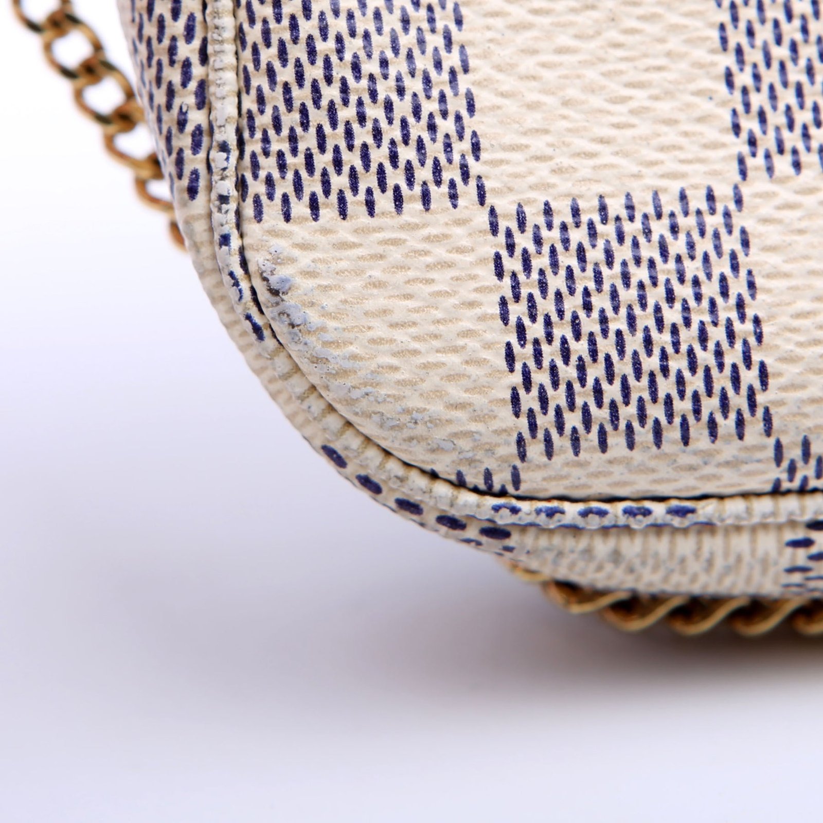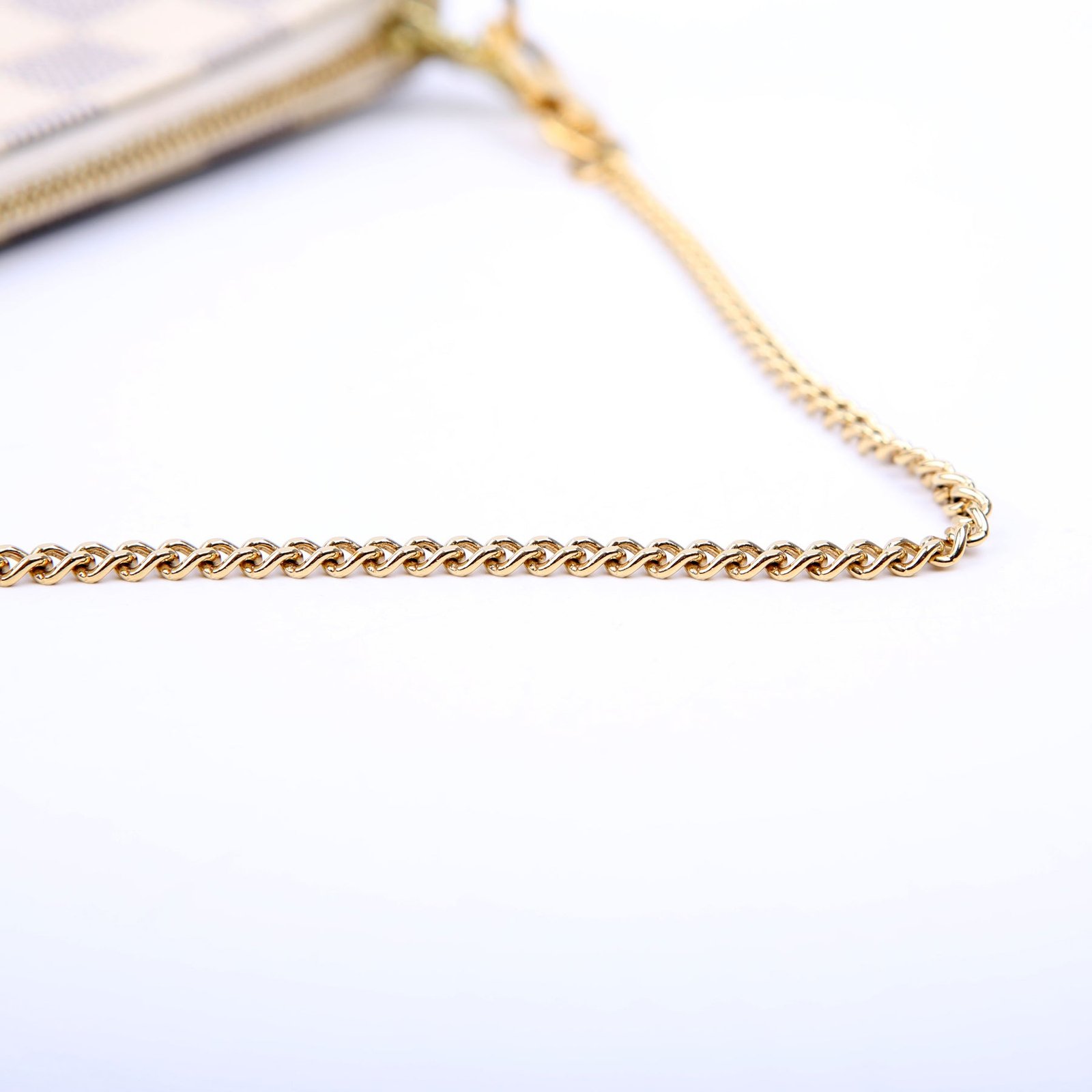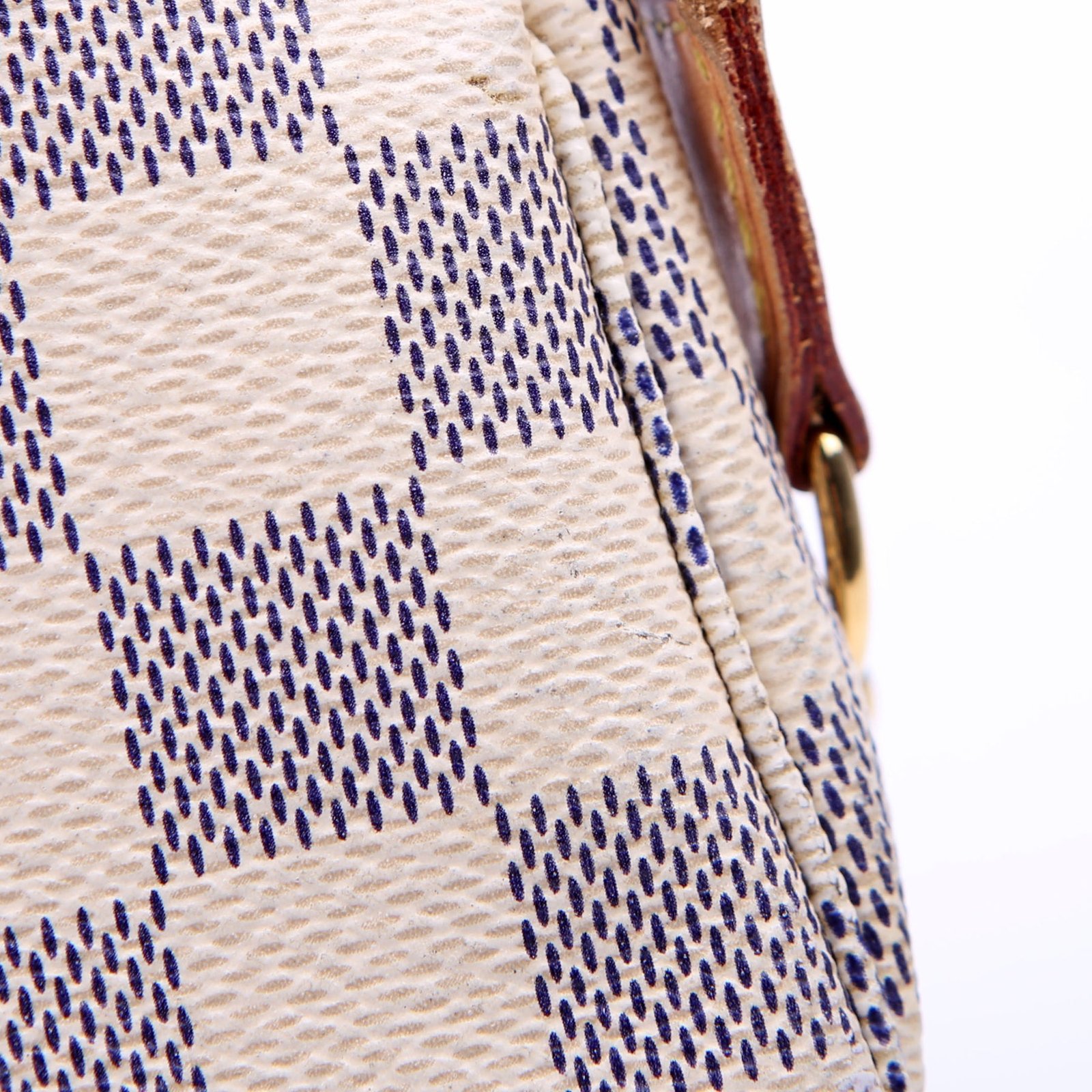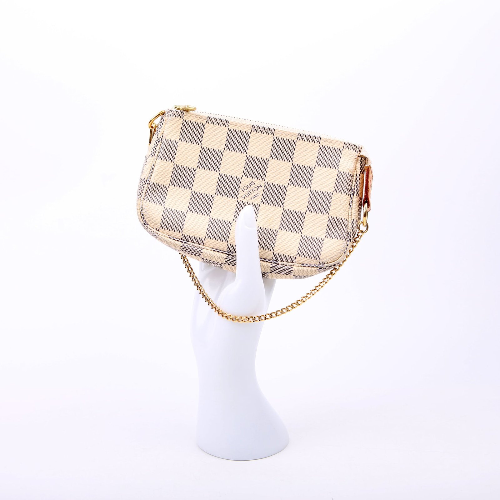 This pre-owned Louis Vuitton Pochette Accessories Mini is guaranteed 100% authentic. The exterior is in the classic Louis Vuitton Damier Azur coated canvas.