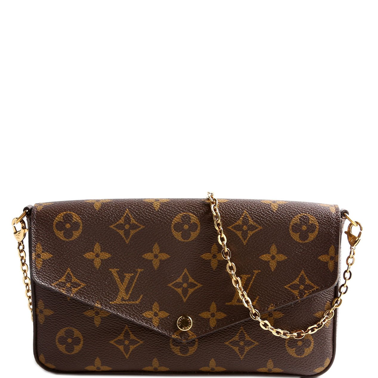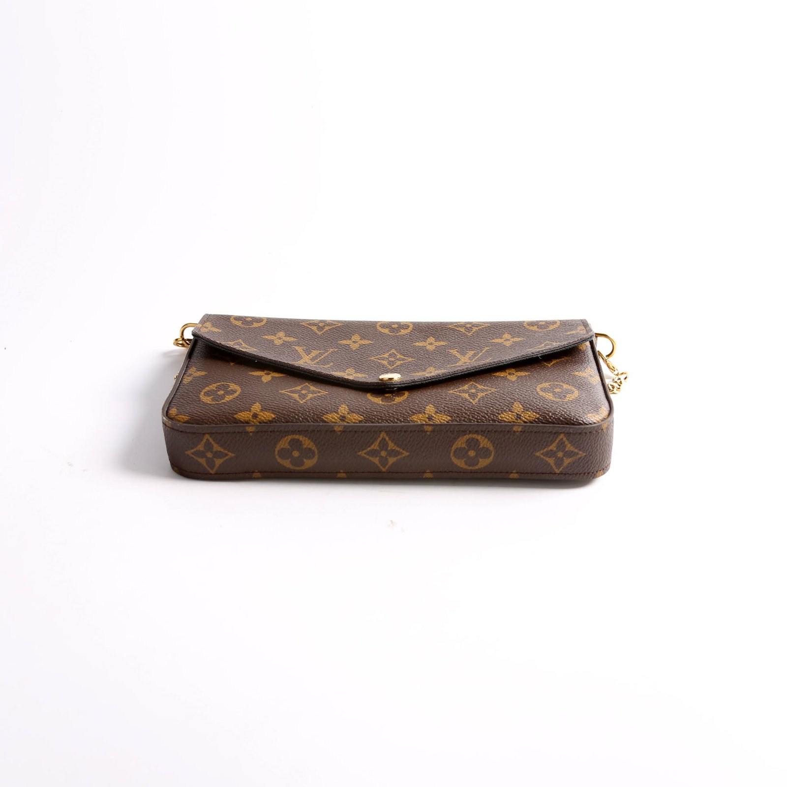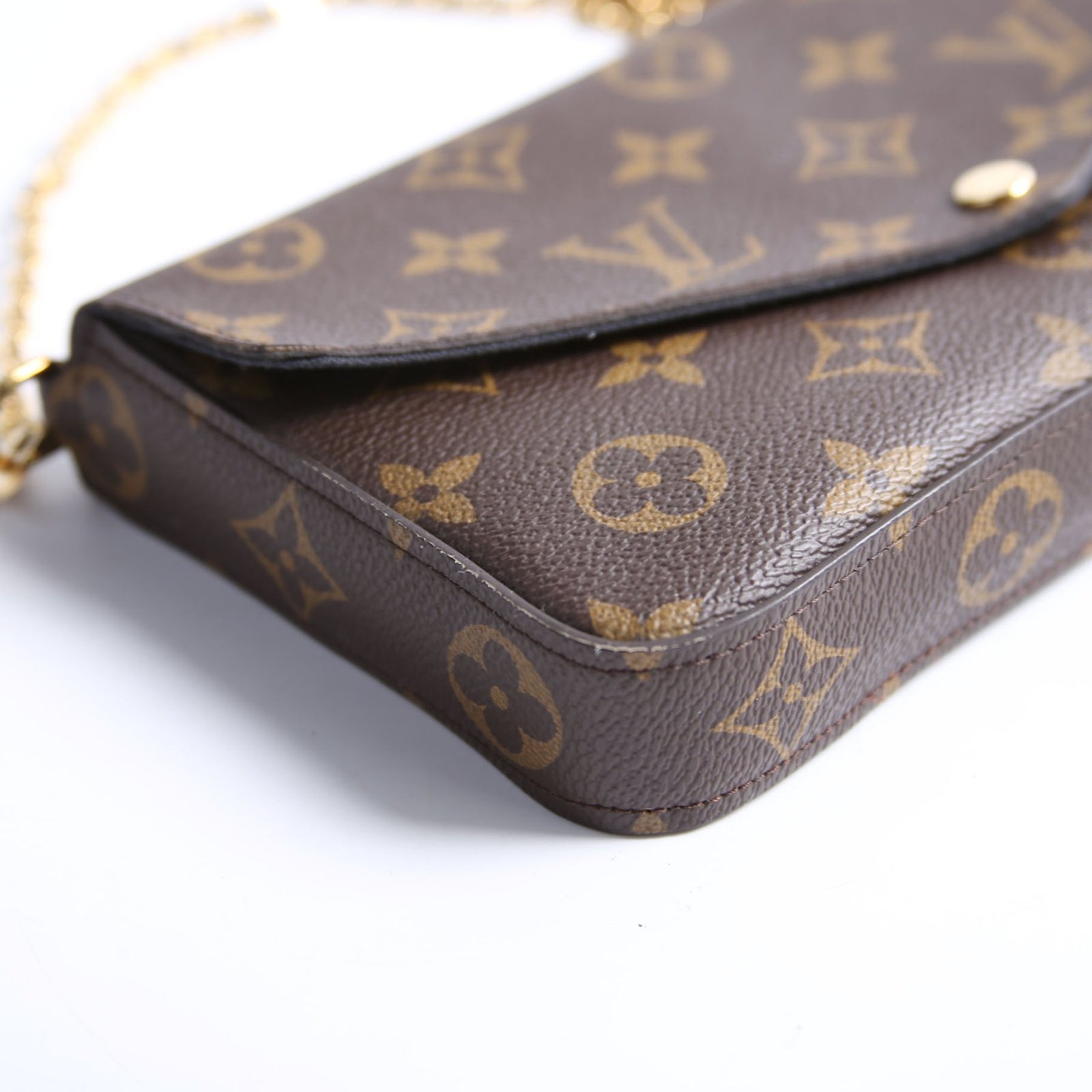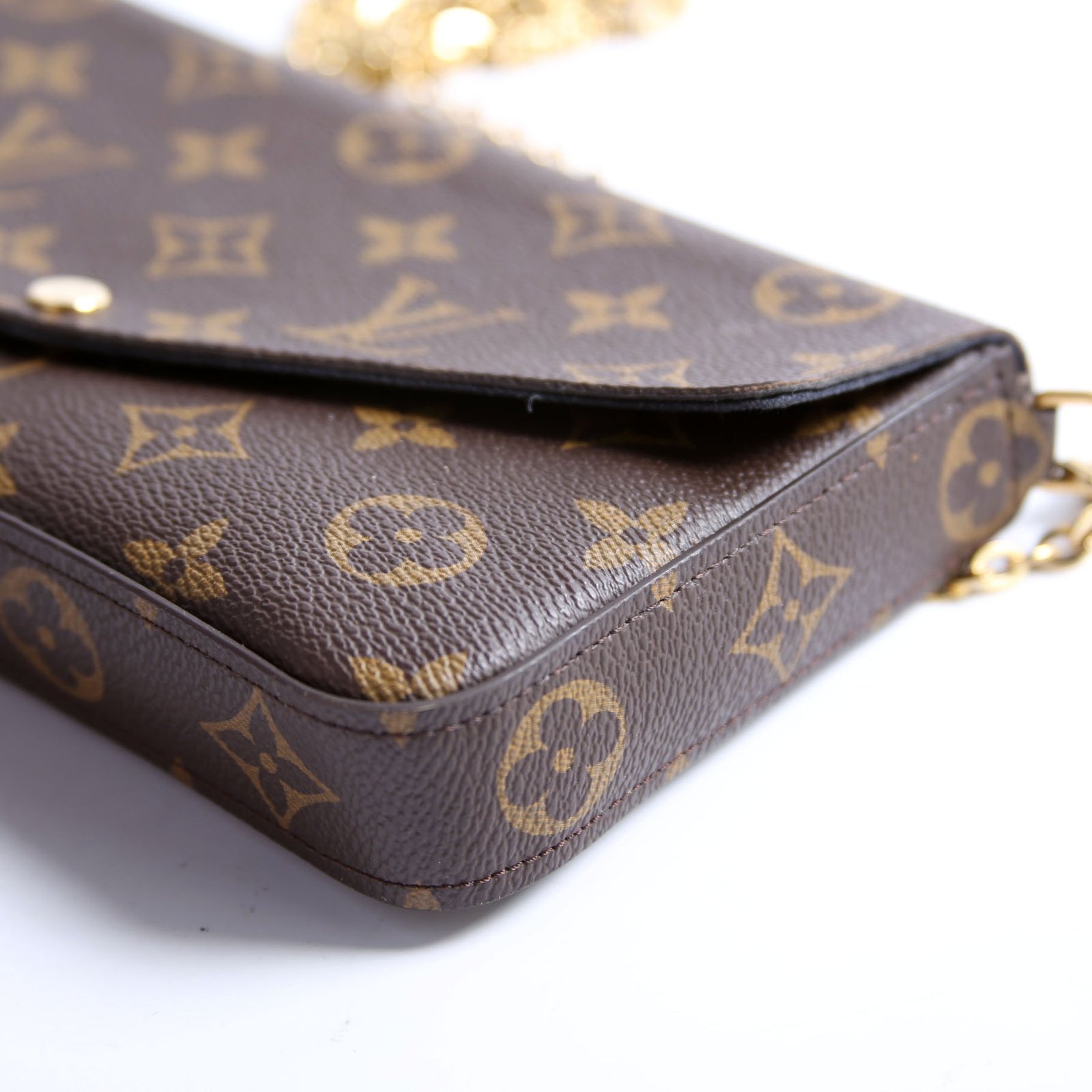 This pre-owned Louis Vuitton Pochette Felicie is guaranteed 100% authentic. The exterior is in the classic Louis Vuitton Monogram coated canvas.