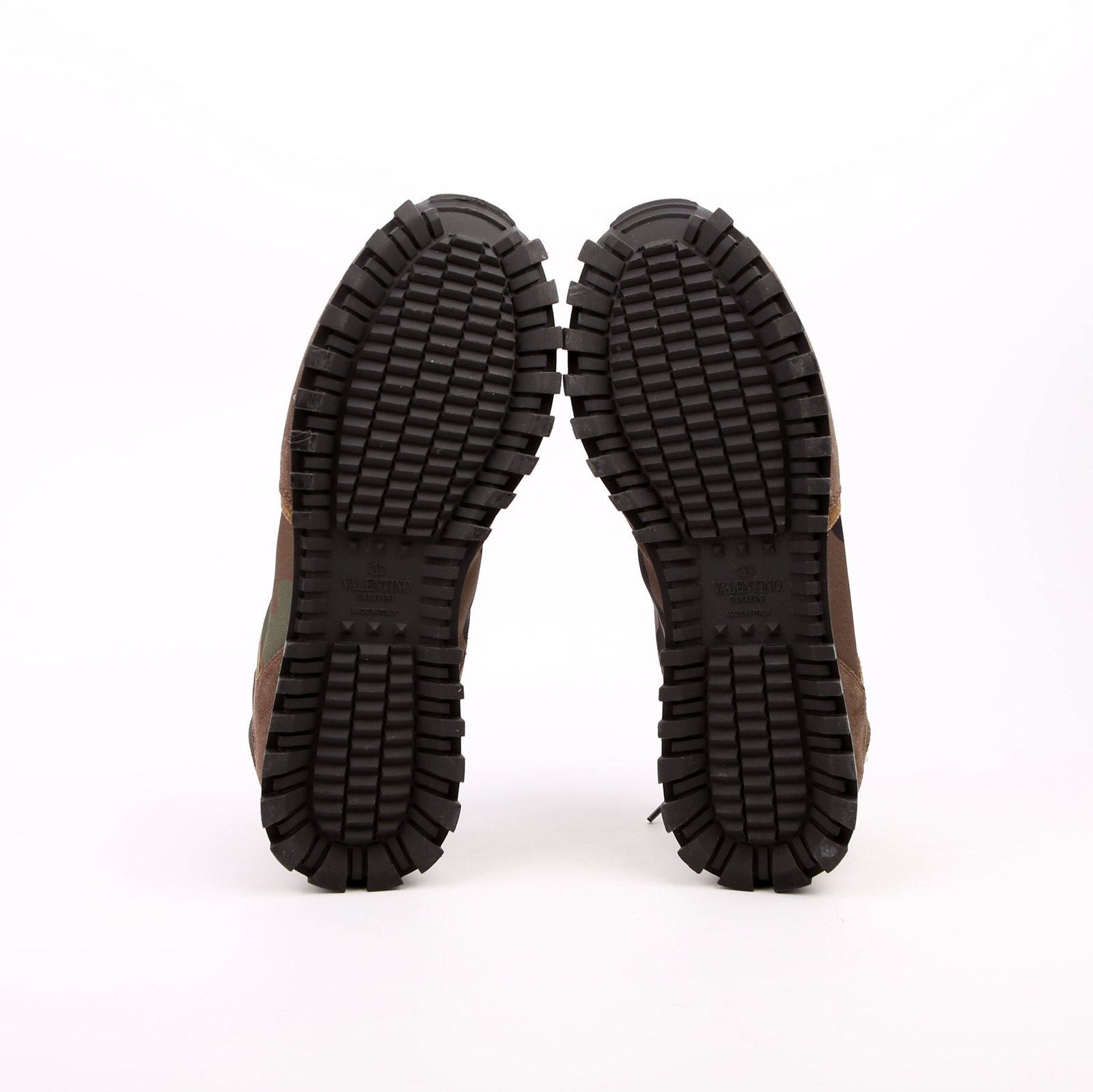 These pre-owned Valentino Rockstud Camo Sneakers are guaranteed 100% authentic.