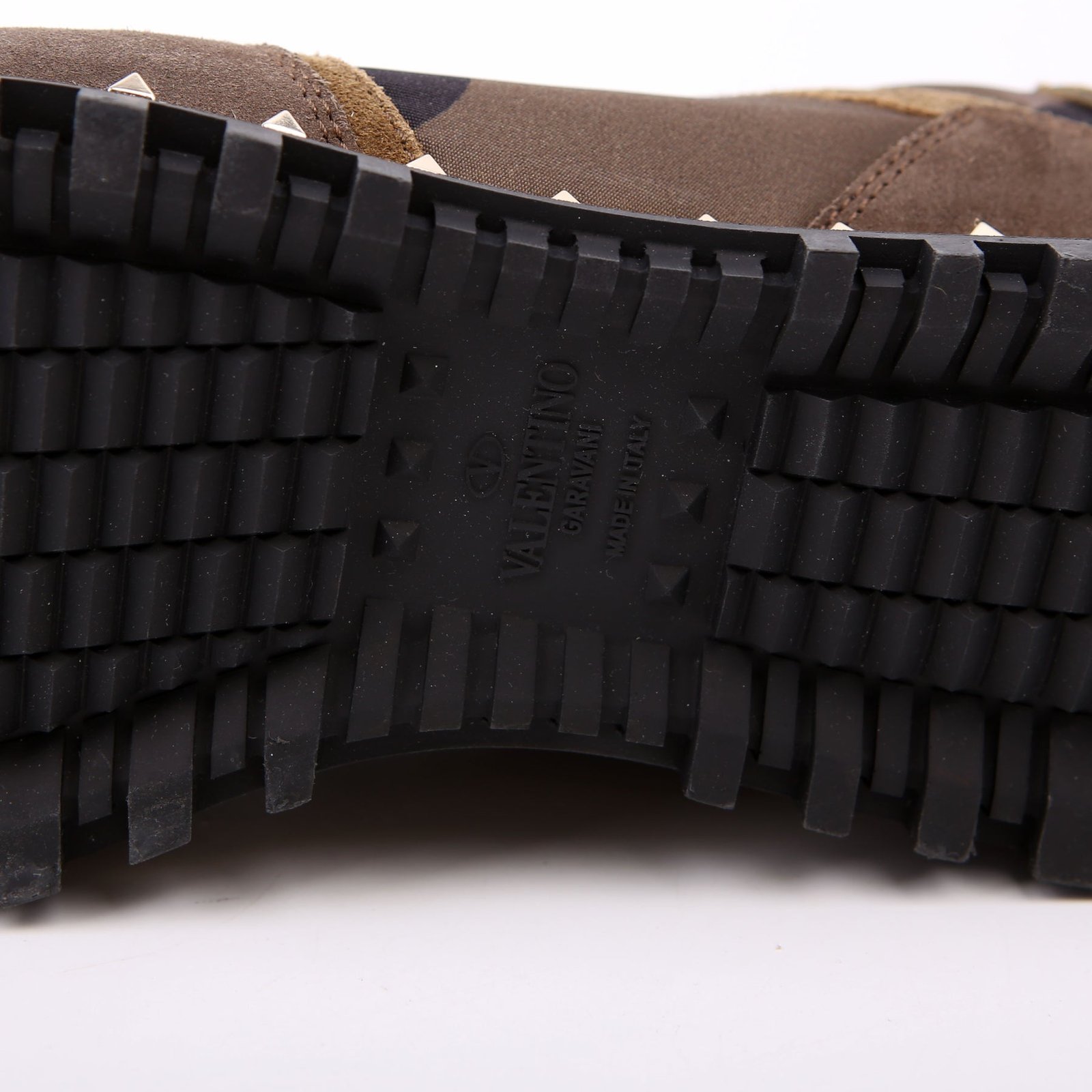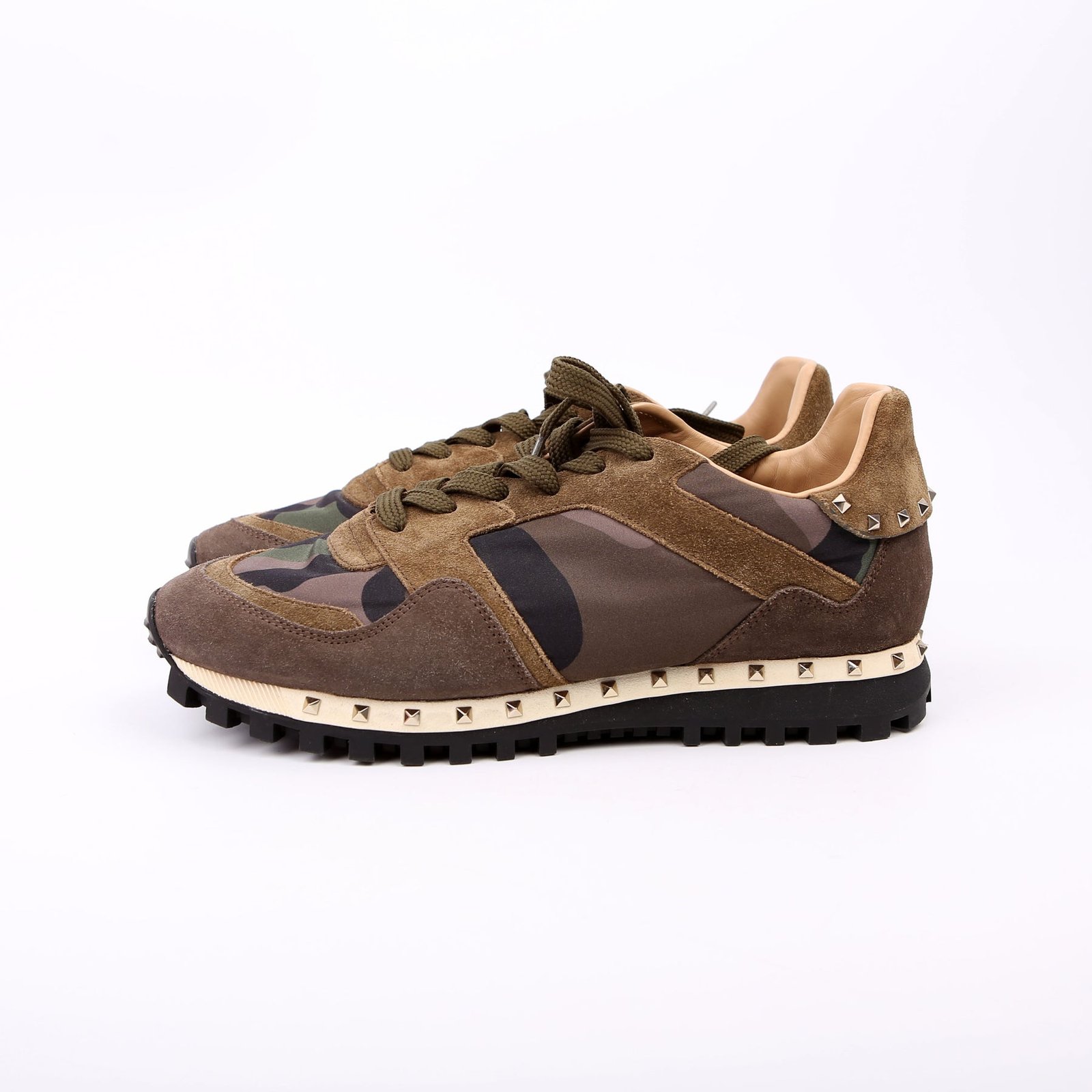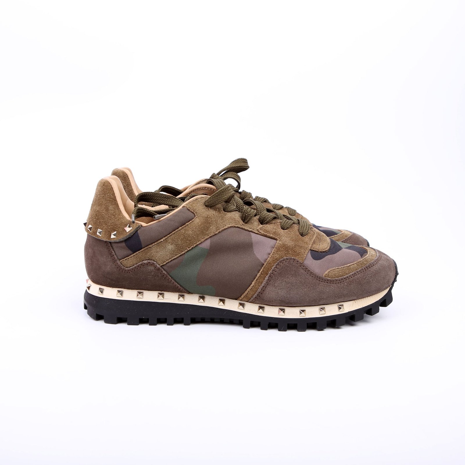 These pre-owned Valentino Rockstud Camo Sneakers are guaranteed 100% authentic.
