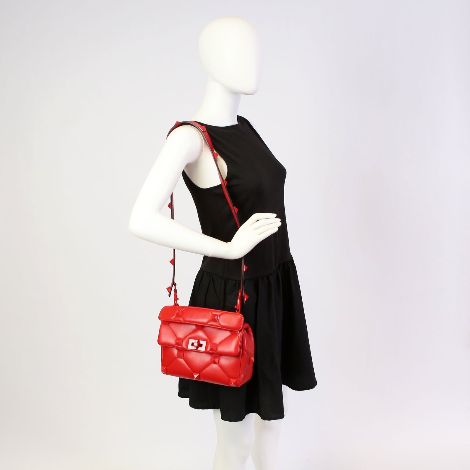 This pre-owned Valentino Roman Stud Medium is guaranteed 100% authentic. The exterior is in the classic Valentino Nappa leather.