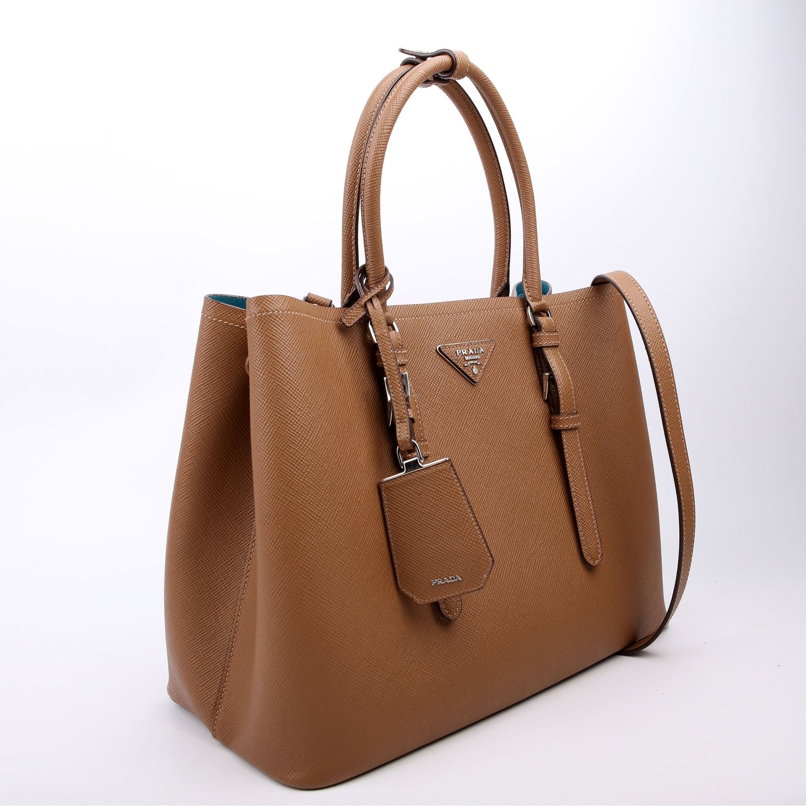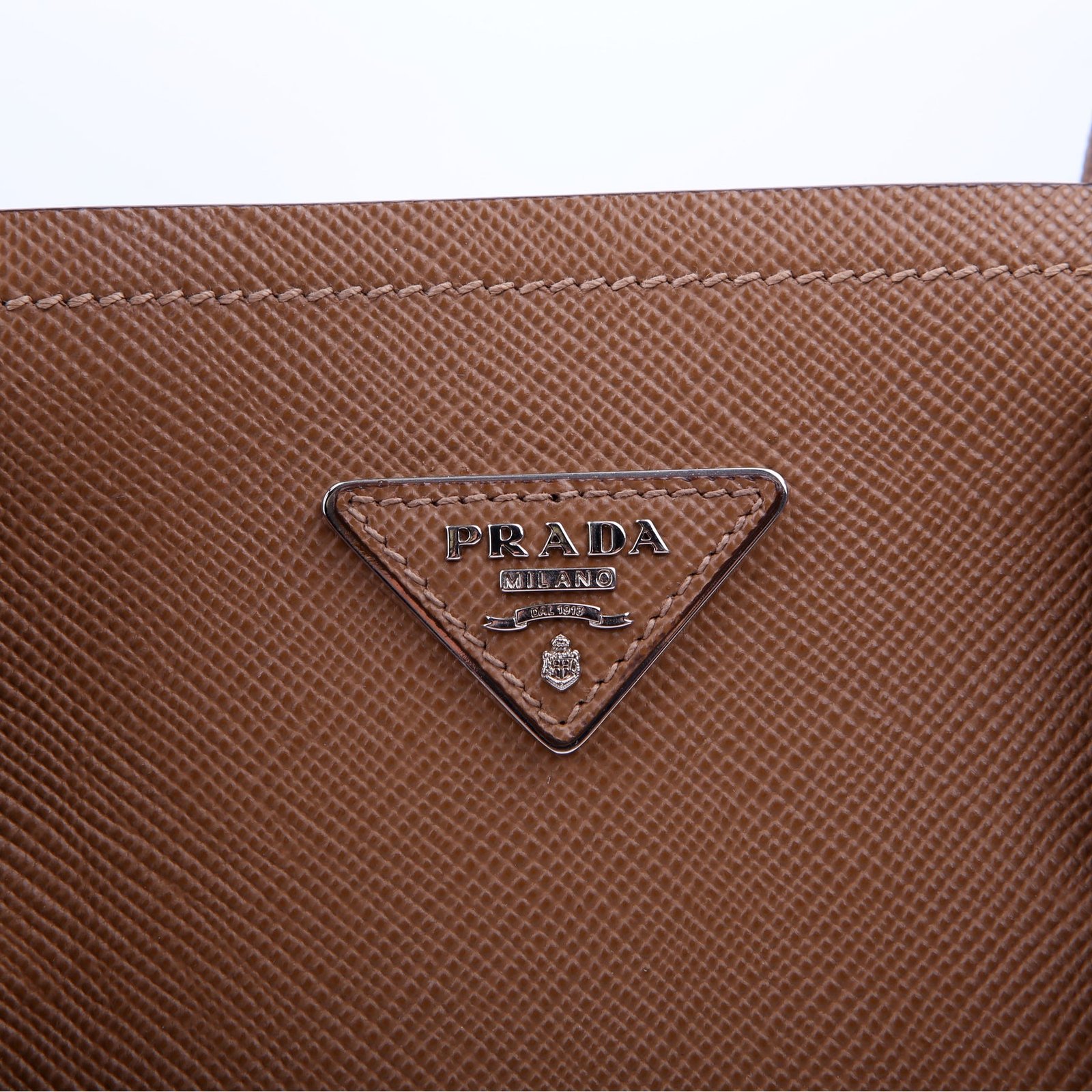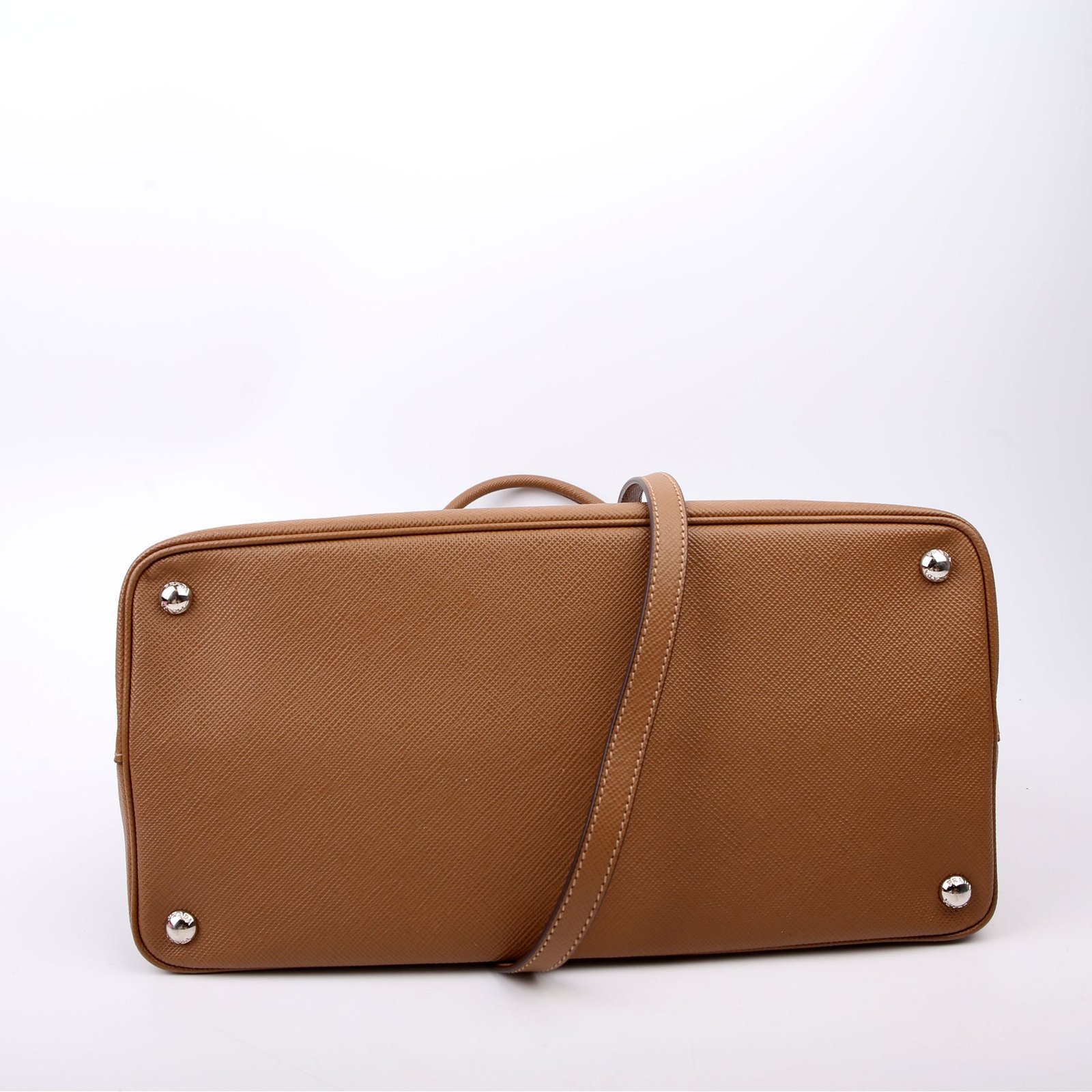 This pre-owned Prada Cuir Double Medium is guaranteed 100% authentic. The exterior is in the classic Prada Saffiano leather.