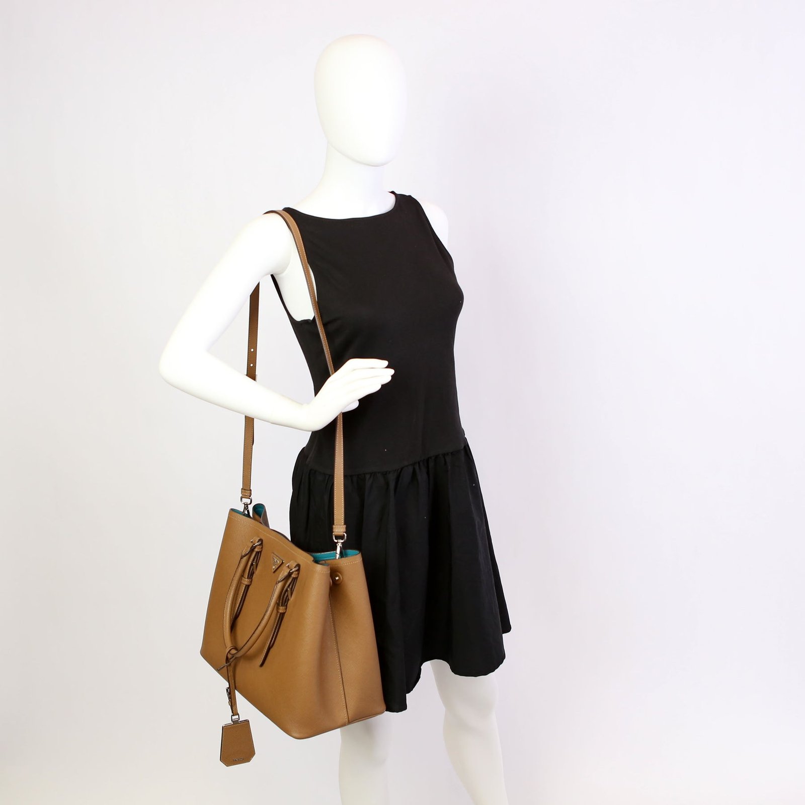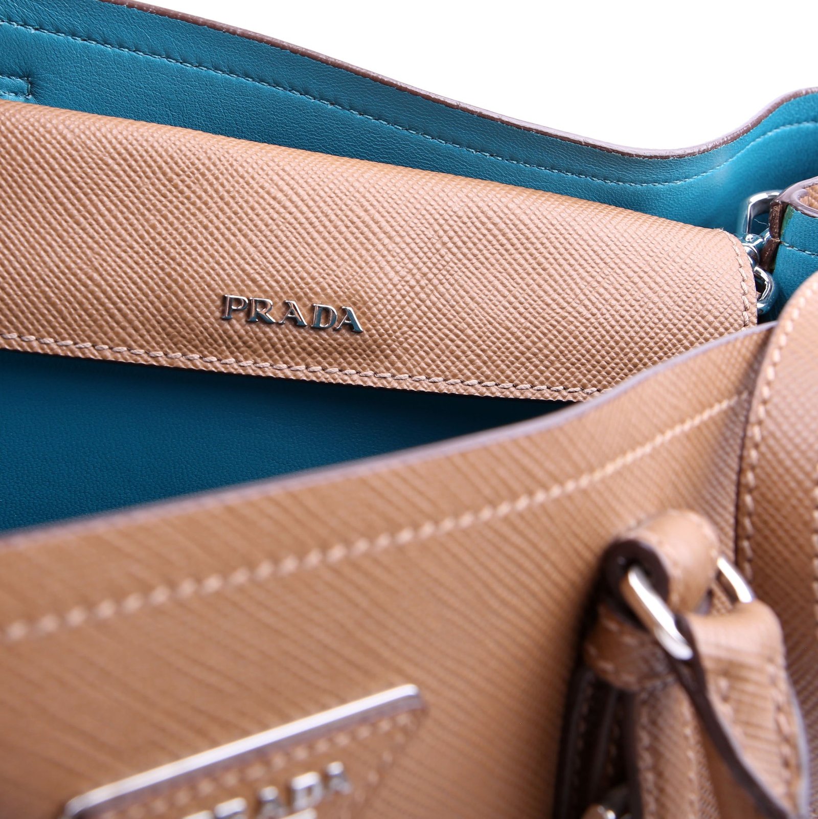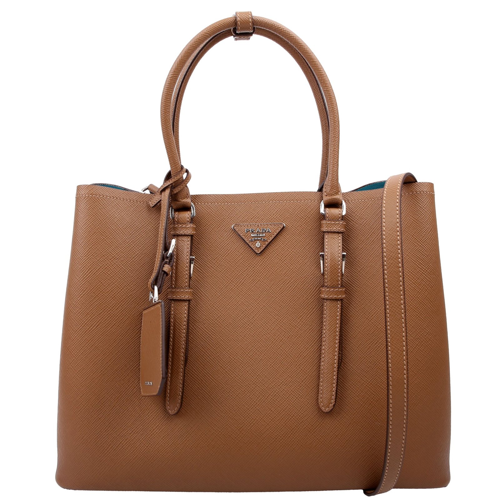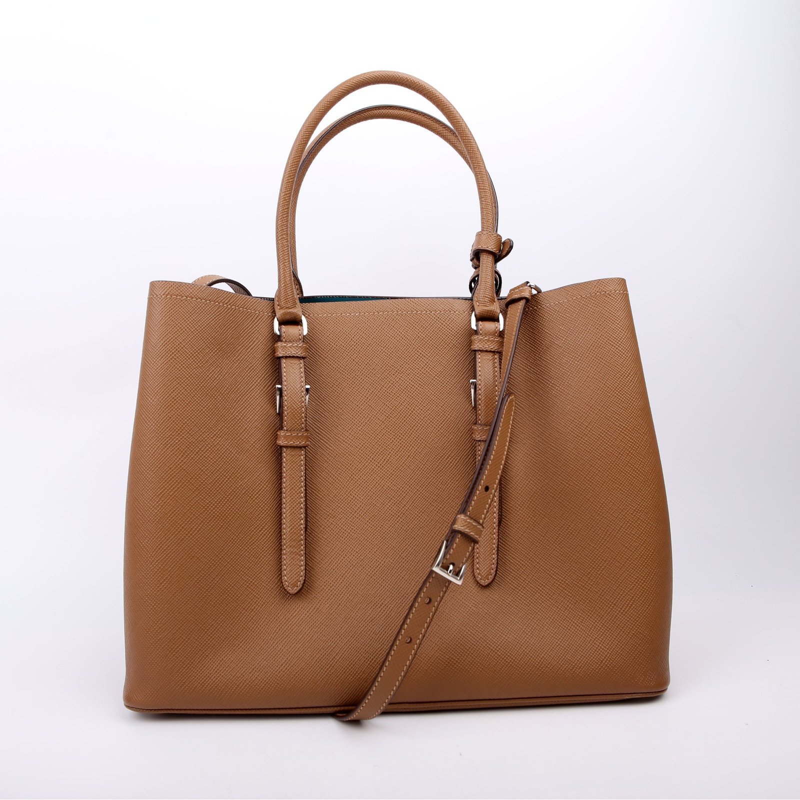 This pre-owned Prada Cuir Double Medium is guaranteed 100% authentic. The exterior is in the classic Prada Saffiano leather.