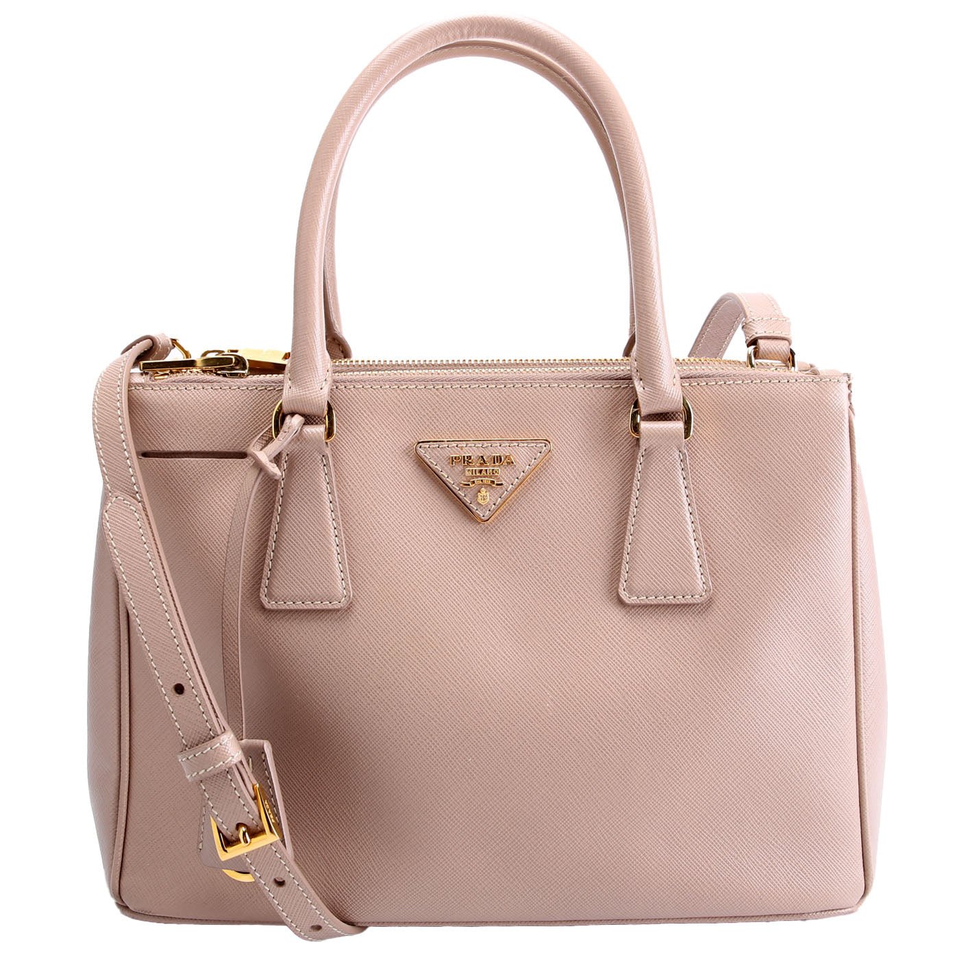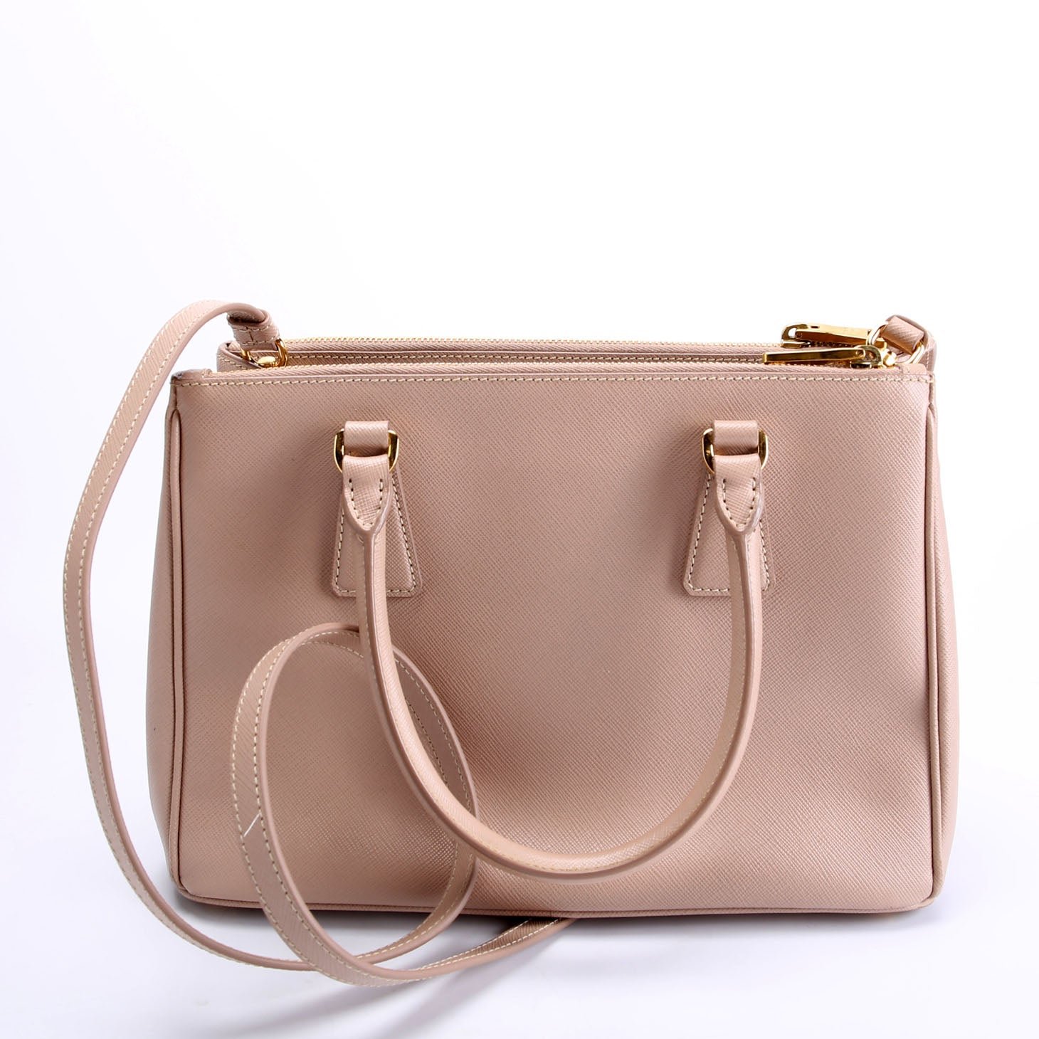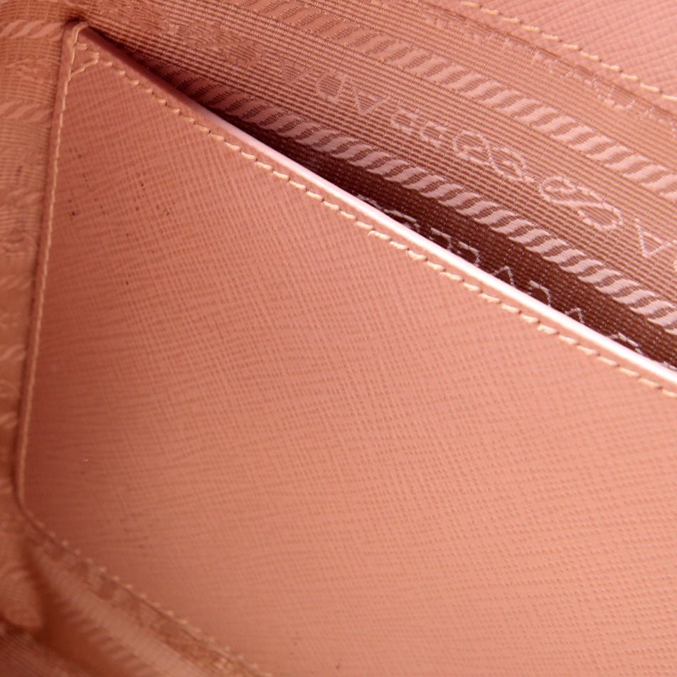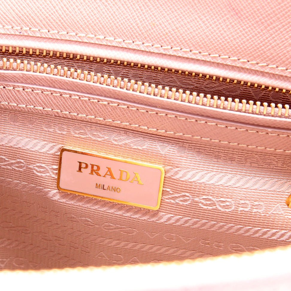 This pre-owned Prada Saffiano Galleria Small is guaranteed 100% authentic. The exterior is in the classic Prada Saffiano Leather.