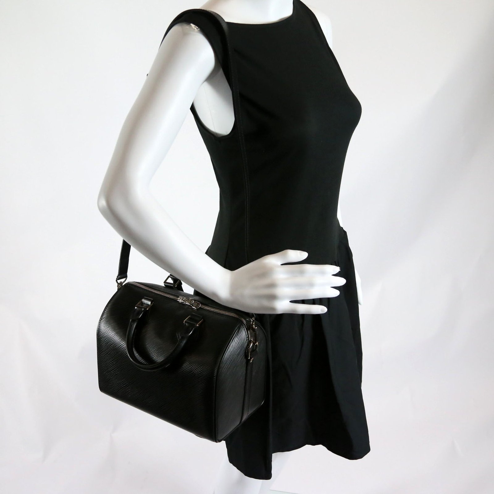 This pre-owned Louis Vuitton Speedy 25 Bandouliere is guaranteed 100% authentic. The exterior is in the classic Louis Vuitton Epi leather.